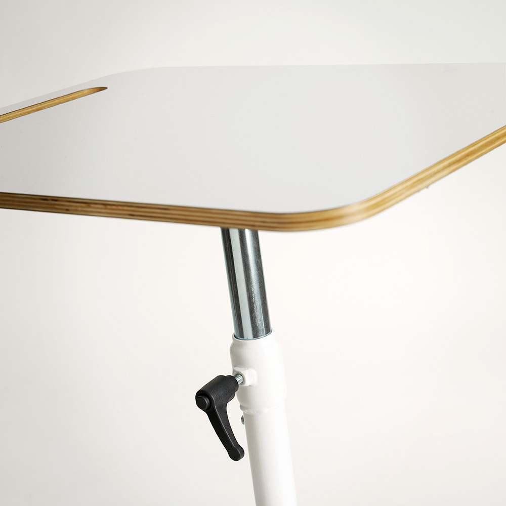 Castors and the sloping desk plate with easy to grip function making the table easy to move. The rubber mat provides comfortable foot rest.