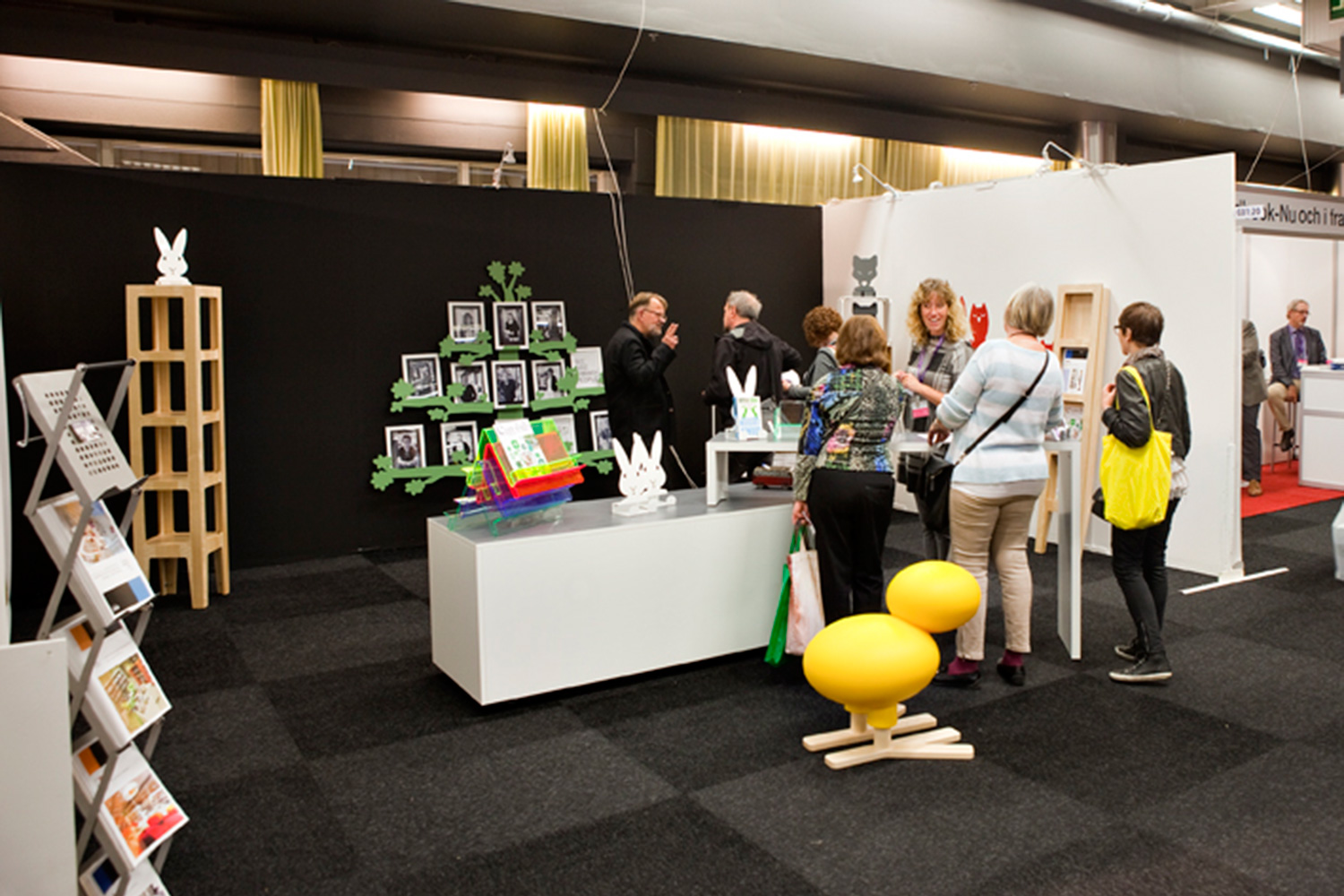 ShowIt display elements with box and bar in white with Virrvarr laminate on top served as excellent meeting and display area while Happy Bird attracted many visitors to the fair to both smile and testing to sit on.