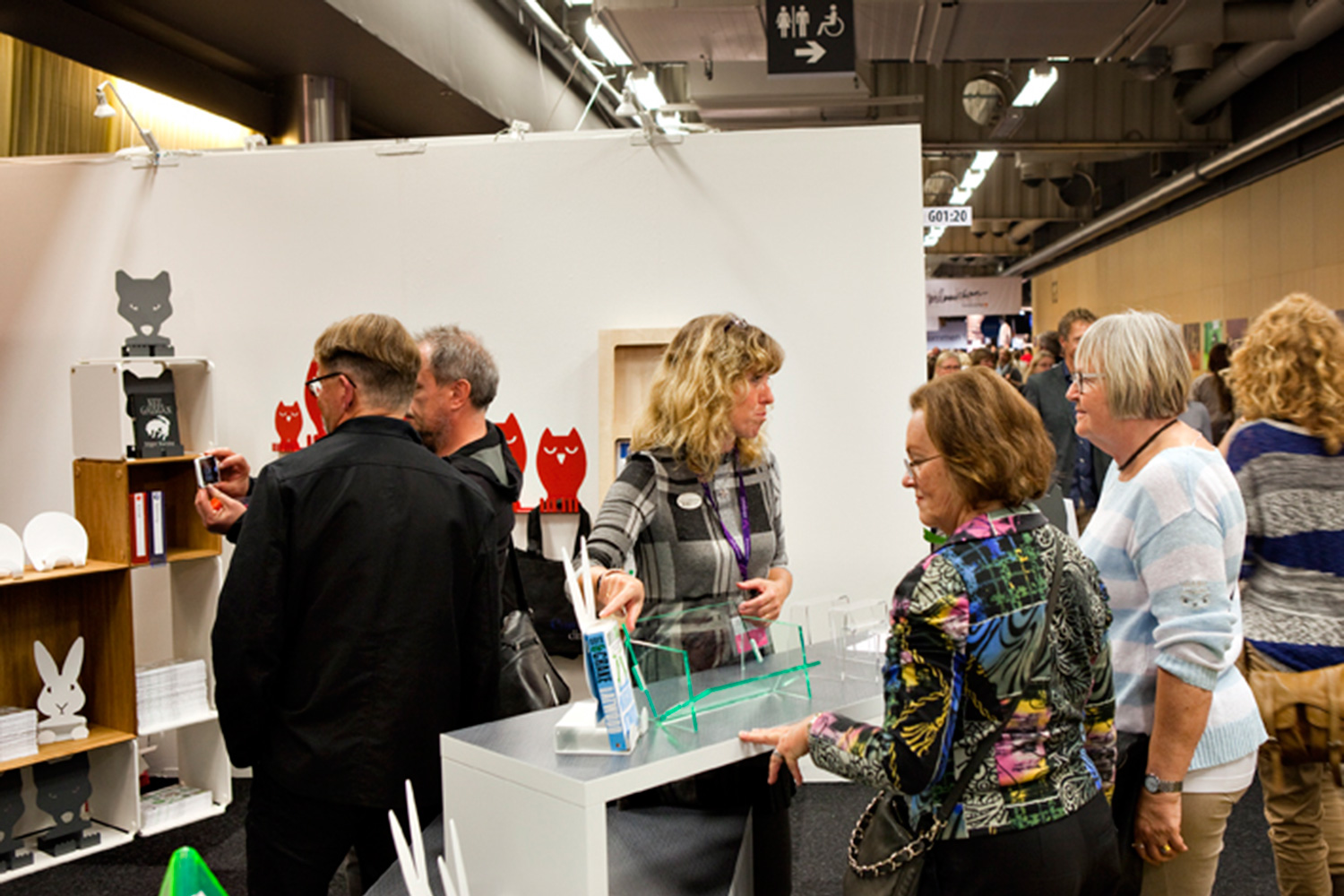 Our theme at this year's fair was the signs of nature with both wolves, rabbits, happy birds and trees, all highlighting media in various forms in the best way possible. Several of the shown news as display towers in birch veneer for stand-alone placement or placed against a wall functioned both as exhibition space and front display.