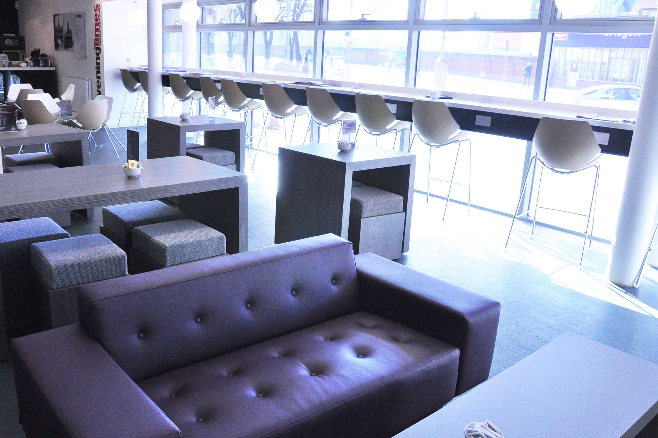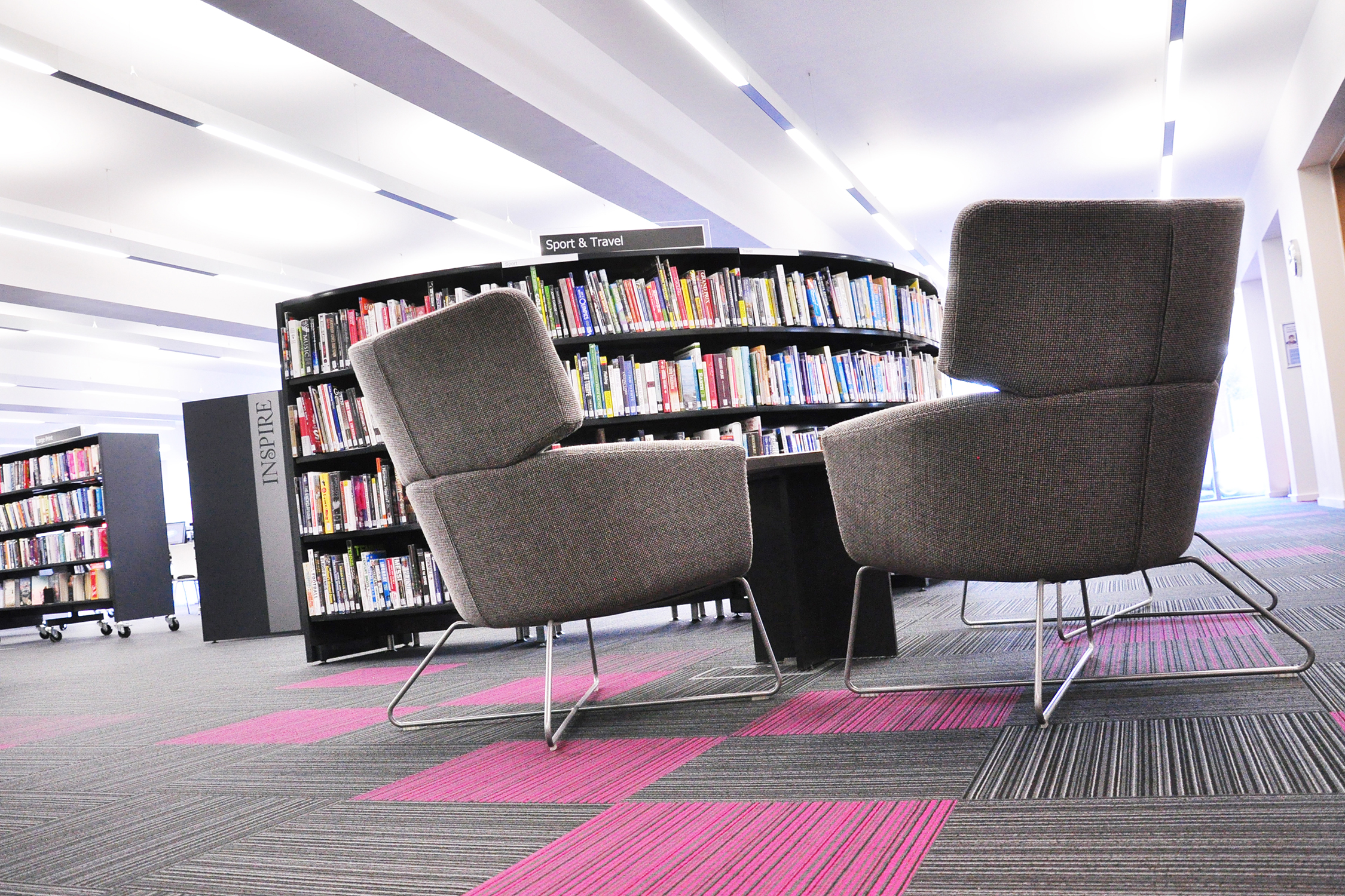 The key themes and zones of the library are enhanced by the use of graphics and signage with permission of children's laureate Julia Donaldson, her popular Gruffalo images was used as a wall graphic in the kids section, and this theme continues through to the bespoke mini furniture.