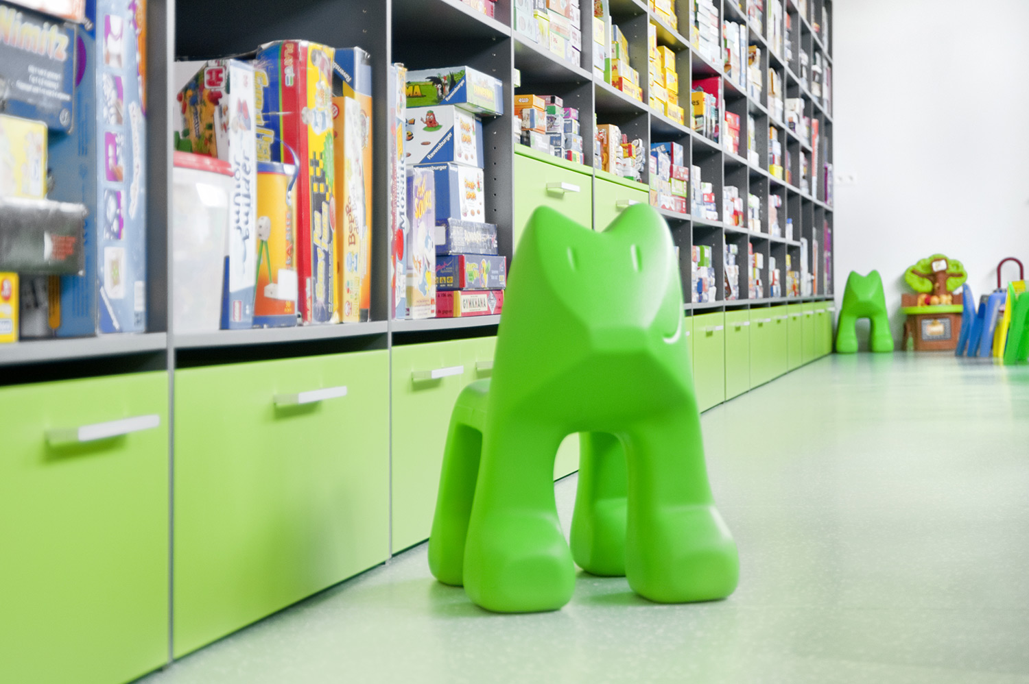 The Uniflex library system fitted with varying acrylates, a playful children's corner and games library complemented by comfortable seating and study areas make this library a warm place for its visitors and employees.