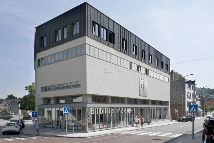 After years of being located in a basement, the library Hubert Juin can now take a new breath in a new two-storey building. The municipality Athus can now offer a library with room for reception, book collection, exhibitions and various activities.