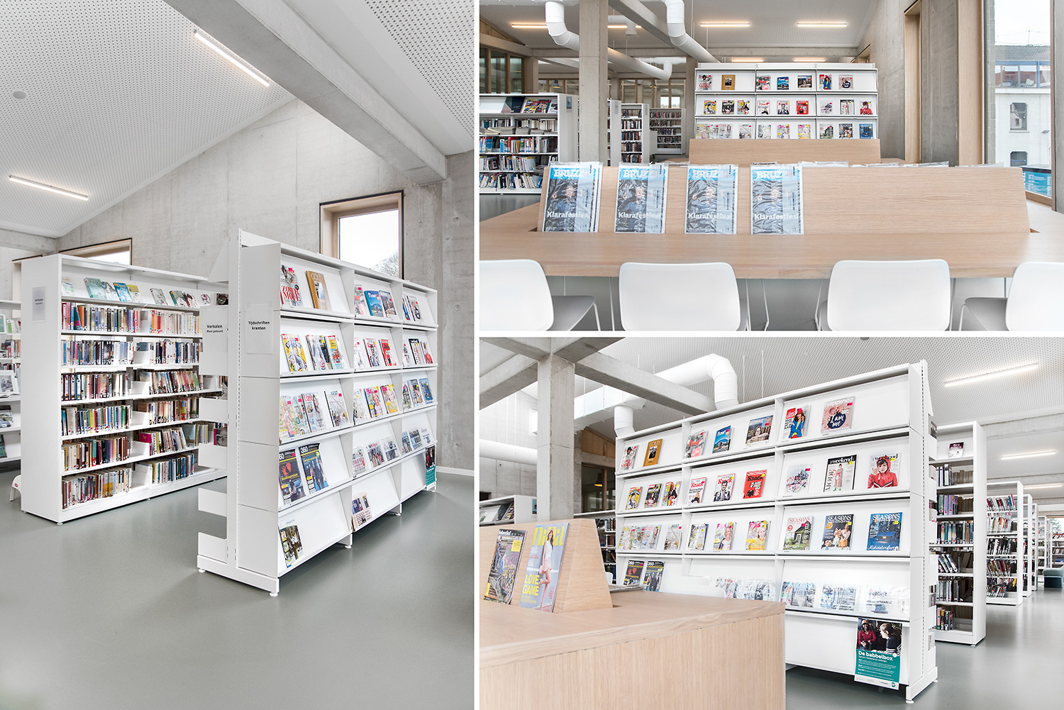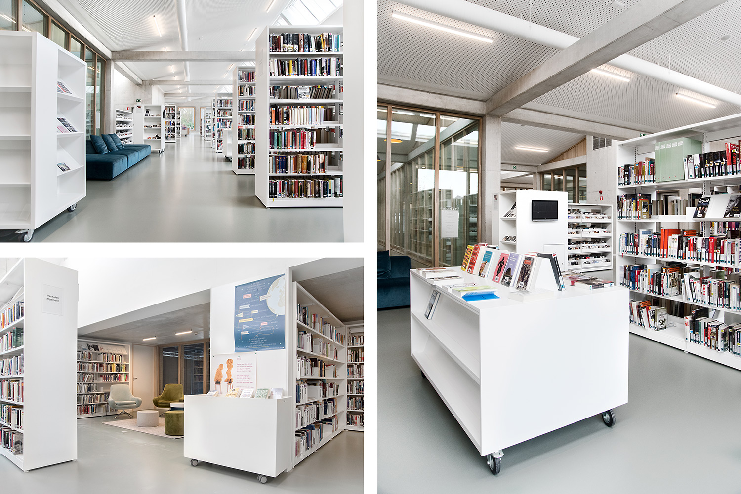 The design enables the library to fulfill its functions of reading, learning, meeting, borrowing and creation. There is pleasant seating furniture, a studio to study, a box to chat in, adjusted children's furniture, a self-loan tailored to the visitors, a service point where you can go with your questions, etc. Definitely worth a visit.