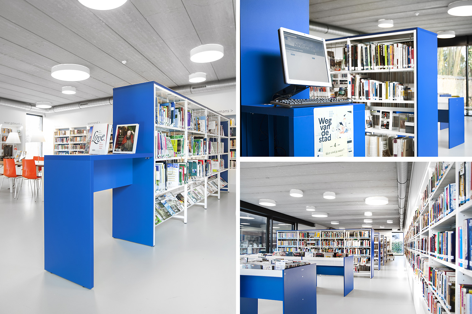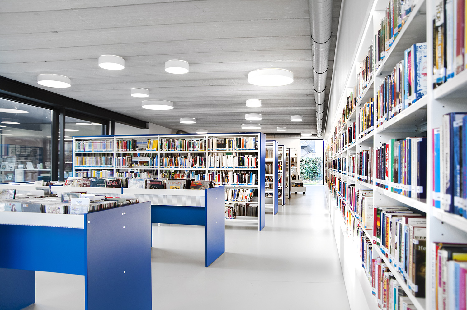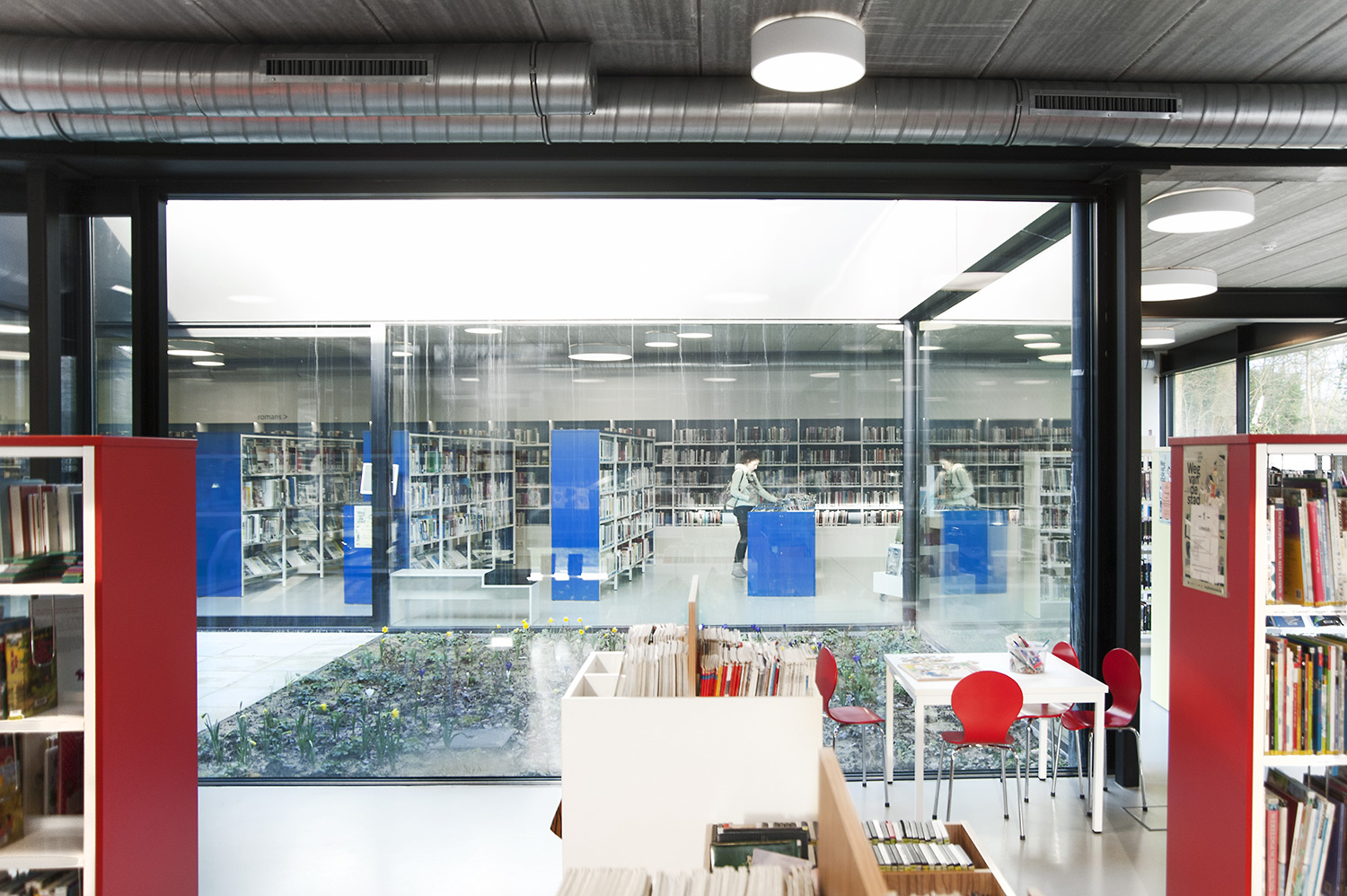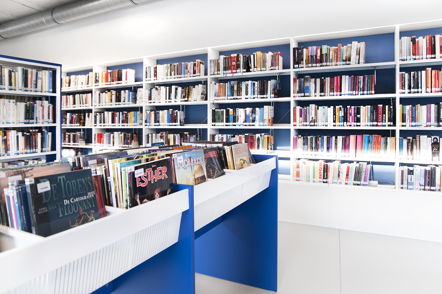 Drongen library was housed in a rented building that no longer met the acquirements of a contemporary library. The new location offers much more usable space, so lower shelving could be used which improves the clarity and sense of space.