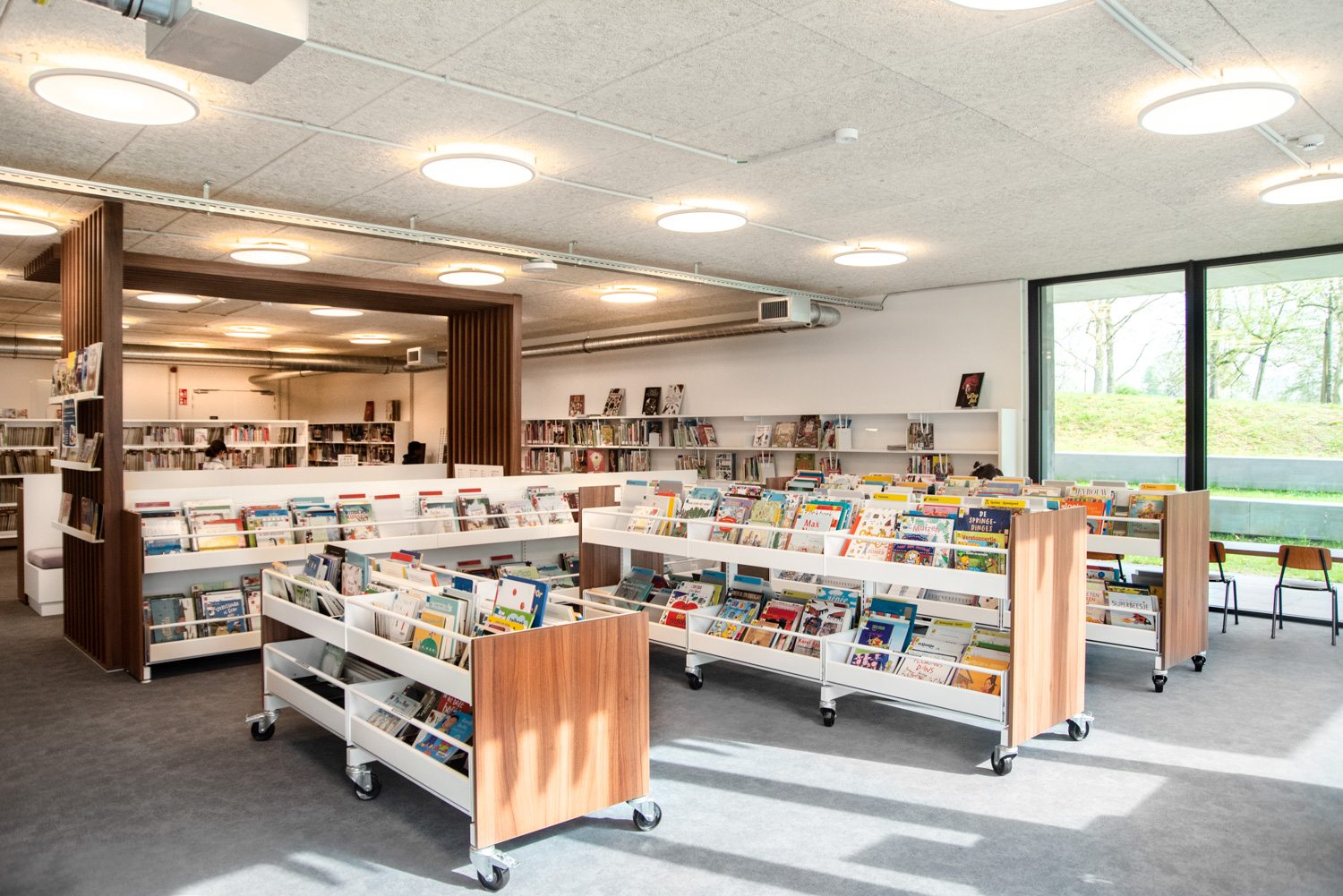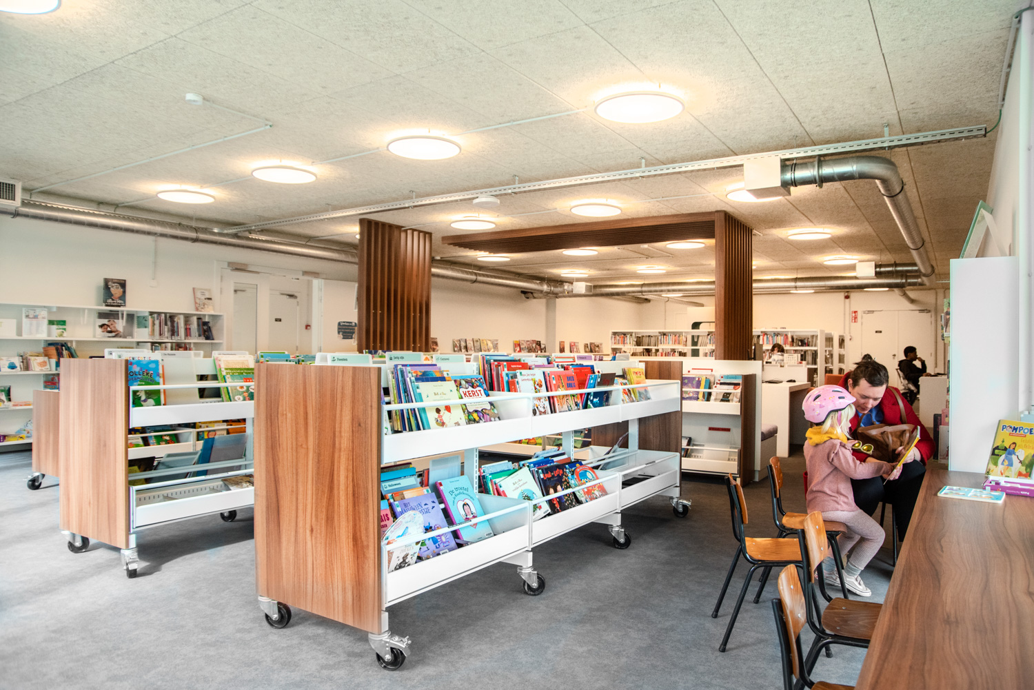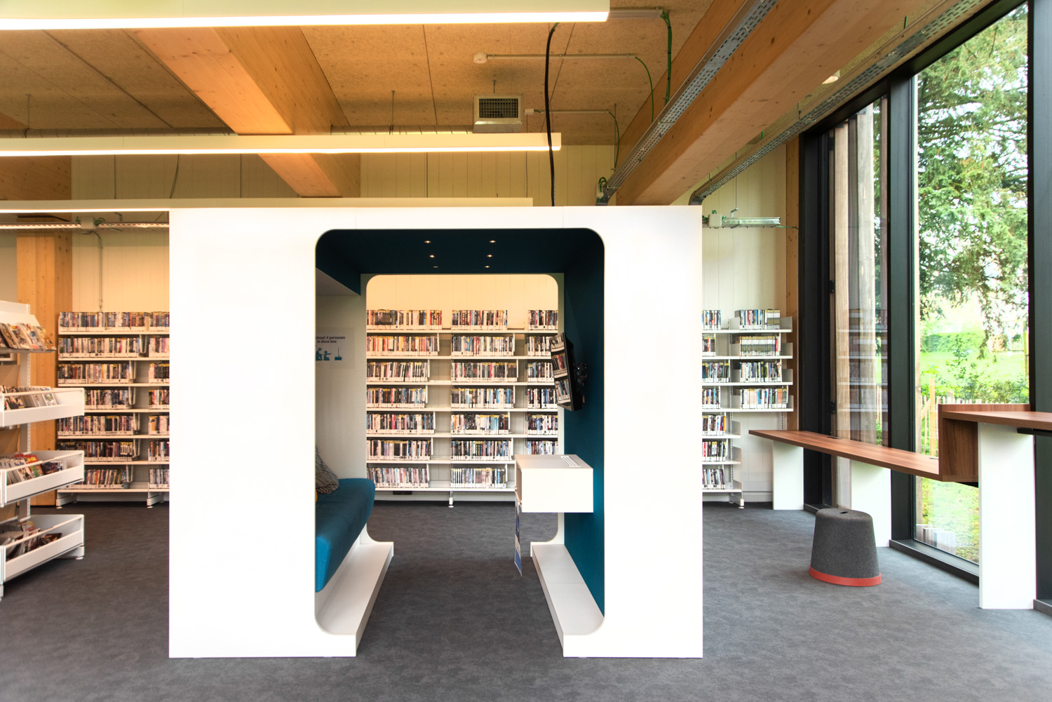 Located in the renovated De Viron country house, which also houses various leisure facilities, the library has become an attractive place with a distinct character. On the ground floor, there is an area with magazines, a reading corner and a toy selection. Next to the entrance, visitors will come across a fablab with a 3D printer. The youth section is located in the basement, and the "quiet zone” for adults is on the second floor.