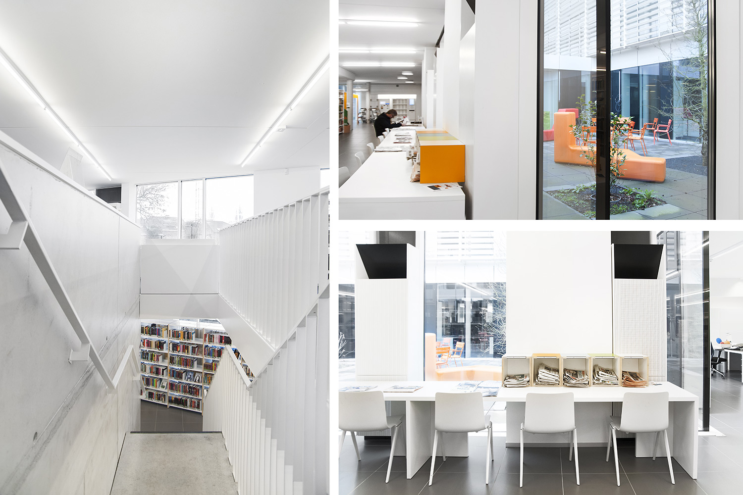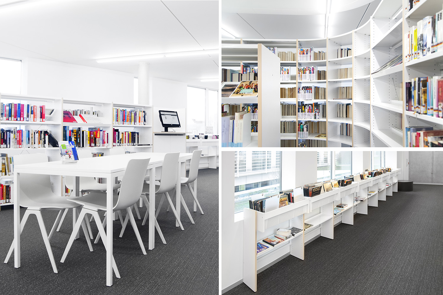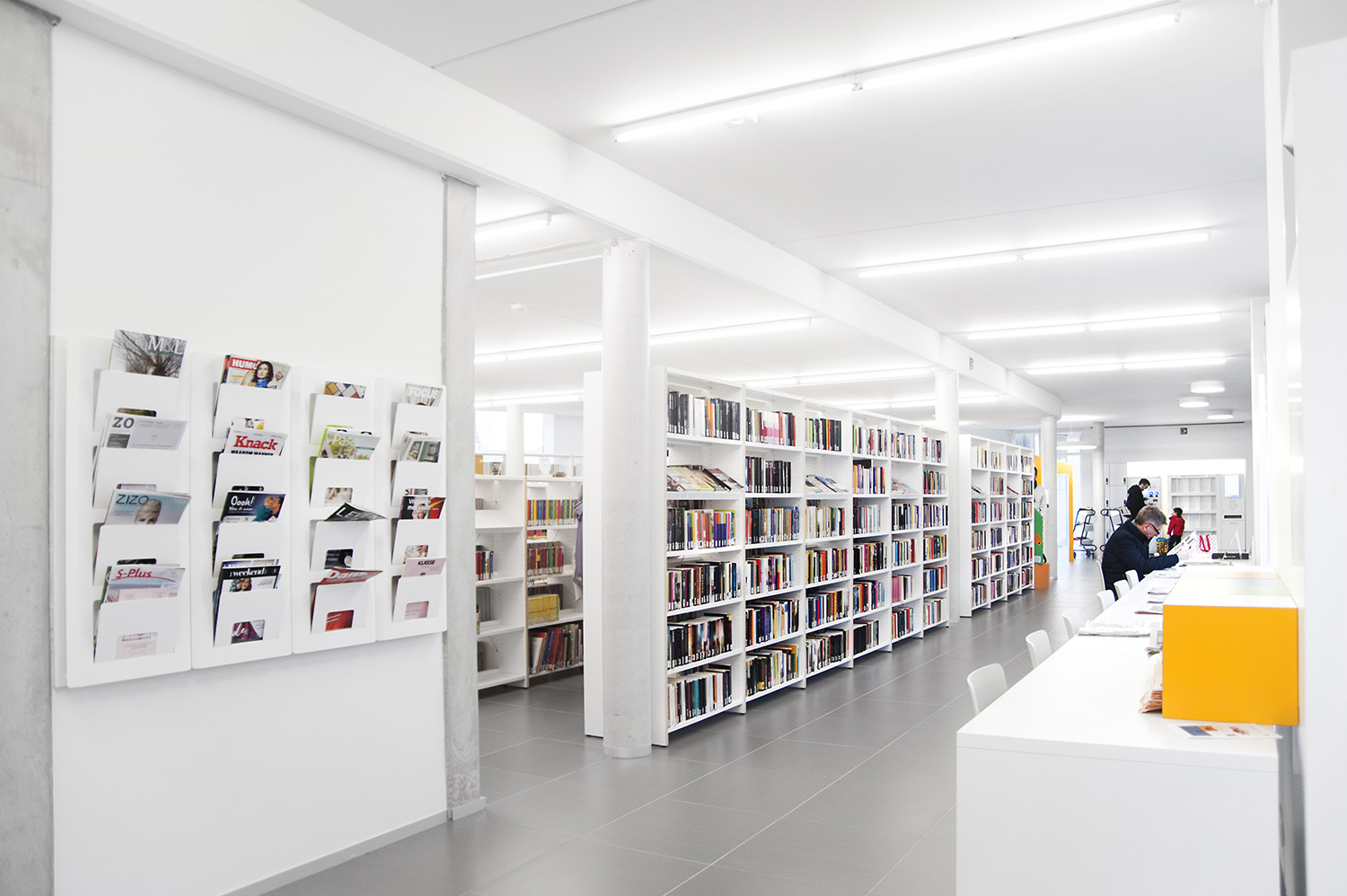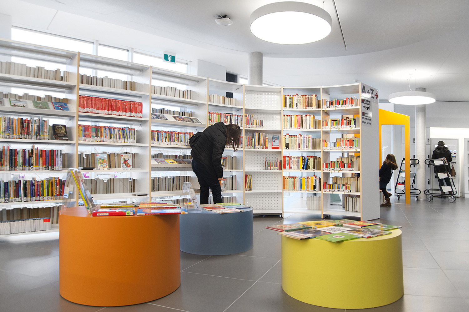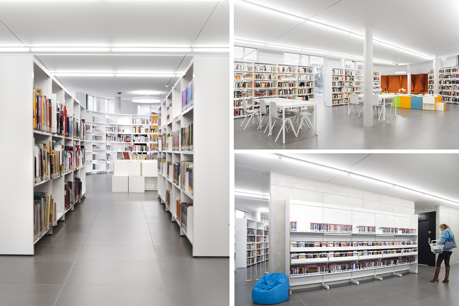The new library of Ternat was designed as a meeting point and knowledge centre where visitors get access to information through all kinds of media. The bright interior invites to meet, work and relax. In the fully glazed library the shelving are lined out as a second facade around polyvalent open spaces. Quiet zones are separated from lively areas. RFID and e-counters enable the librarians to spent more time with visitors. With focus on accessibility, ergonomics, and customer-friendly service, this contemporary library makes culture and information within reach to all.