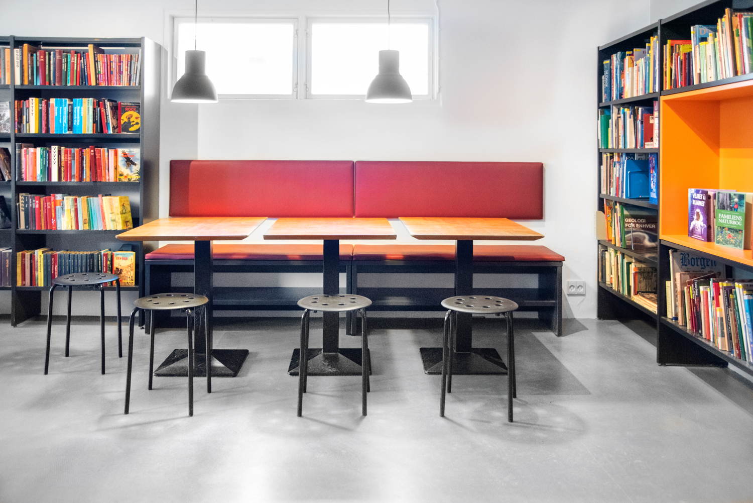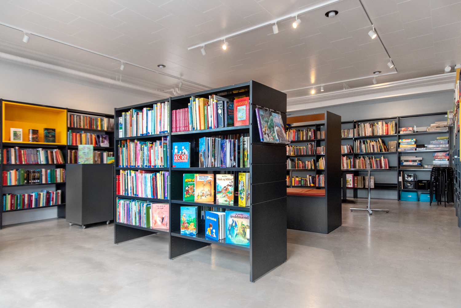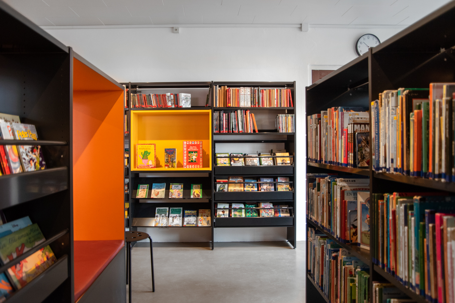 This 60 m2 small school library is located in the basement at Sankt Knud Lavard School in Lyngby. Almost 200 pupils attend the school, and the library plays a central part in creating a social gathering place, that can be used for several activities.