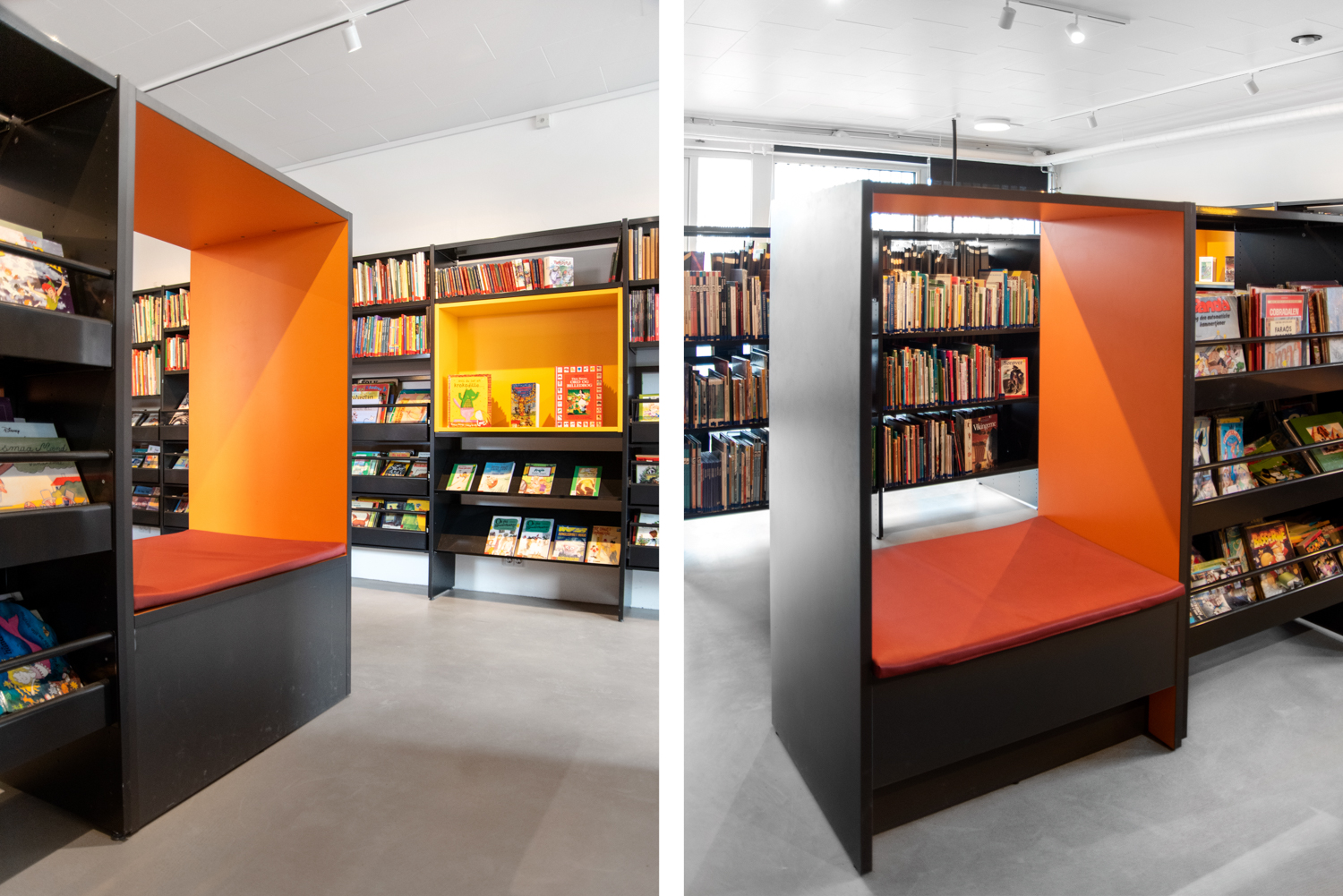 School principal, Christa Bonde, says: “The room was too dark and obscure before the renovation. Many of the shelving systems have been removed and we received excellent advice in terms of the overall interior. We are very excited about the drawers for stocking and displaying books for the younger readers, as the children can now see the front of the books instead of the back. At the same time, we have integrated more seating areas, so the children can sit down comfortably and read – and perhaps inspire them to stay a little longer.”