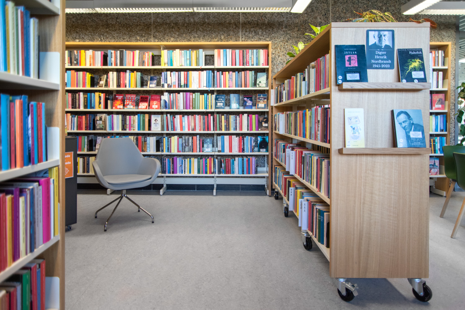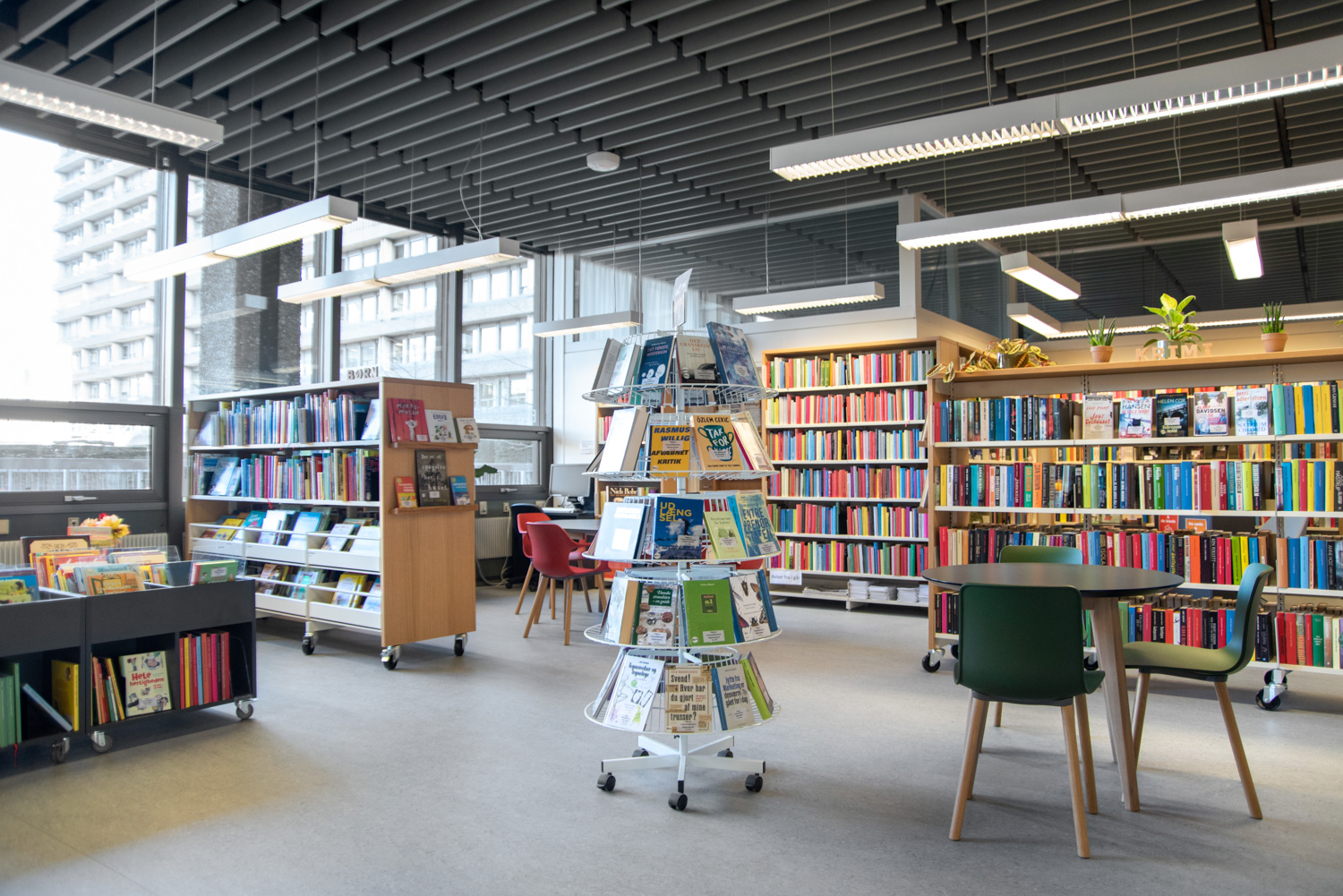 The entire library is wrapped in oak shelving systems with new top plates which constitutes a nice and comfortable place to stay. The warm wooden materials and colours originate from nature and creates a pleasant atmosphere for patients.