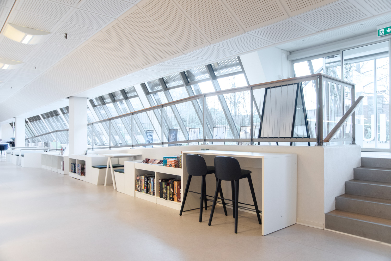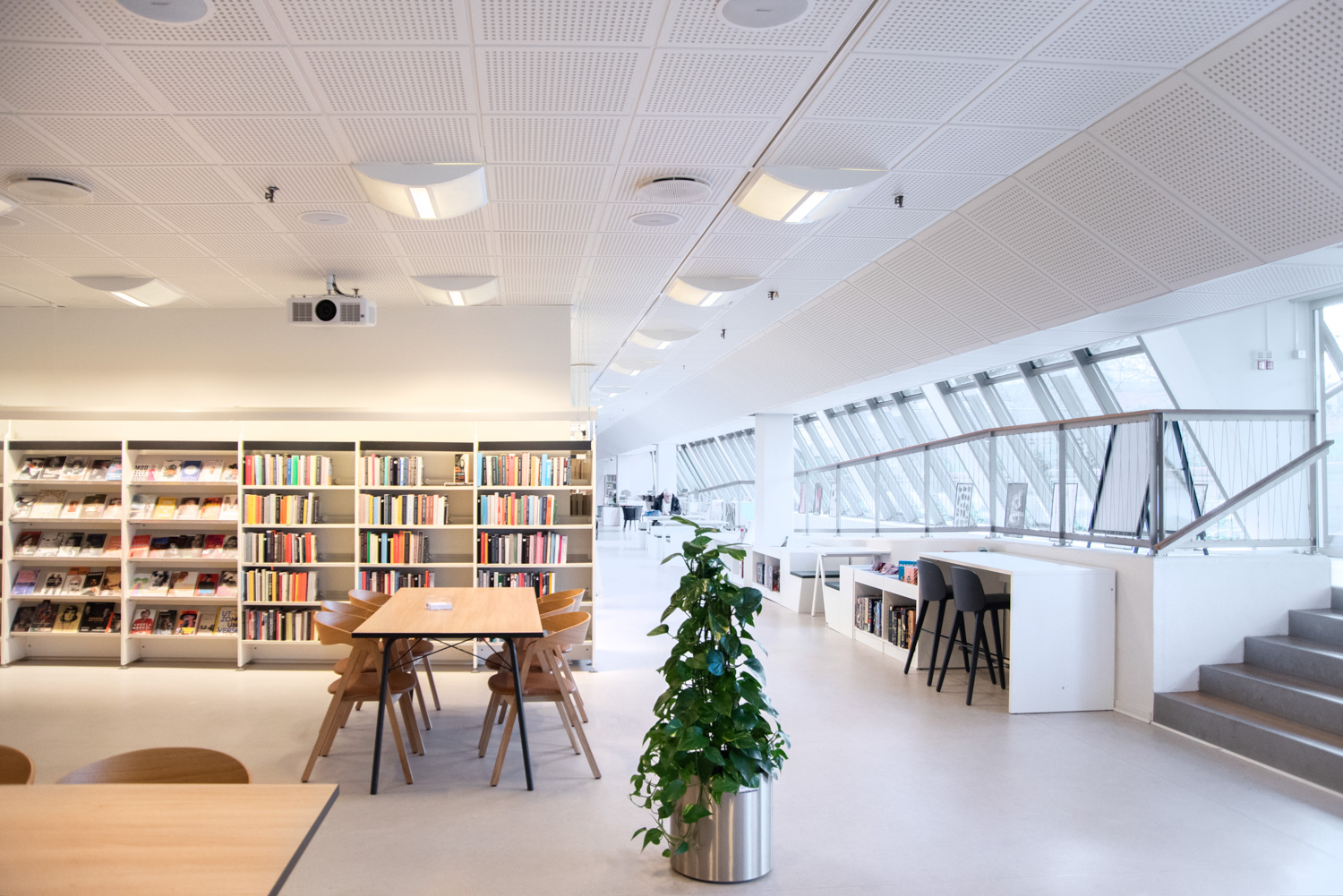 In 2022 board games and lending area will be renewed in a way that will make the library appear as an accommodating and green city garden. Before, the library had an unused corridor area along a ramp with large windows and lots of daylight which will be transformed into a nice board game café area.