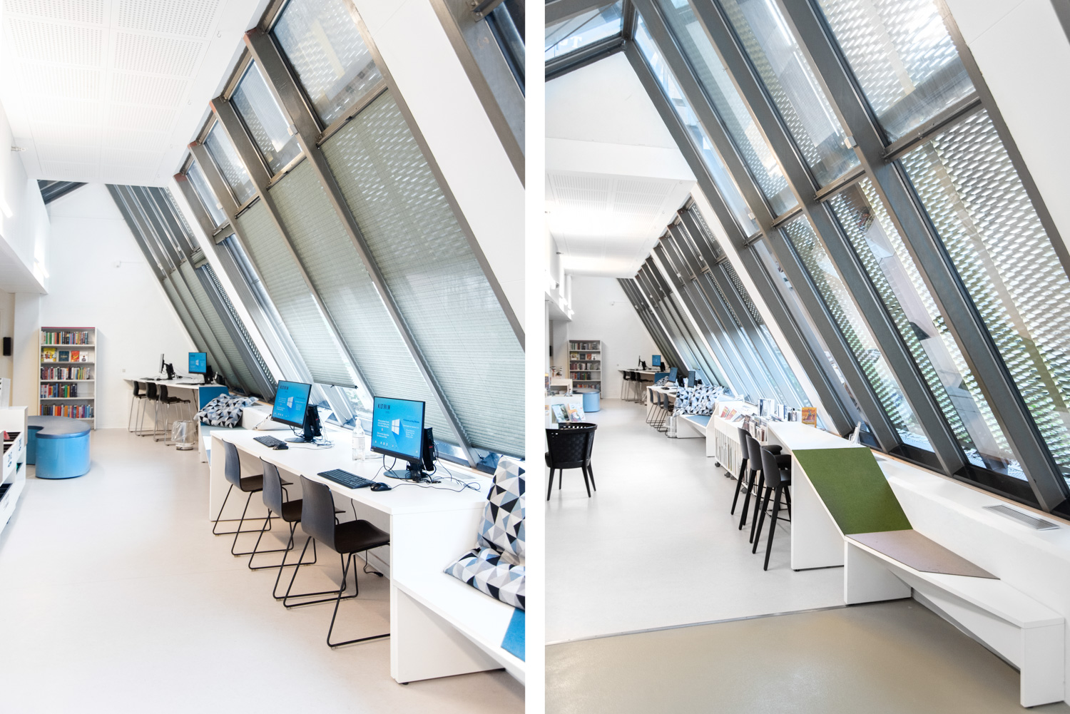 Ishøj library has been through an extensive renovation where existing library furniture and interior have been combined with new products. The library is an example of a sustainable library interior design where existing furniture has been given new life within a new context.