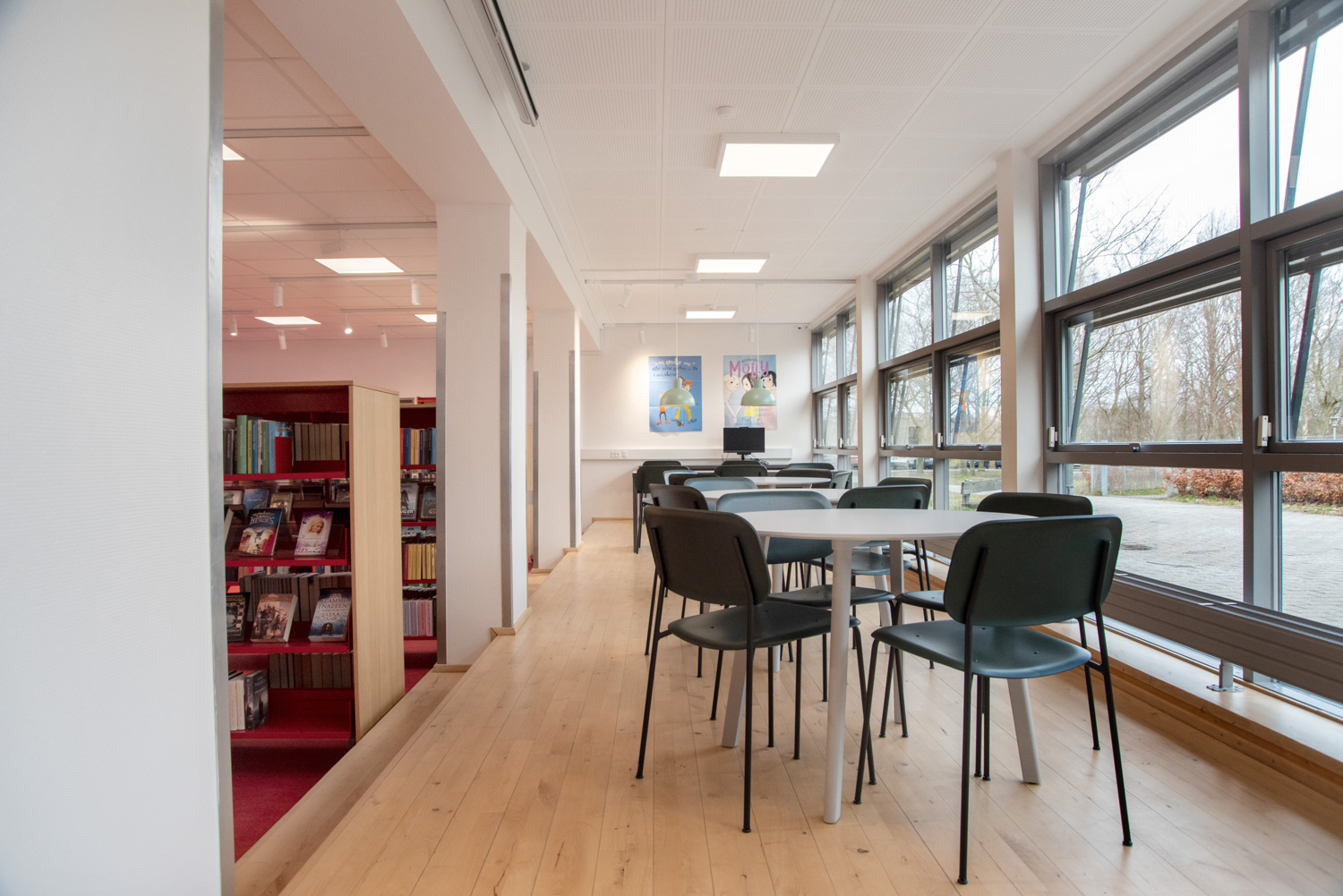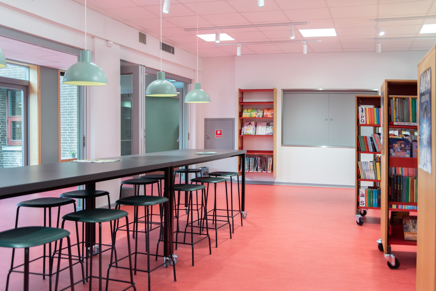 Jægerspris is a combination of several cultural functions in the town, including the school and public library. Every room has been dedicated to a certain audience. Whether you want to work out, find your new favorite book, study, or just take a break - this is the place to be.
