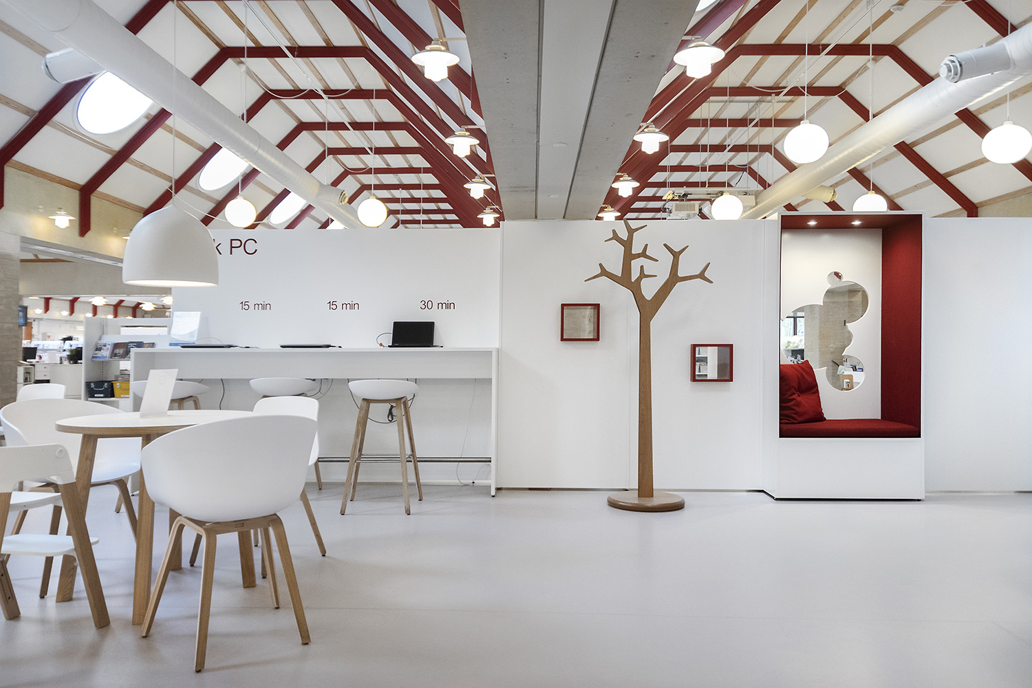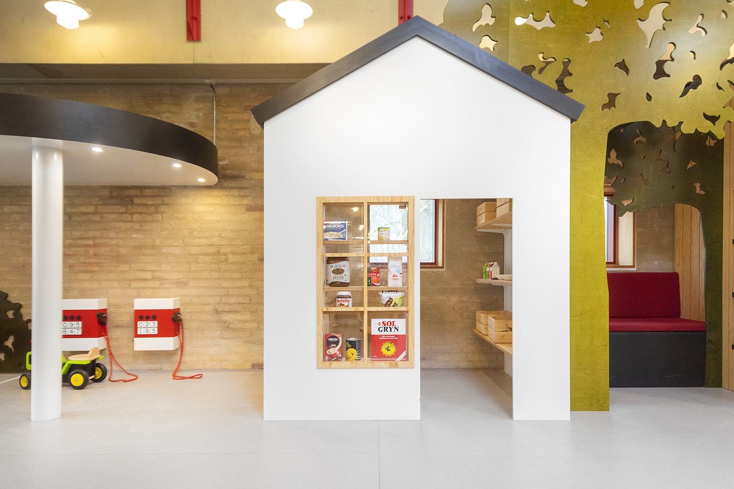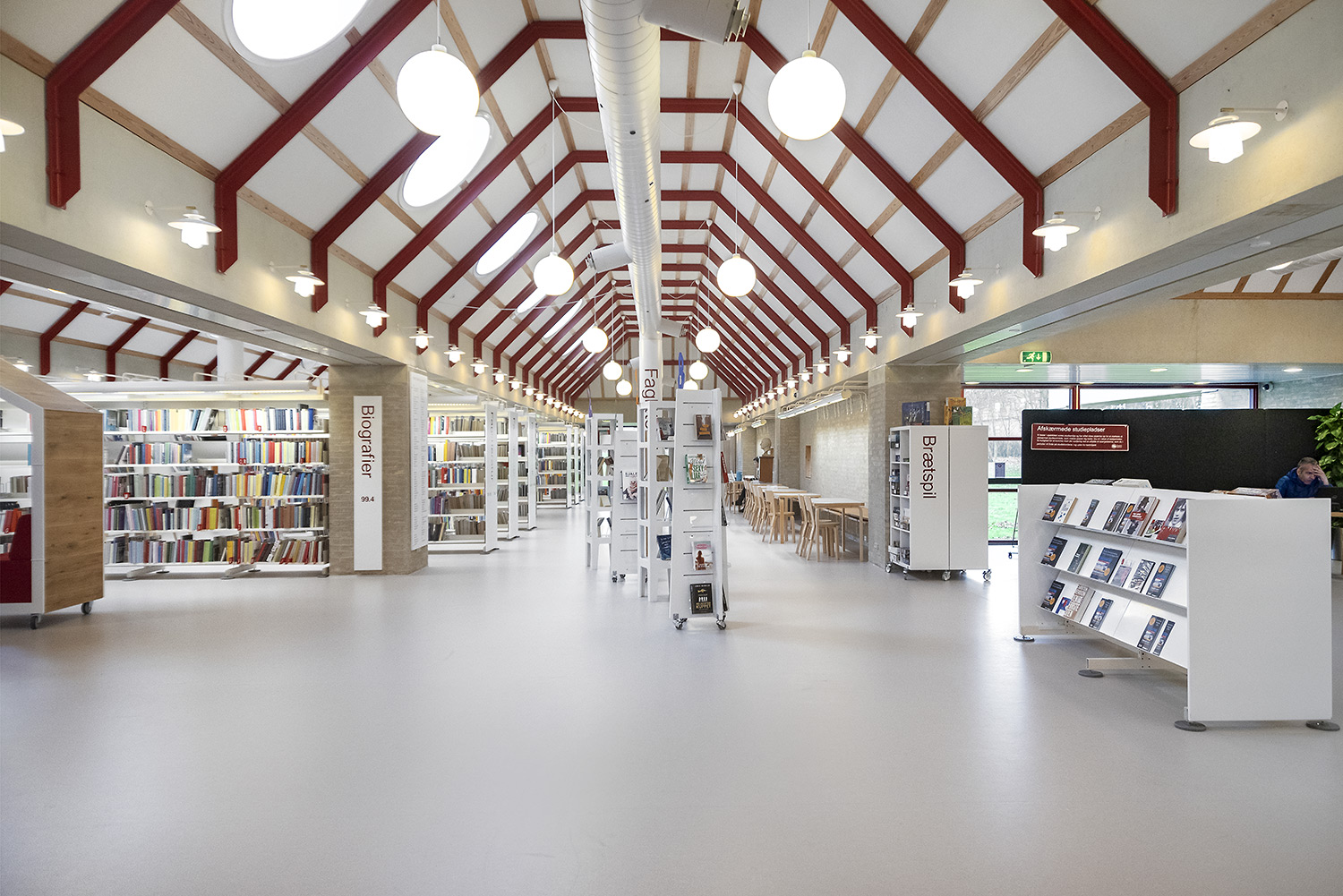 Ringsted Library has been continuously redesigned and now appears as an inspiring library, where the combination of colors, materials and furniture form a synthesis. Most recently, the children's department has been revitalized, where an entire city has emerged with petrol station, shop, reading forest and pancake house, which set the framework for the children's free play.