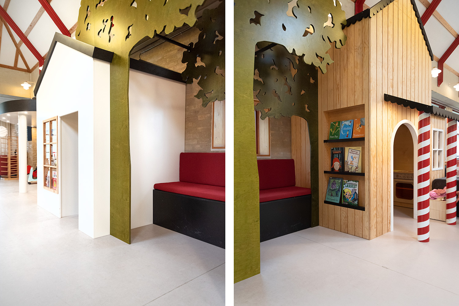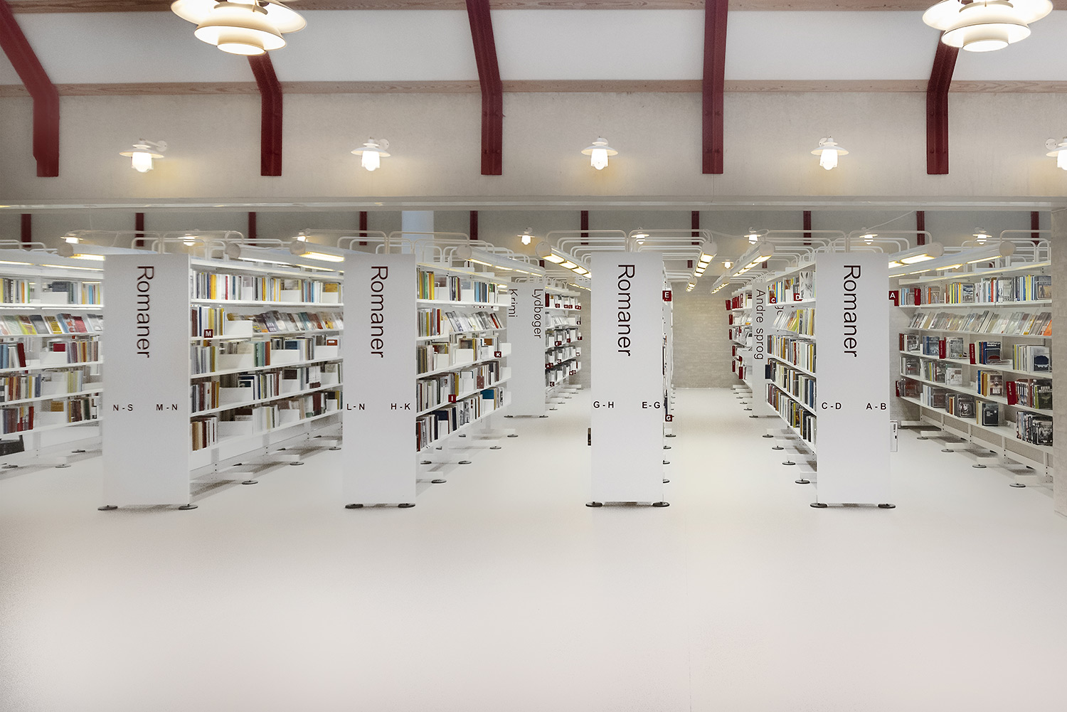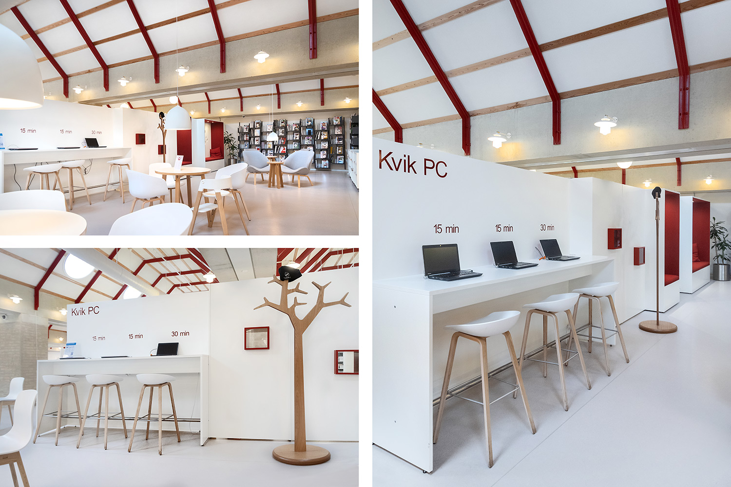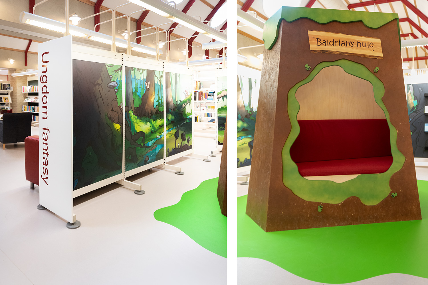 Ringsted Library has been continuously redesigned and now appears as an inspiring library, where the combination of colors, materials and furniture form a synthesis. Most recently, the children's department has been revitalized, where an entire city has emerged with petrol station, shop, reading forest and pancake house, which set the framework for the children's free play.