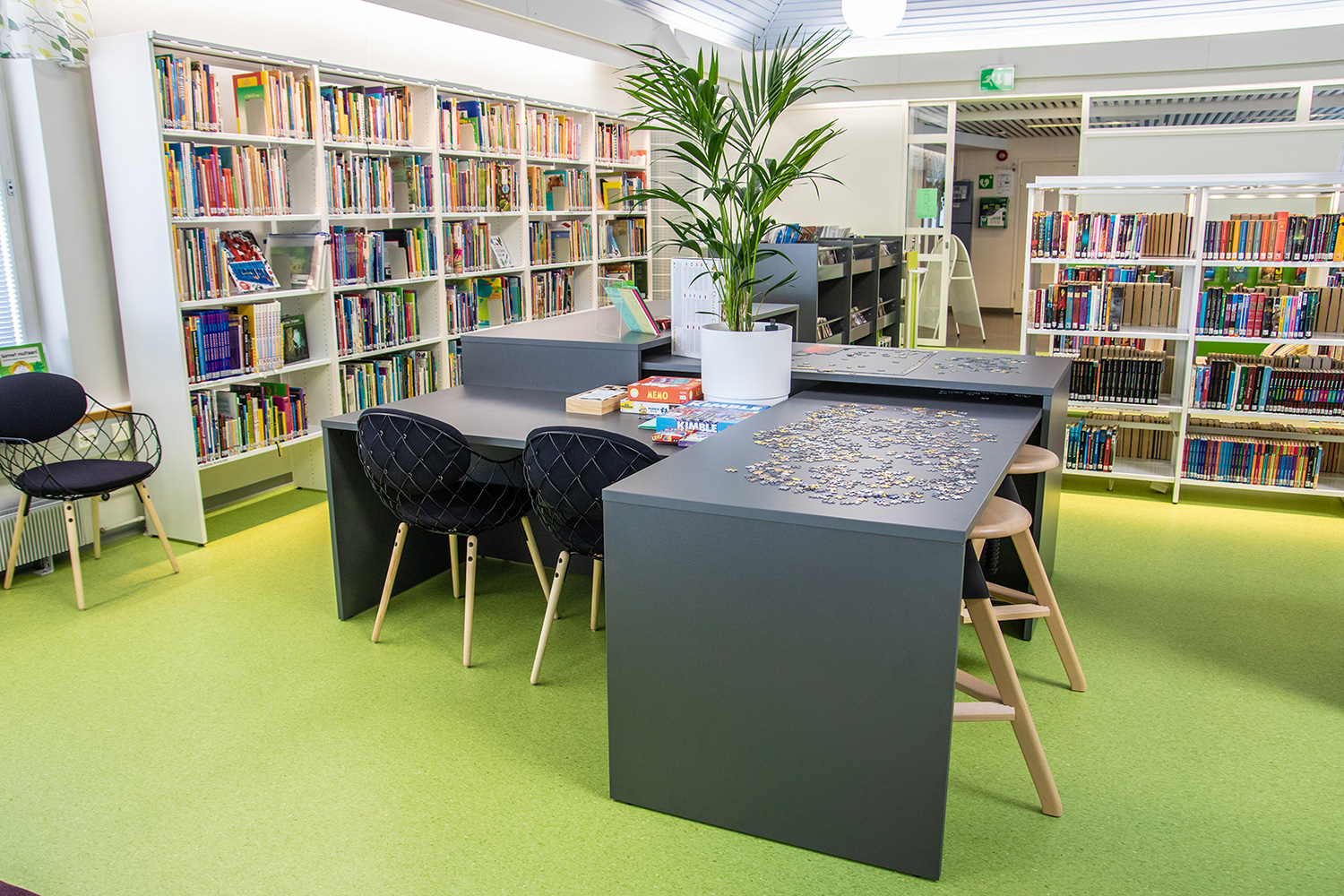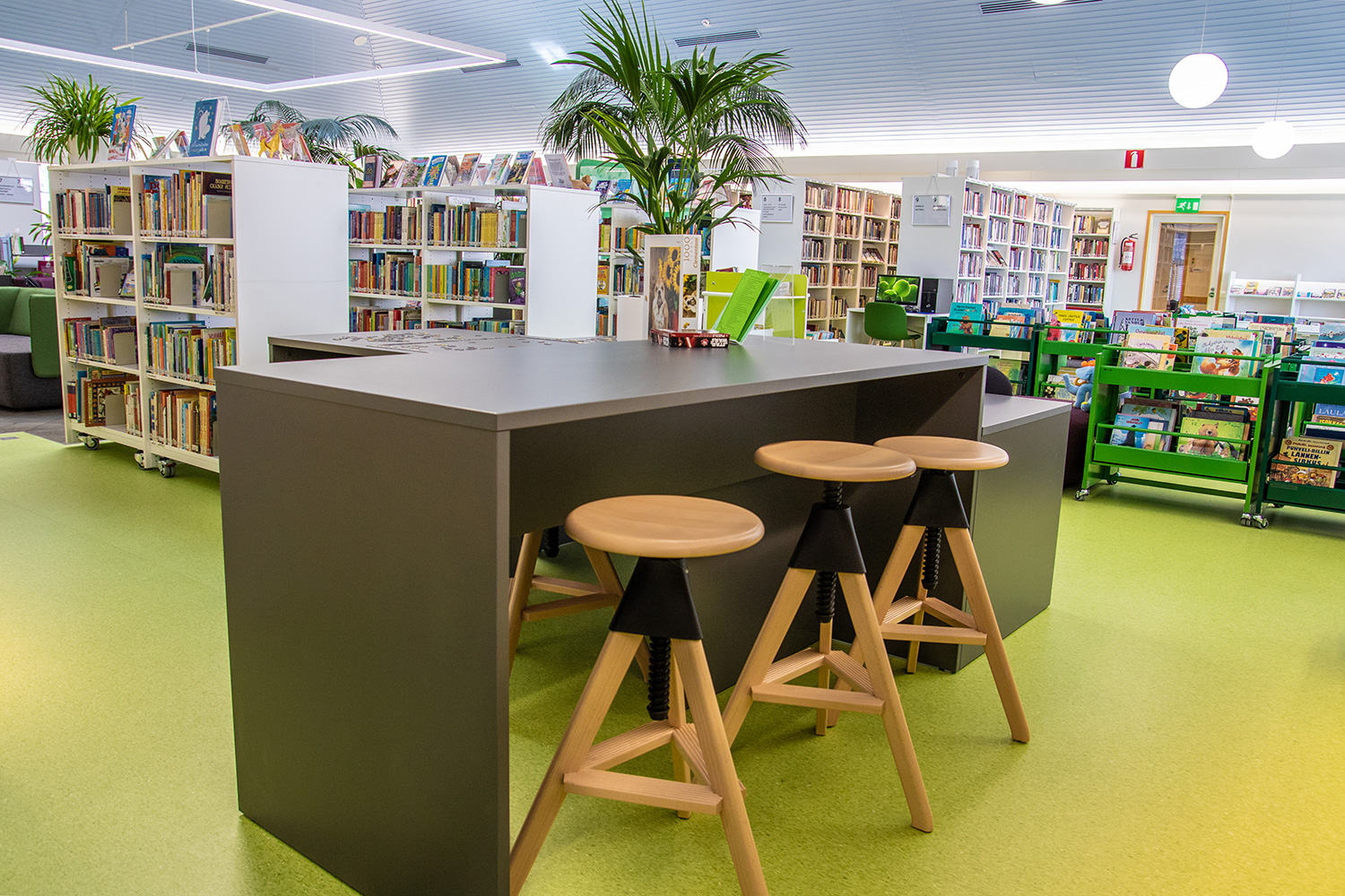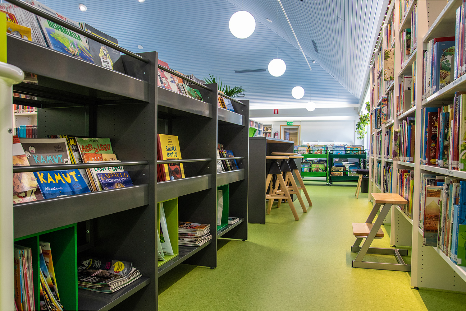 After serving the citizens of Nivala in more than 30 years, the library furniture and interior was old fashioned and in need of modernization. A new interior design has now been implemented and the new library space has been used to its full potential. With its new modern facilities Nivala library is now able to provide library service for all types of users. One of the focus points is the children’s and youth department that has been extended to cater for the high share of young people living in Nivala.