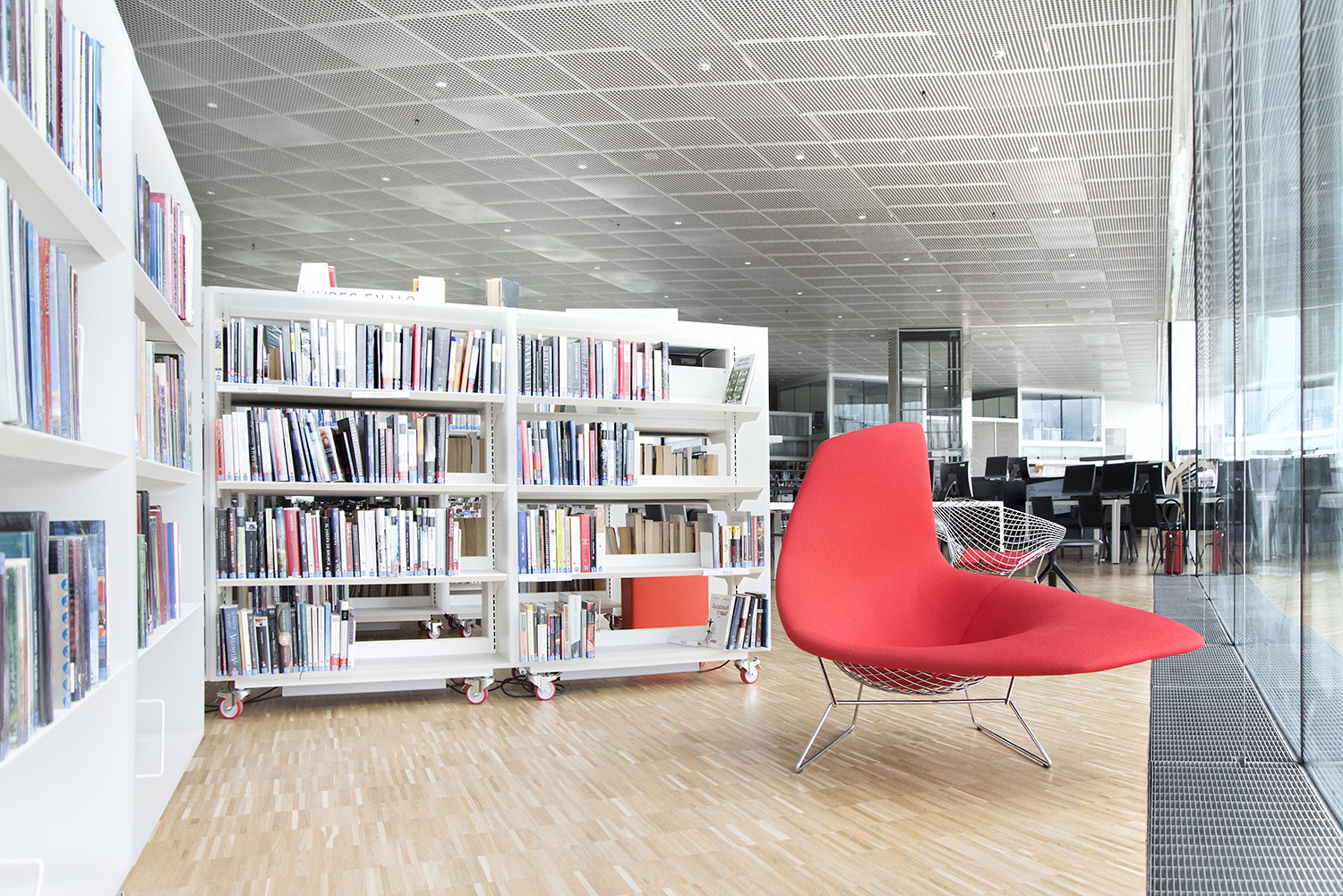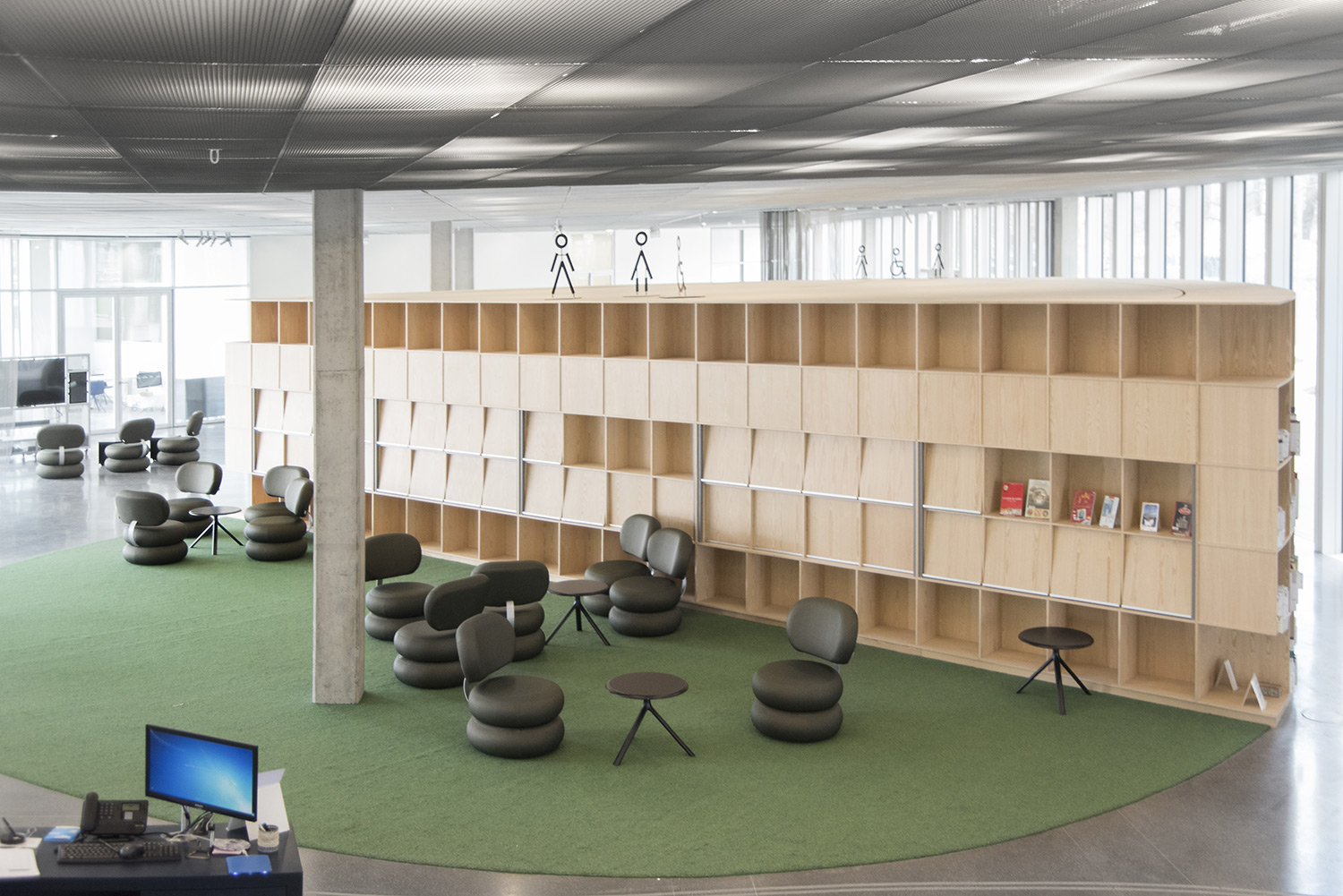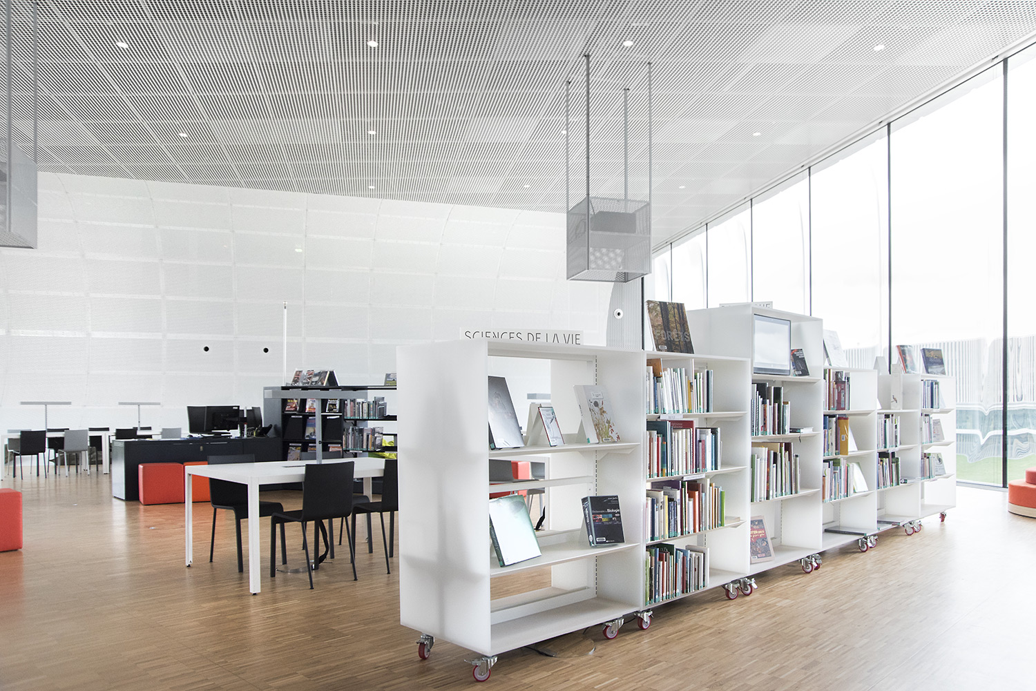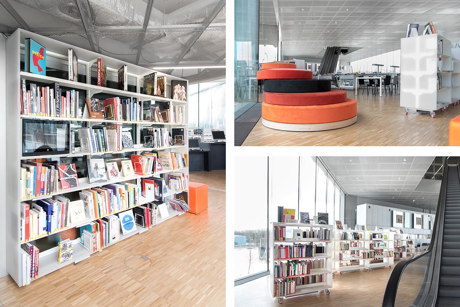 The integration of various types of media has been one of the focus points for the new library. BC Intérieur has also been involved in this process by supplying customized furniture to accommodate not only the 120,000 documents but also digital media.