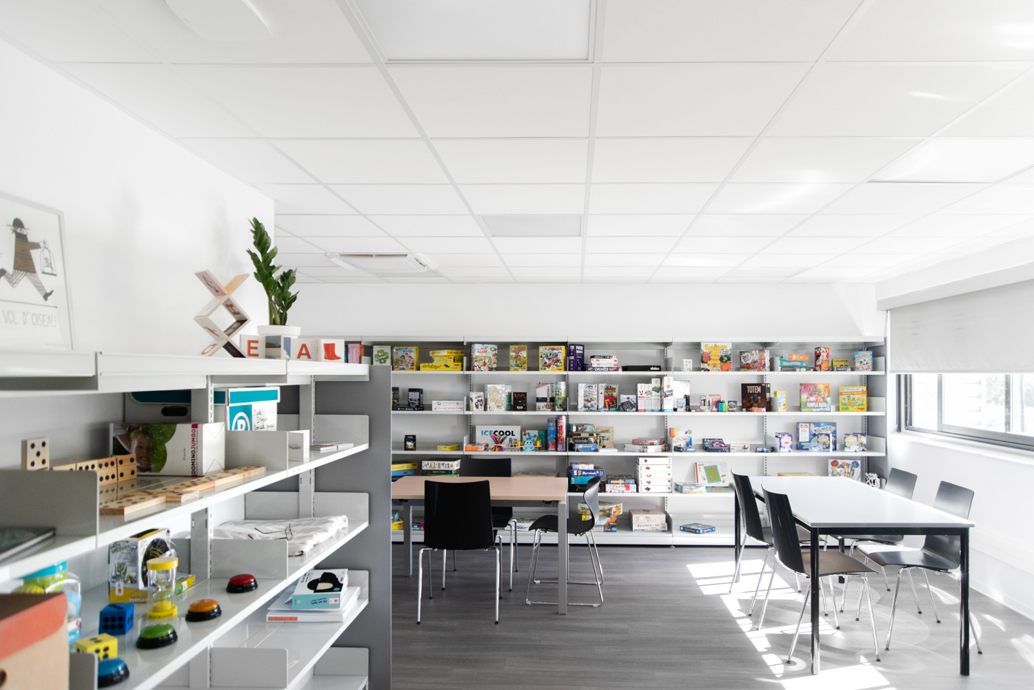A board games area has been built from an old, unused apartment that belonged to the main building. It thus helps to increase the range of resources, materials and training offered by the library.