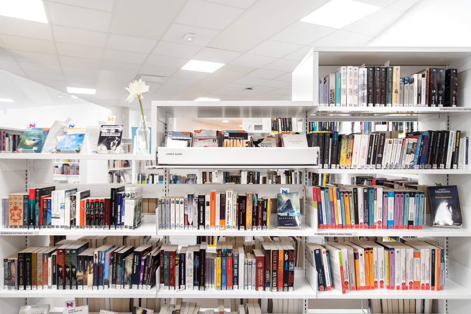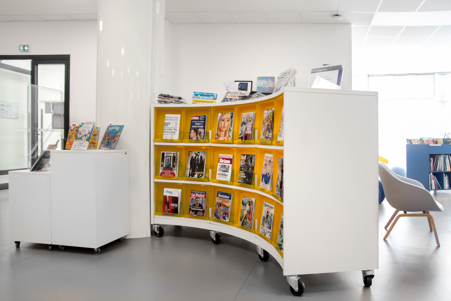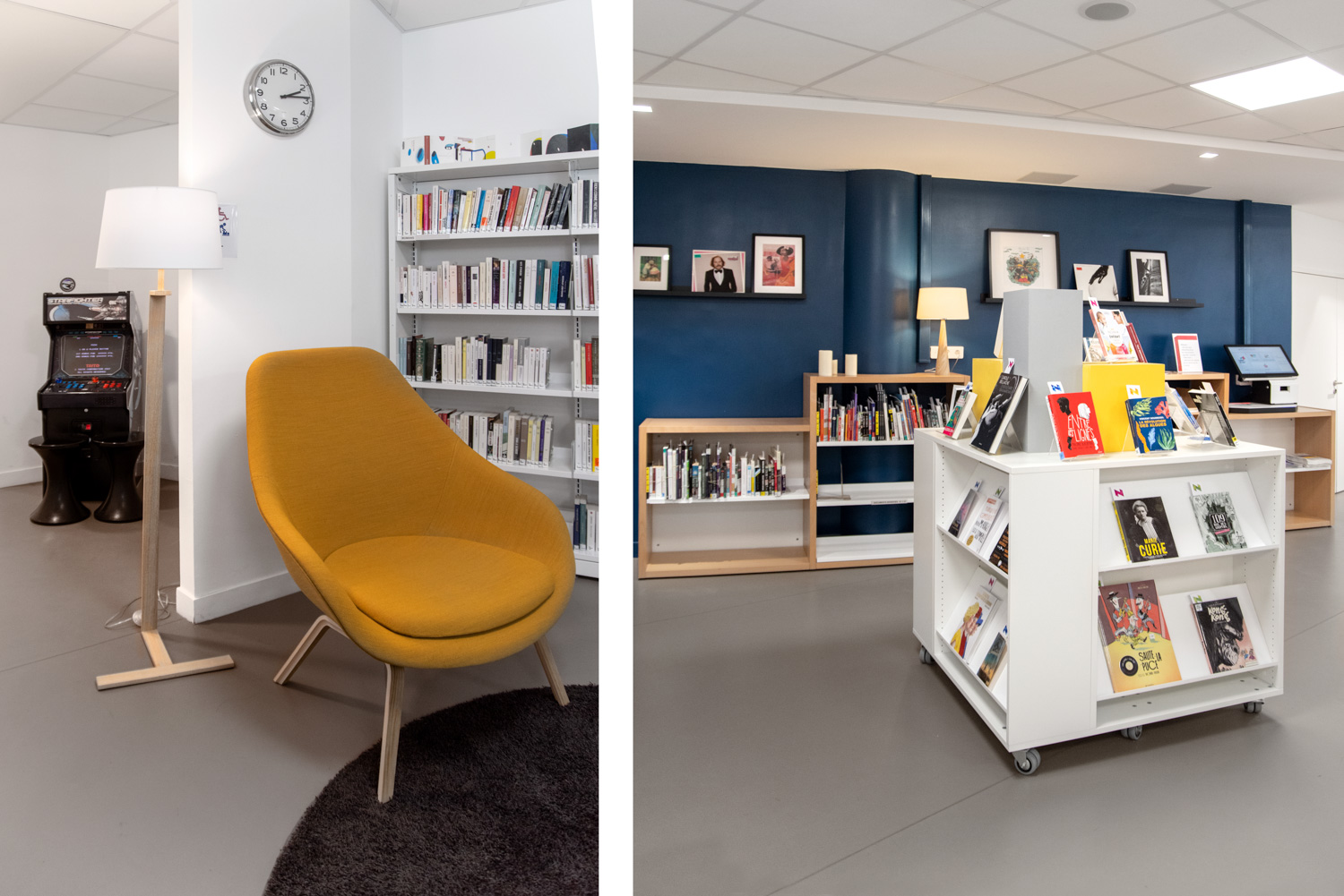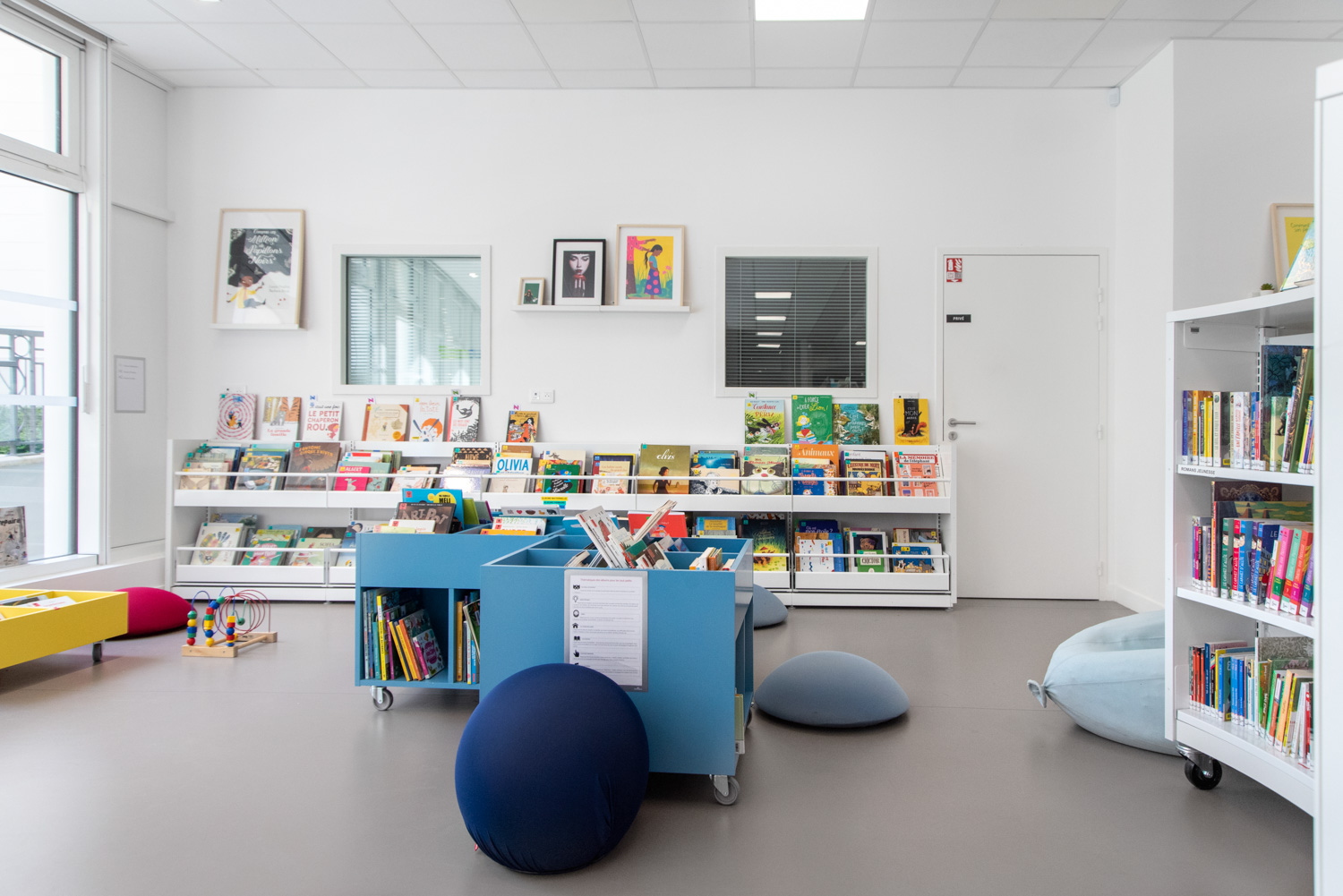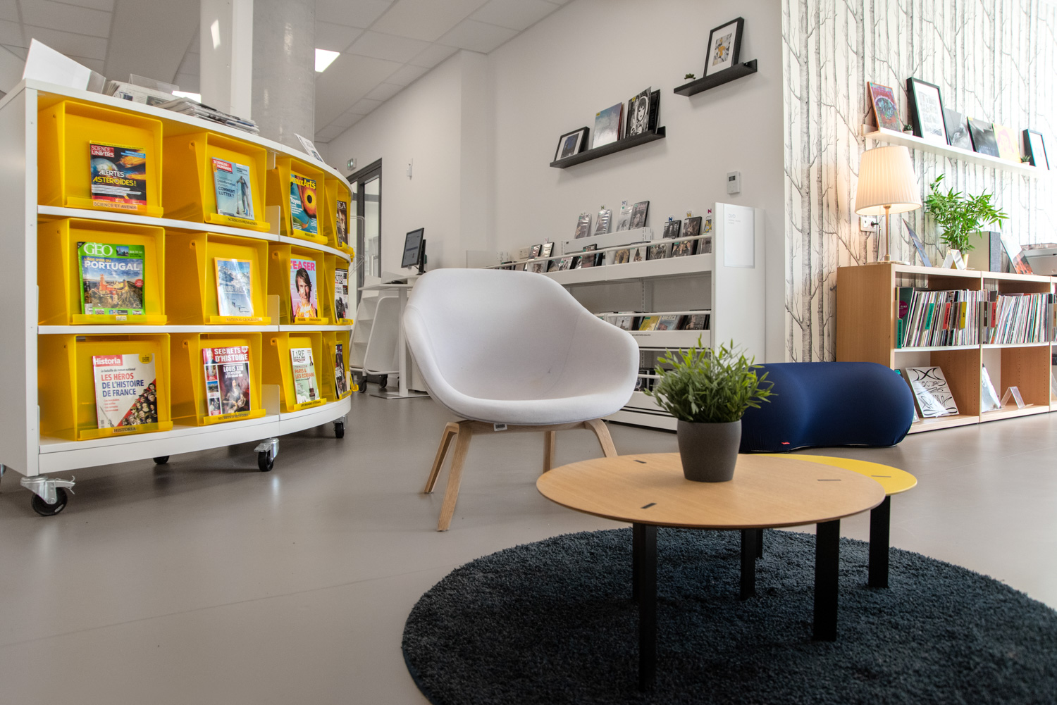 The work carried out in collaboration with BC Intérieur for the entire interior design has resulted in a cheerful and flexible library, with spaces that are visually coherent and clearly differentiated! This successful cooperation has created a cultural space, that invites the citizens to come in and spend time in the library either listening to a record in large armchairs, reading stories or comic books on comfortable poufs, or working in smaller groups.
