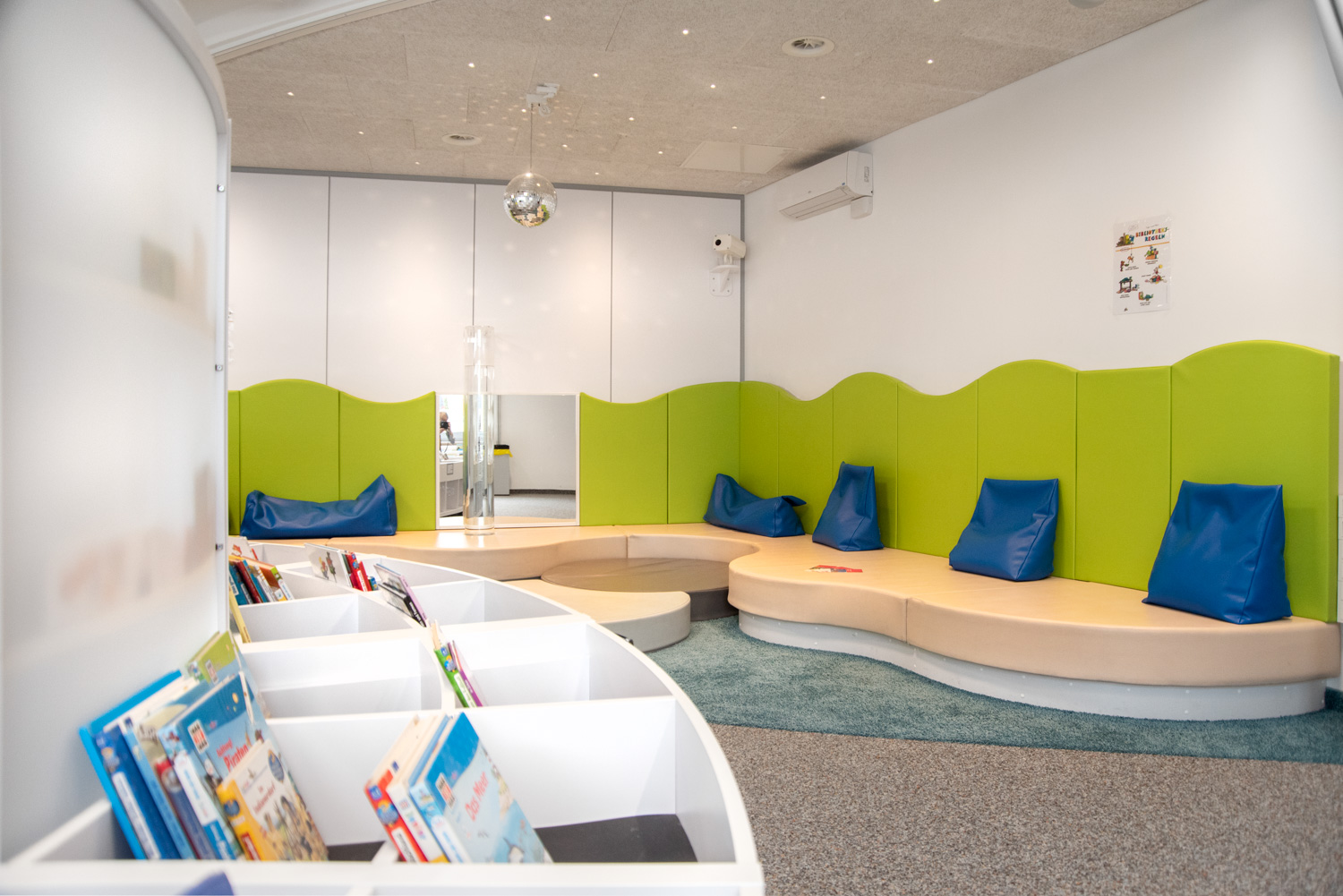 The library attracts all kinds of visitors who come to borrow a book, read a newspaper, play games, or search for other types of media. Schools have access to the library outside of regular opening hours, and the children appear excited about all the opportunities the library offers.