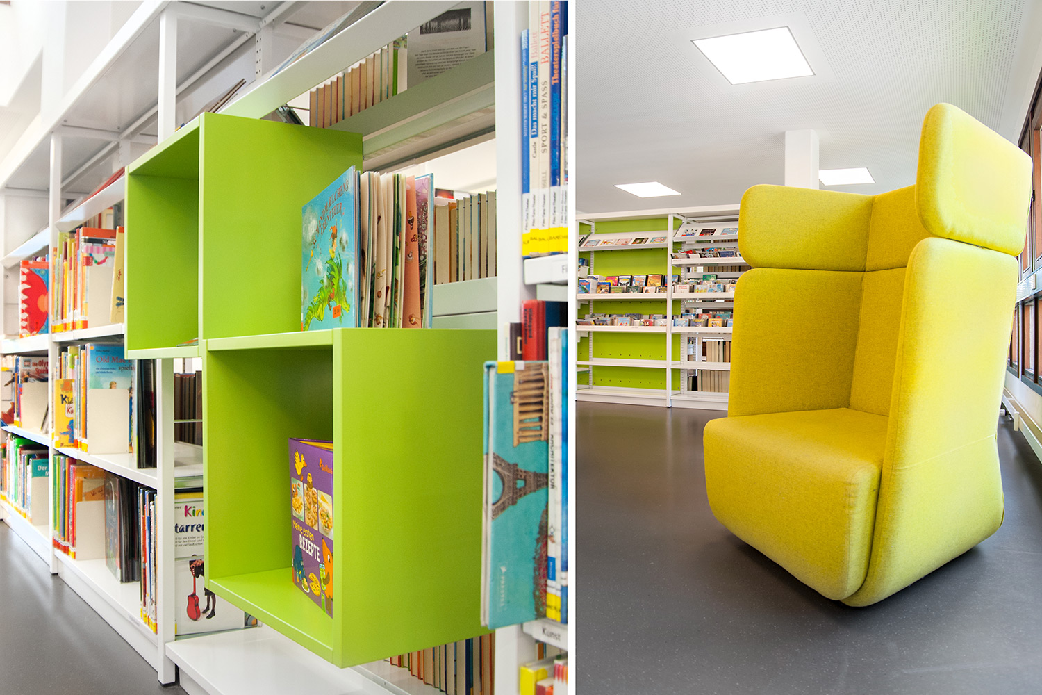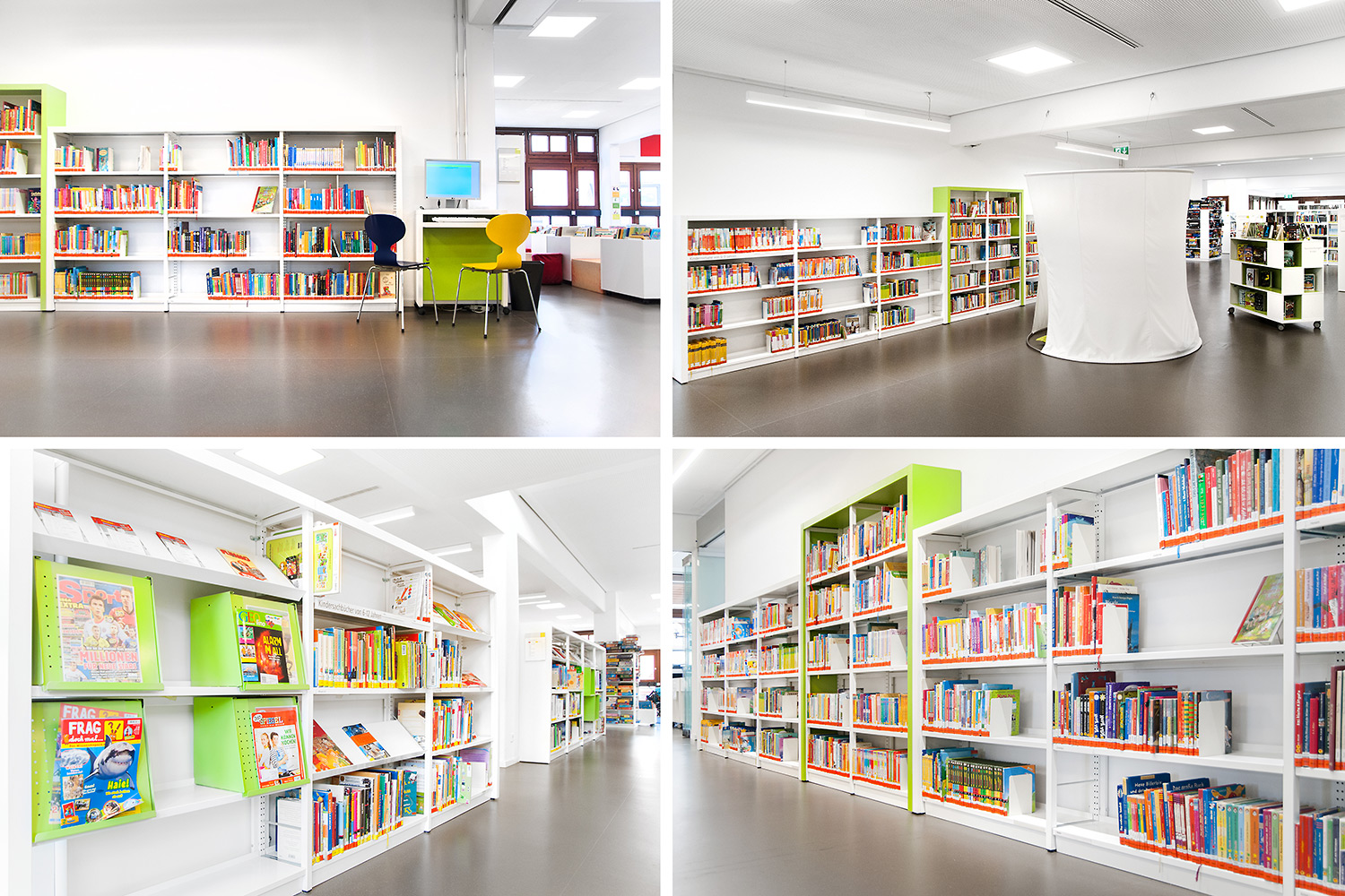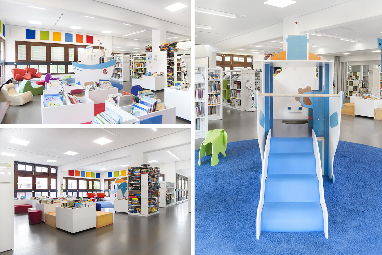 The library is located in the heart of the historical town Bietigheim. In these historical settings it was important to create an oasis of relaxation, but also a modern environment where users feel comfortable. The library is created for all kinds of users and brings together both old and young under one roof. An example of great success is the childrens' zone where children can develop their imagination while parents can use the lounge area.