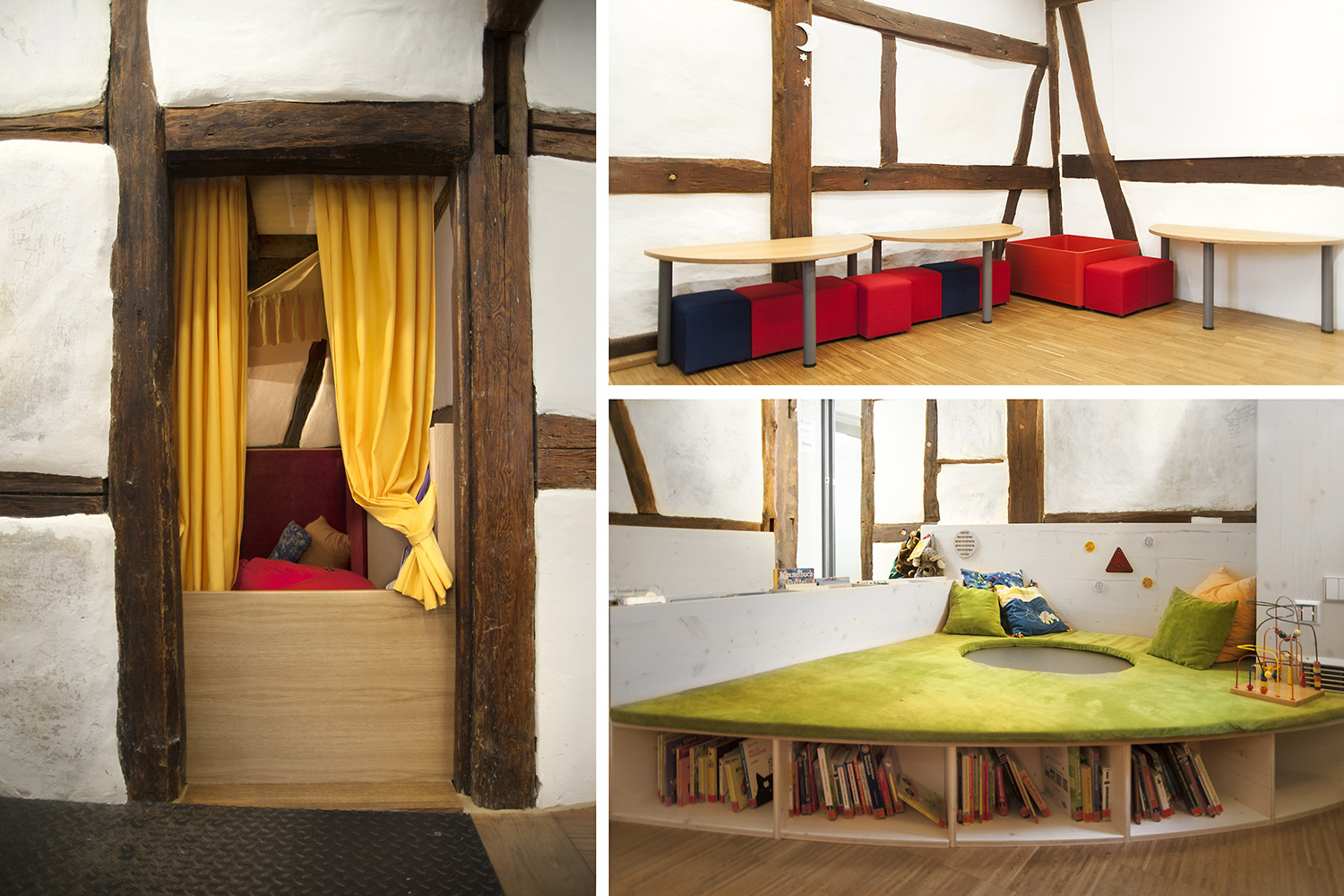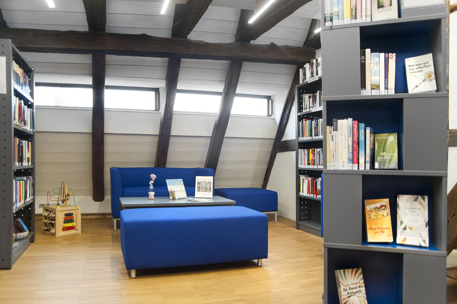 In 2015, the public library in Ehningen moved from the former location in the school to the restored post-and-beam constructed house with modern cultivation.