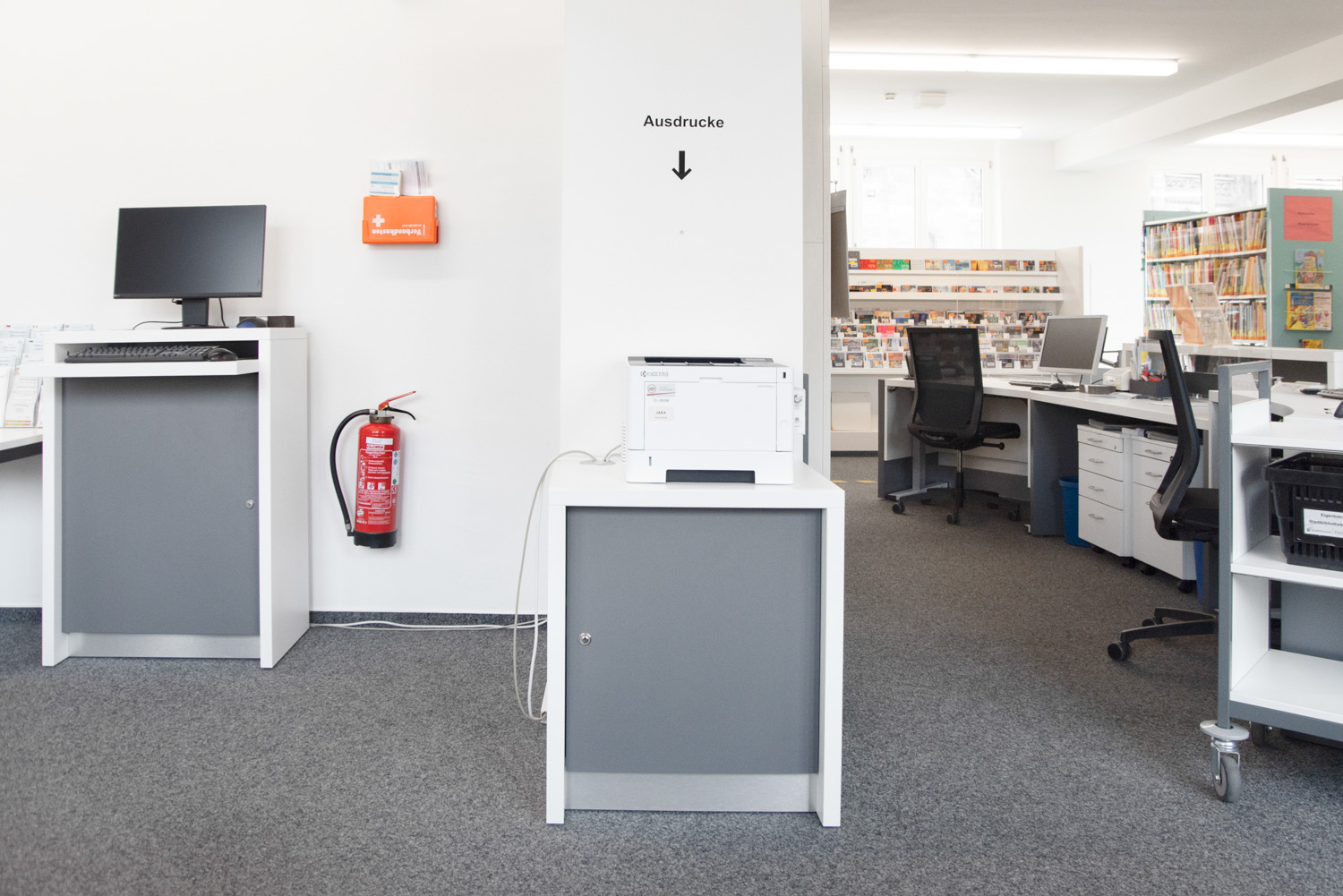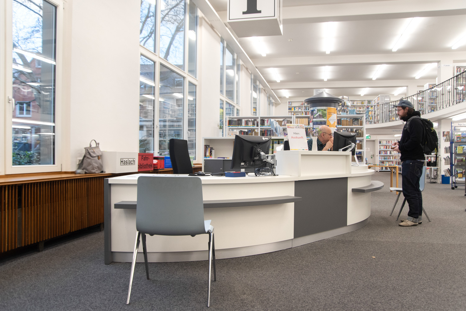 On the first floor of Freiburg Library, we have completed the first installation of a round and height-adjustable counter from Inform.