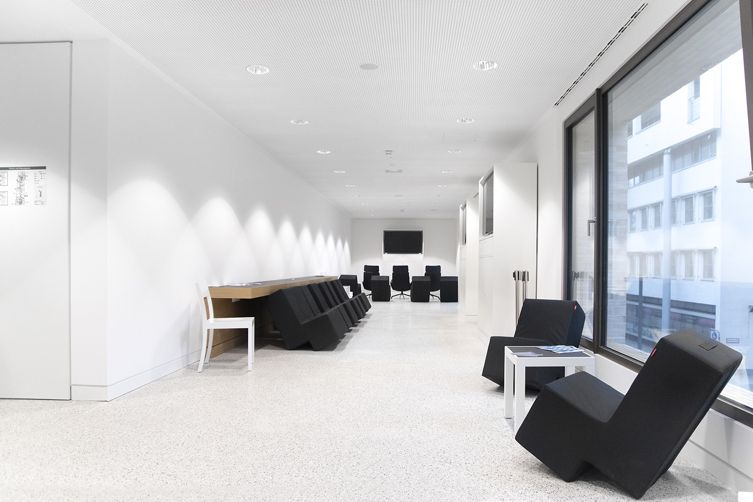 The convincing result is a successful symbiosis of high-class elegance and stay value for the users. The impressive impression of the library runs like a line from the building façade over the entrance to the individual floors. Nevertheless, as a visitor you want to discover the library for yourself and spend time here.