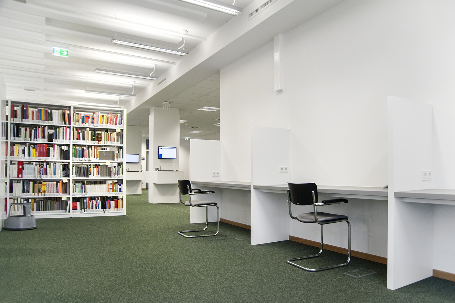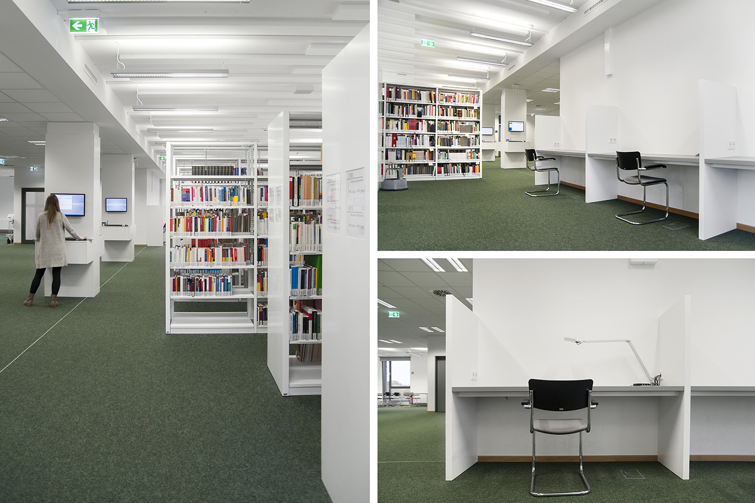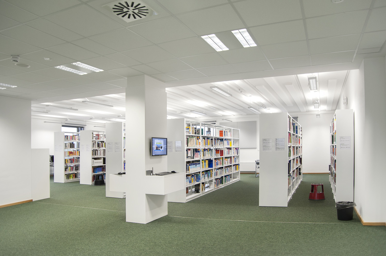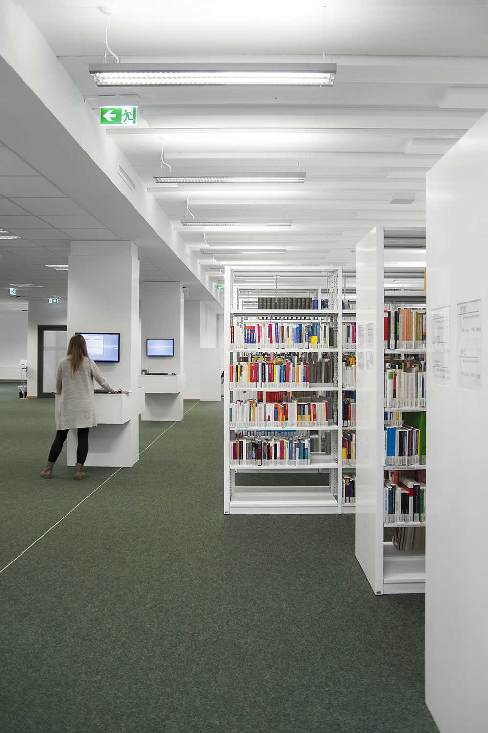 Equipped with technical innovations such as electronic information system paths, book delivery service via radio chip, computer work stations, WiFi, a cutting-edge learning lounge and extensive digital make the library a frontrunner