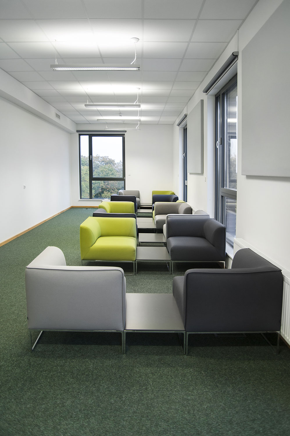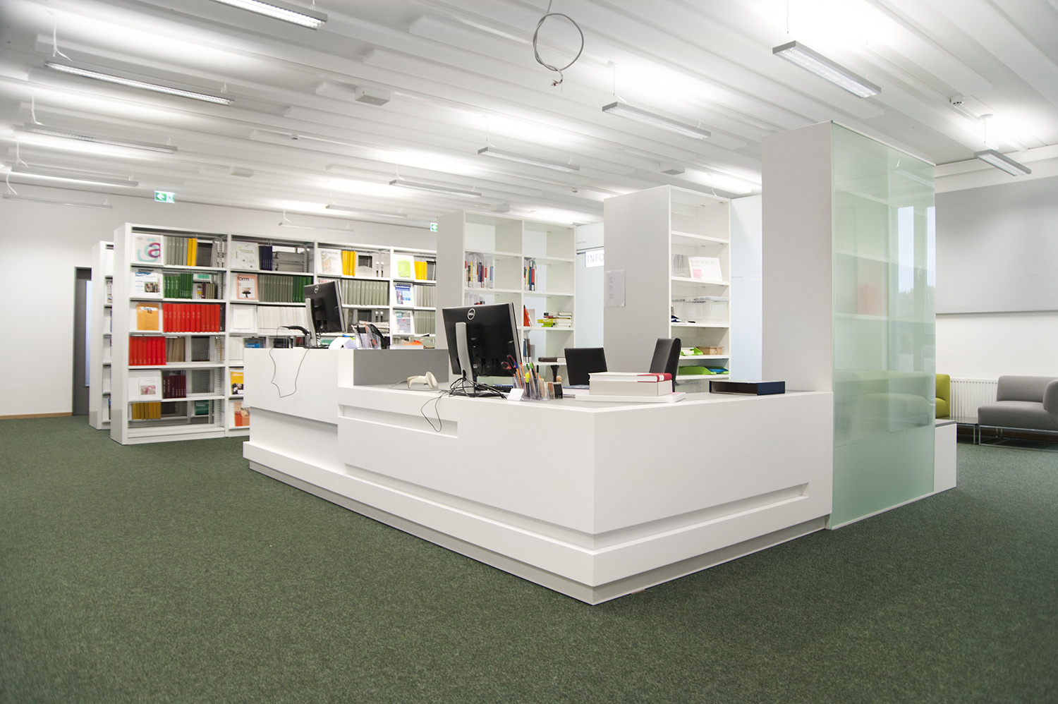 In addition to the technology the architecture and interior design are also contemporary. A continuous color concept provides a pleasant atmosphere to study and work.