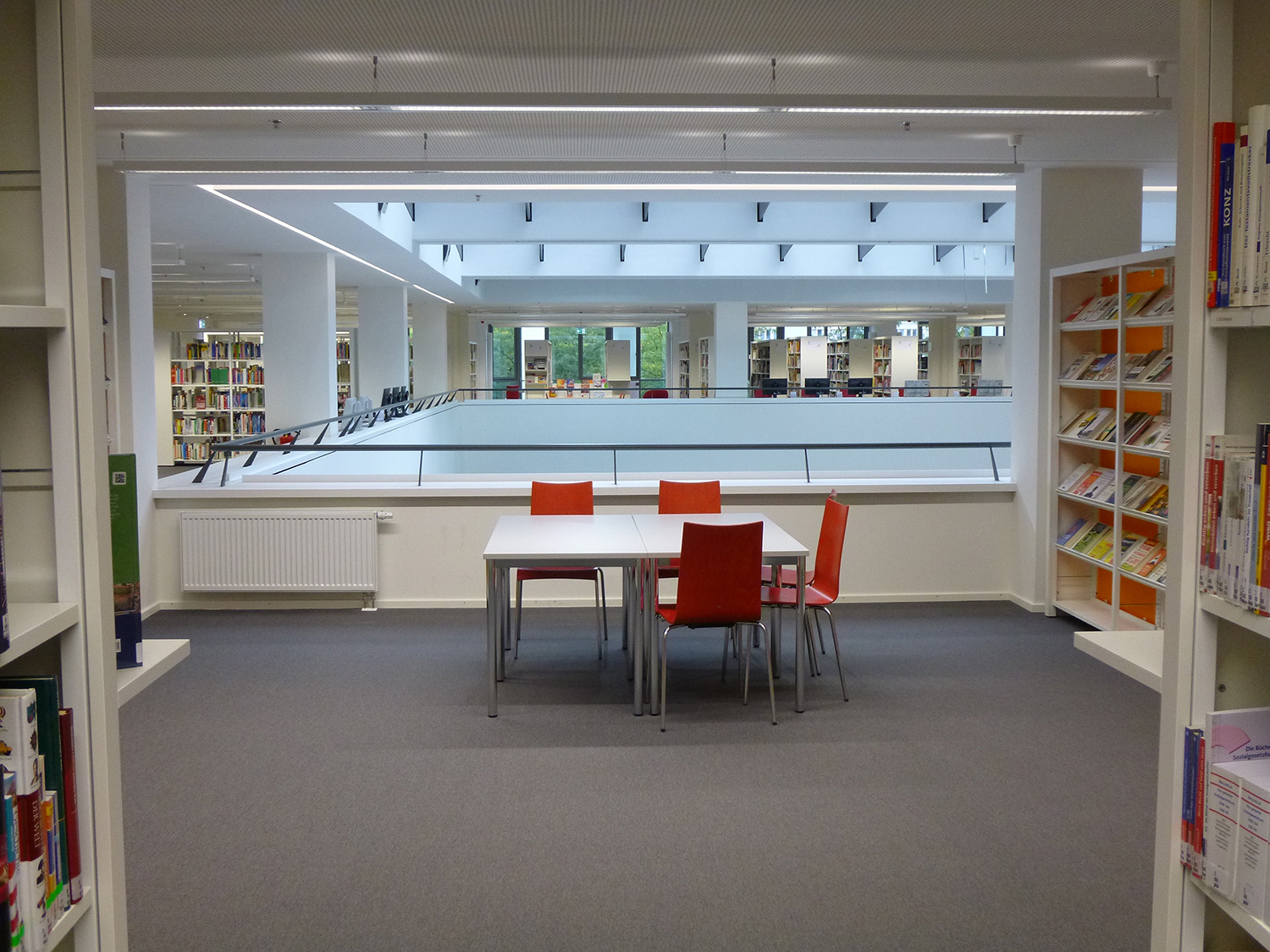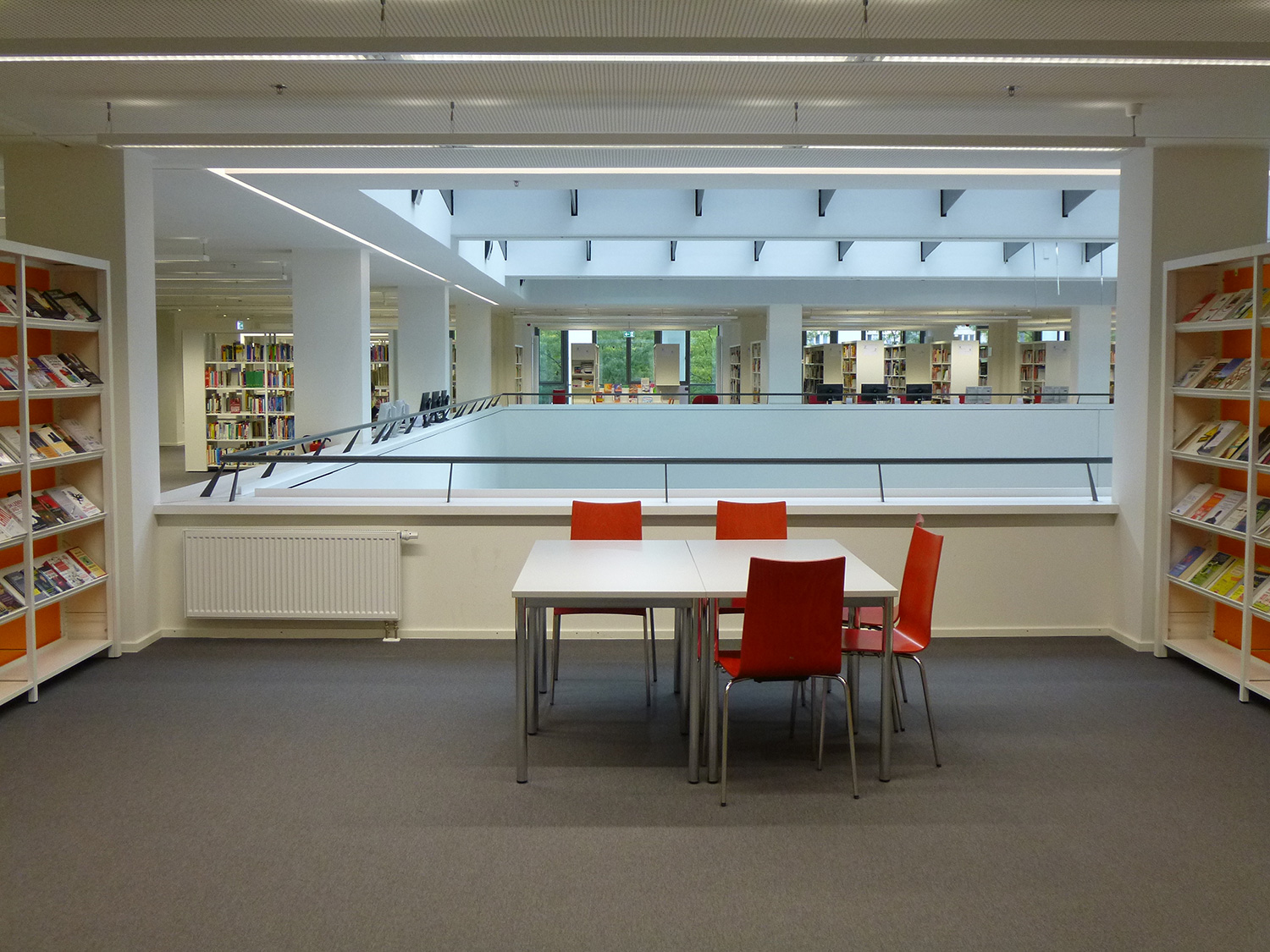 The new city and country library in the education area in Potsdam is the central and public education institution in capital of the federal state Brandenburg. The complete renovation under the supervision of the architect Rainer Becker had the goal of putting people in the centre and thereby invite to thinking, learning, reading and hanging out.