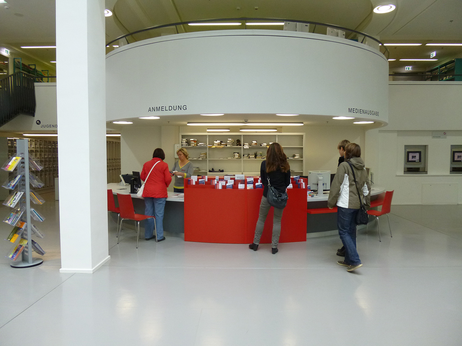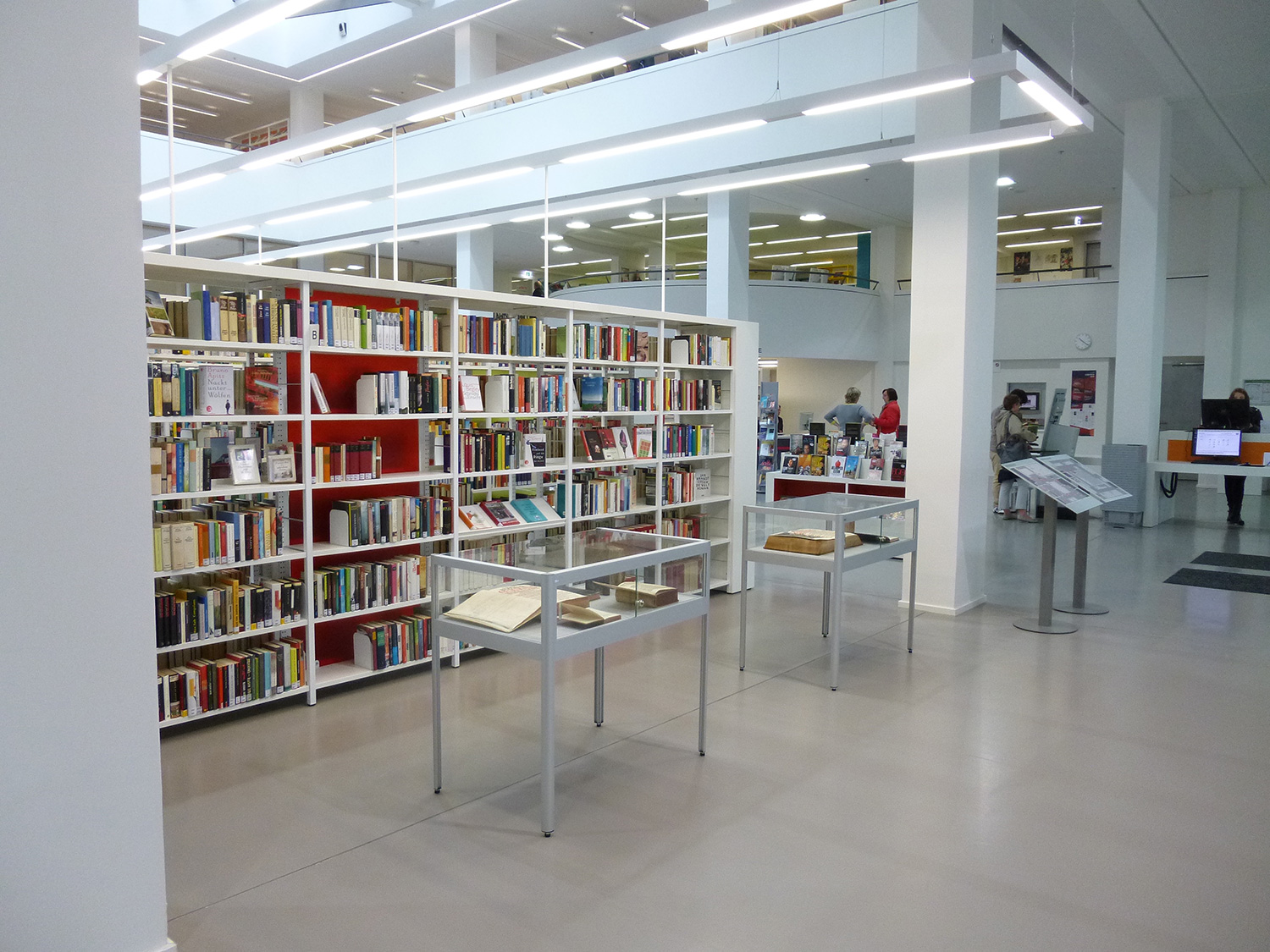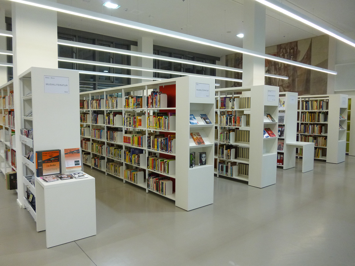 The Schulz Speyer Bibliothekstechnik AG had among other things the shelving system Uniflex with wooden floor as well as custom made solutions – as special curved shelves – to make the interior suitable to realizing the goal. The focus was on the high quality and the optimal mediapresentation so the guest would be inspired.