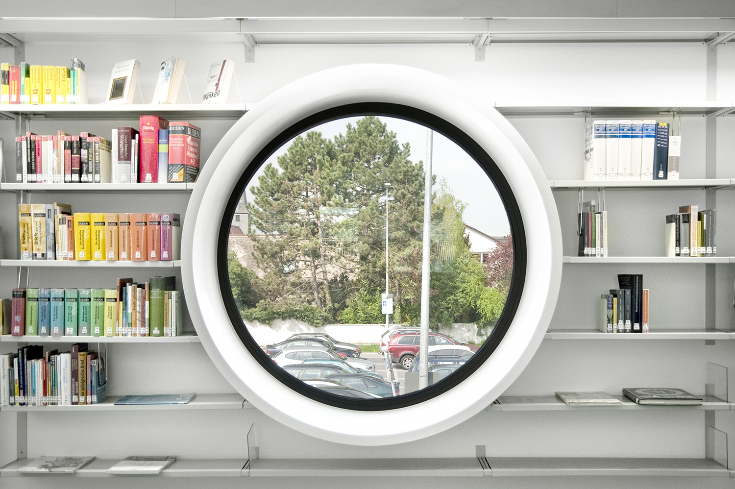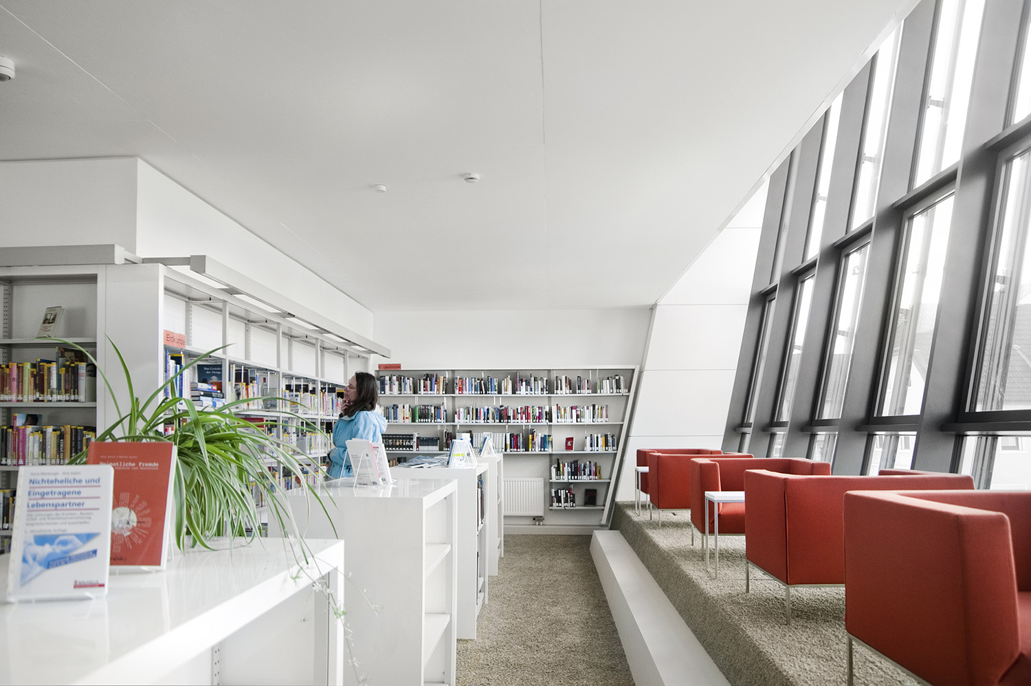The location is central, the character maritime and the size of the building reminds one of an Atlantic cruise ship. Weiterstadt’s new library is quite unique and difficult not to notice! The building’s architecture commands attention and the citizens of Weiterstadt also find public services and two cafés here.