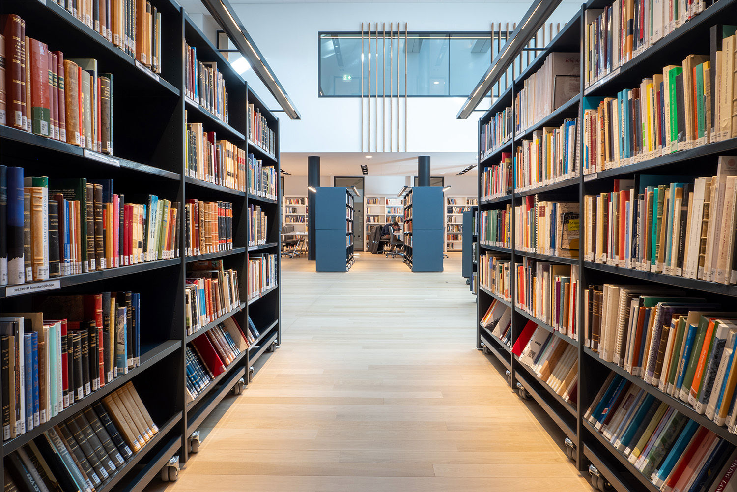 We worked with our partners Þjónustumiðstöð bókasafna in Reykjavik to supply the best solution for the customer and building, resulting in using a combination of static and mobile, straight, and curved Lingo shelving with lighting and acoustic treatments.