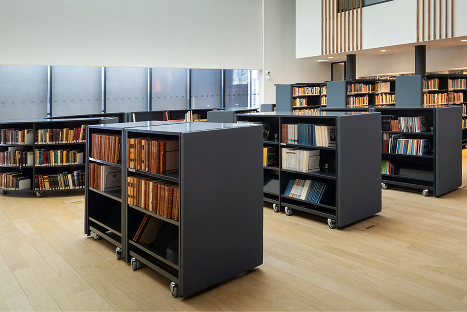 Placing emphasis on the combination of natural light offered by the building fabric, and artificial light integrated into the shelving was a key driver in choosing the right product for the main hall and surrounding areas.