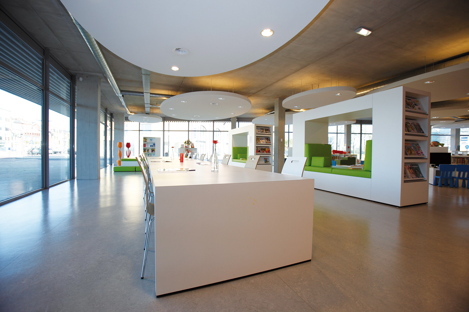 Just like the surrounding area and the building, the library is a truly modern creation. A place for cultural experiences and social interaction as well as a tool for purposeful information searching.