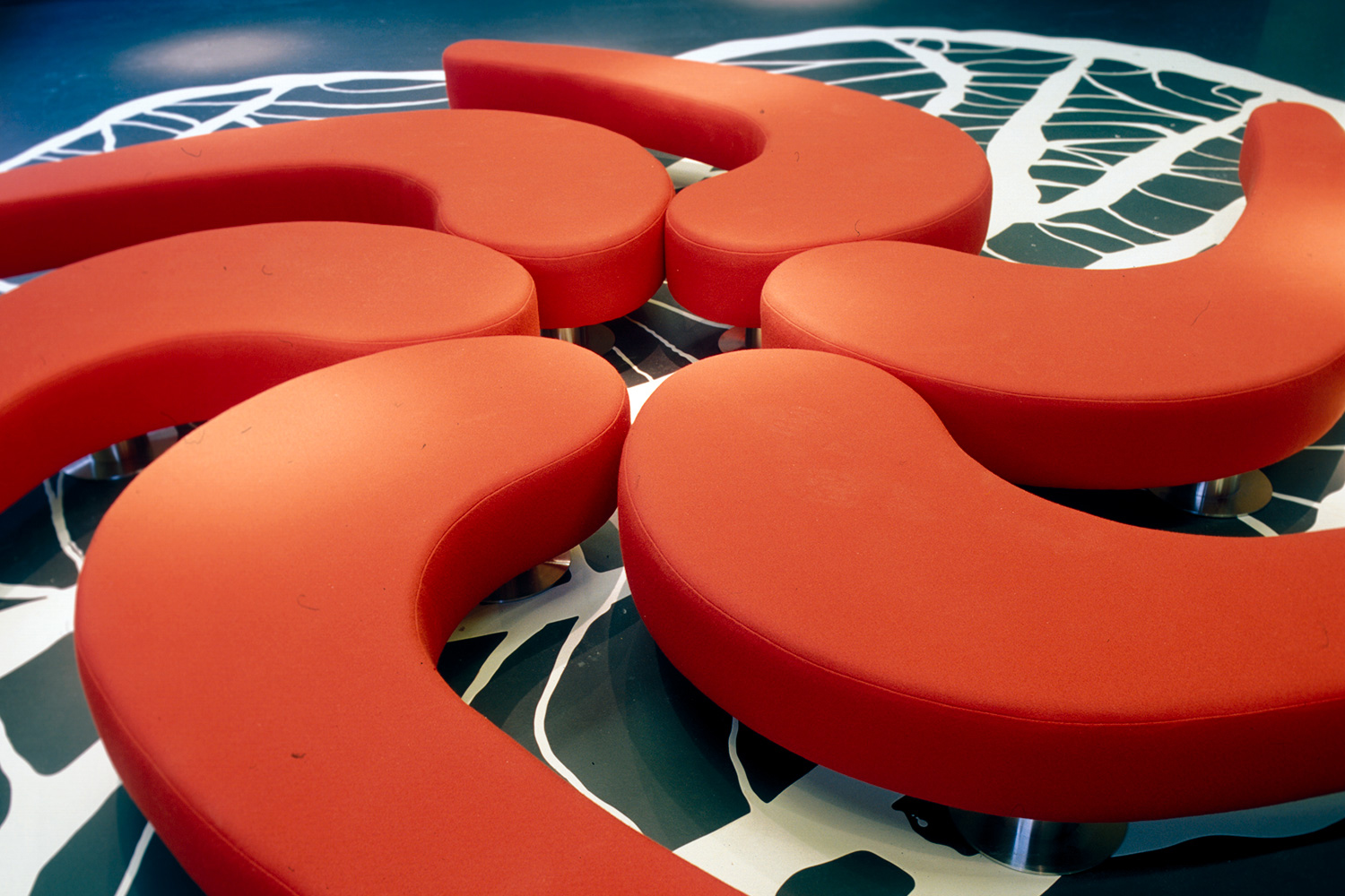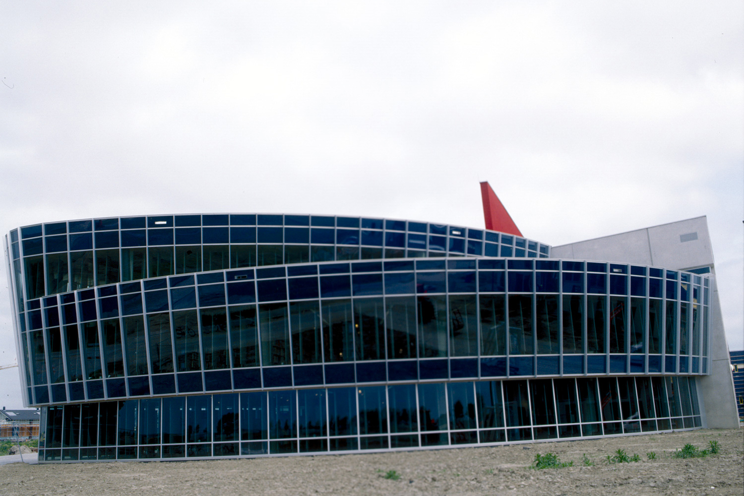 The building exterior serves as a landmark in a new neighborhood, and its boldness brashly continues inside the building. Interior designer Aat Vos has used light flows and materials in an innovative way.