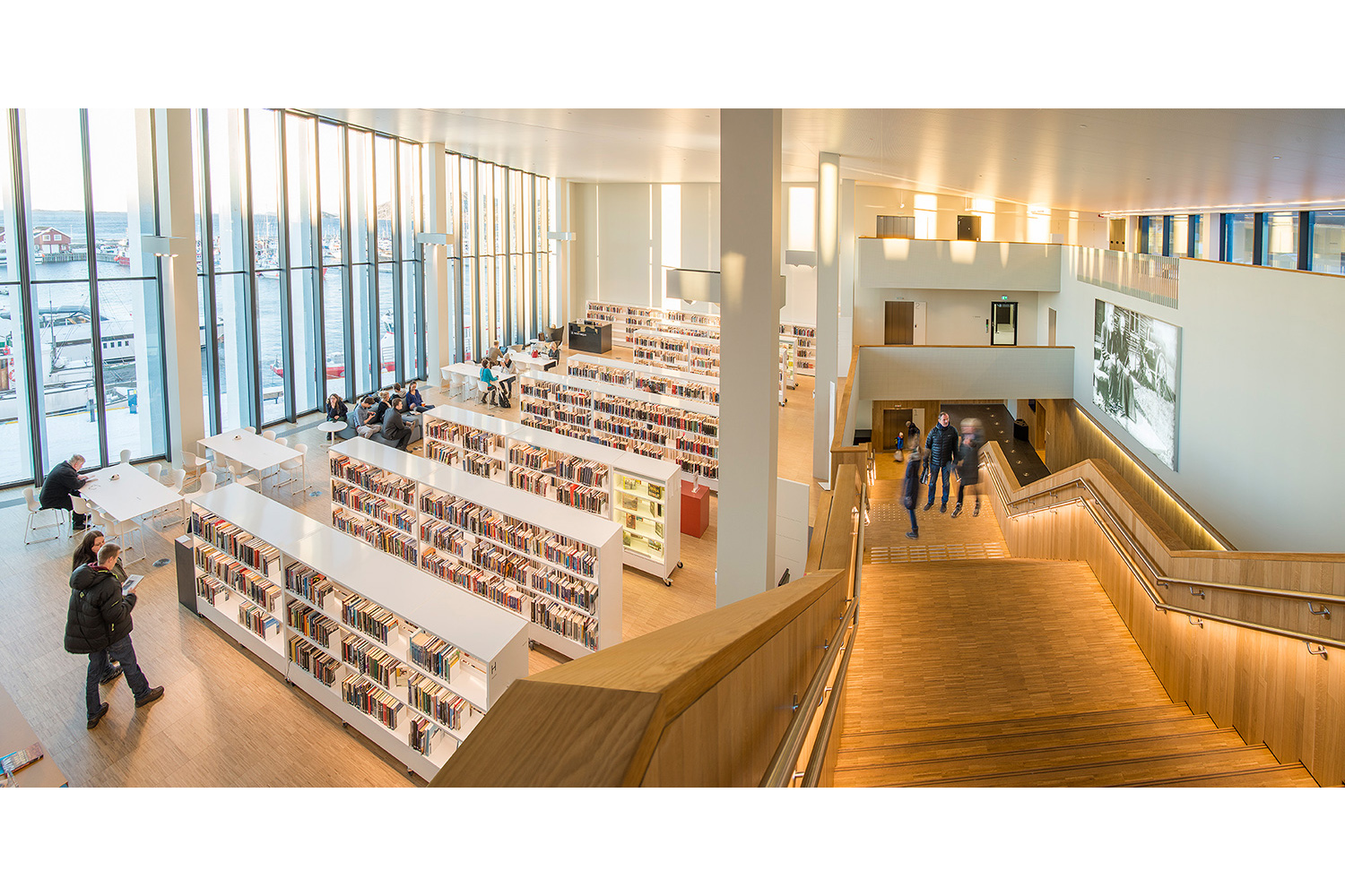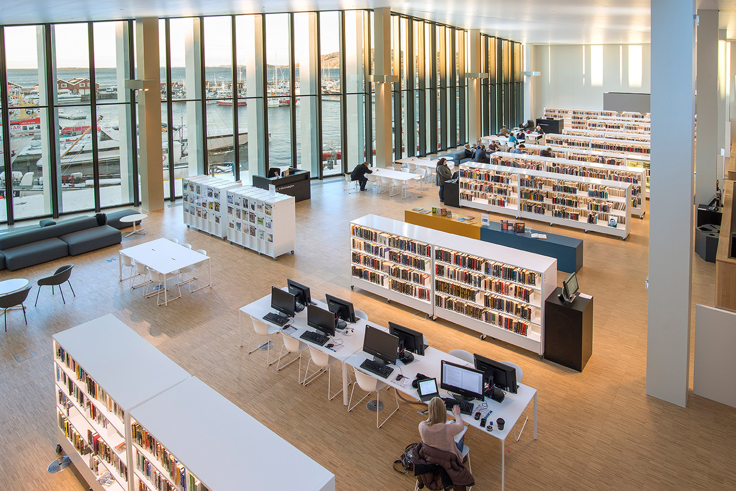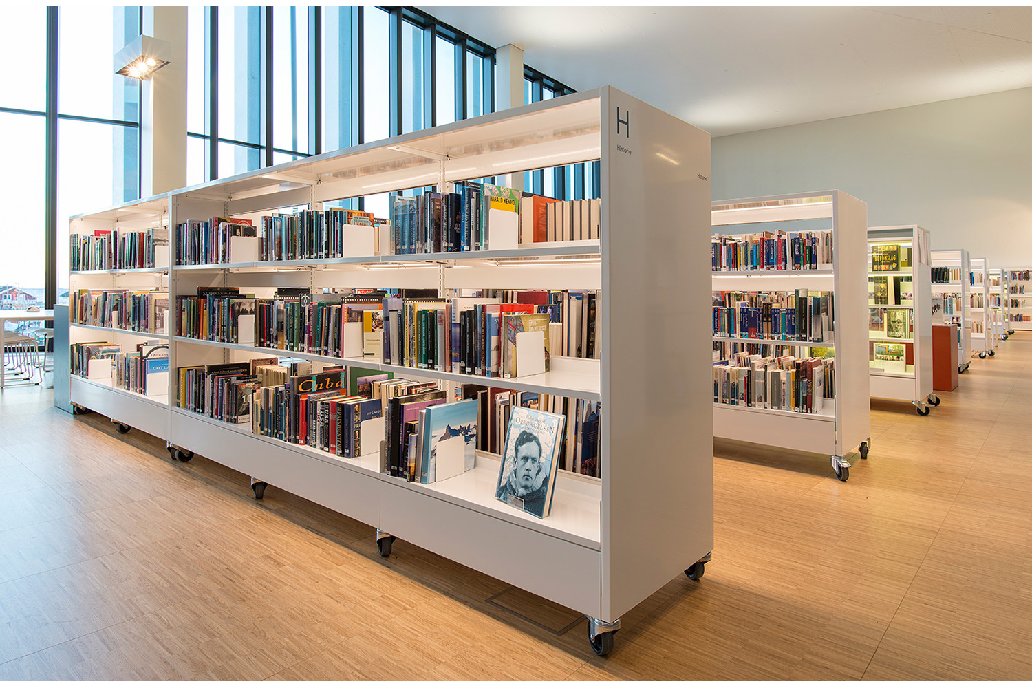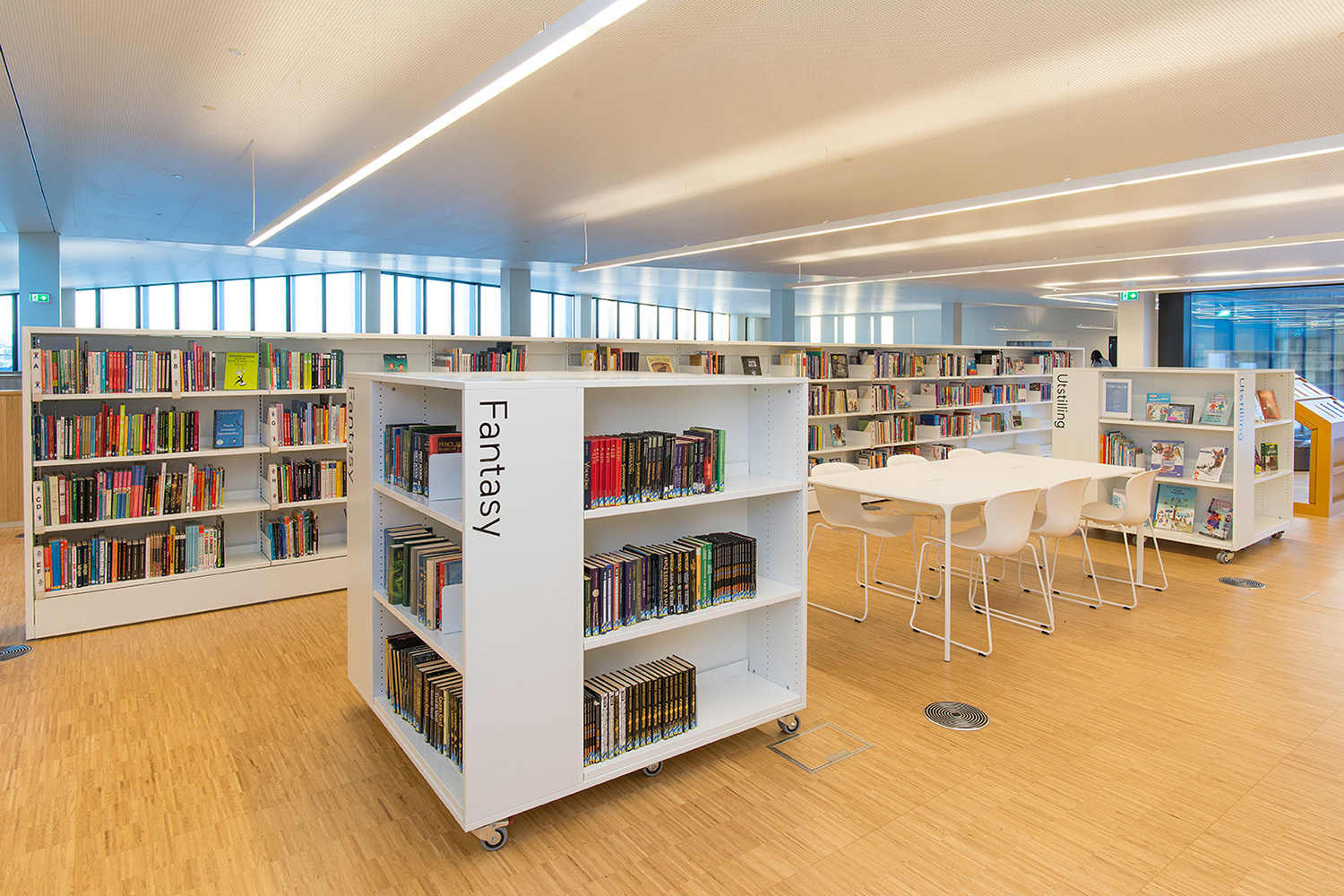 The library is built as airy as possible - and the furniture is specifically chosen to fit into this light and airy environment. An important factor is that the same furniture is found in many variations: In the children's zone the shelving systems have a size that suits children, and in the adult zone you will find the same furniture – but adapted to adults. This applies to the whole of the library.