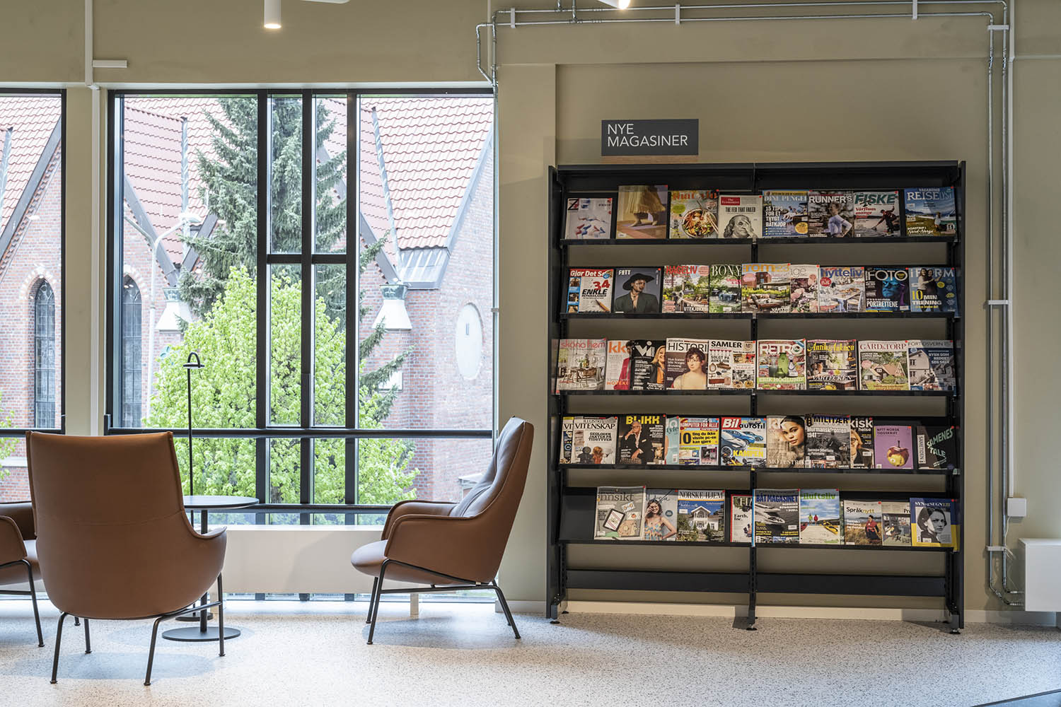 The adult department is located on the 1st floor, where you will also find a small stage for events and a room for Makerspace. The Halden local history archive also has its own area in the library.