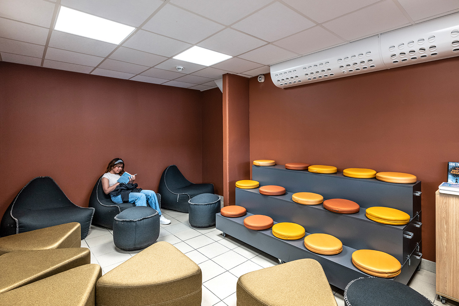 Additionally, the library boasts a kitchenette accessible to all visitors for events and meetings, which sees near-constant use throughout the day. Furthermore, a well-utilized meeting room is also available on site.