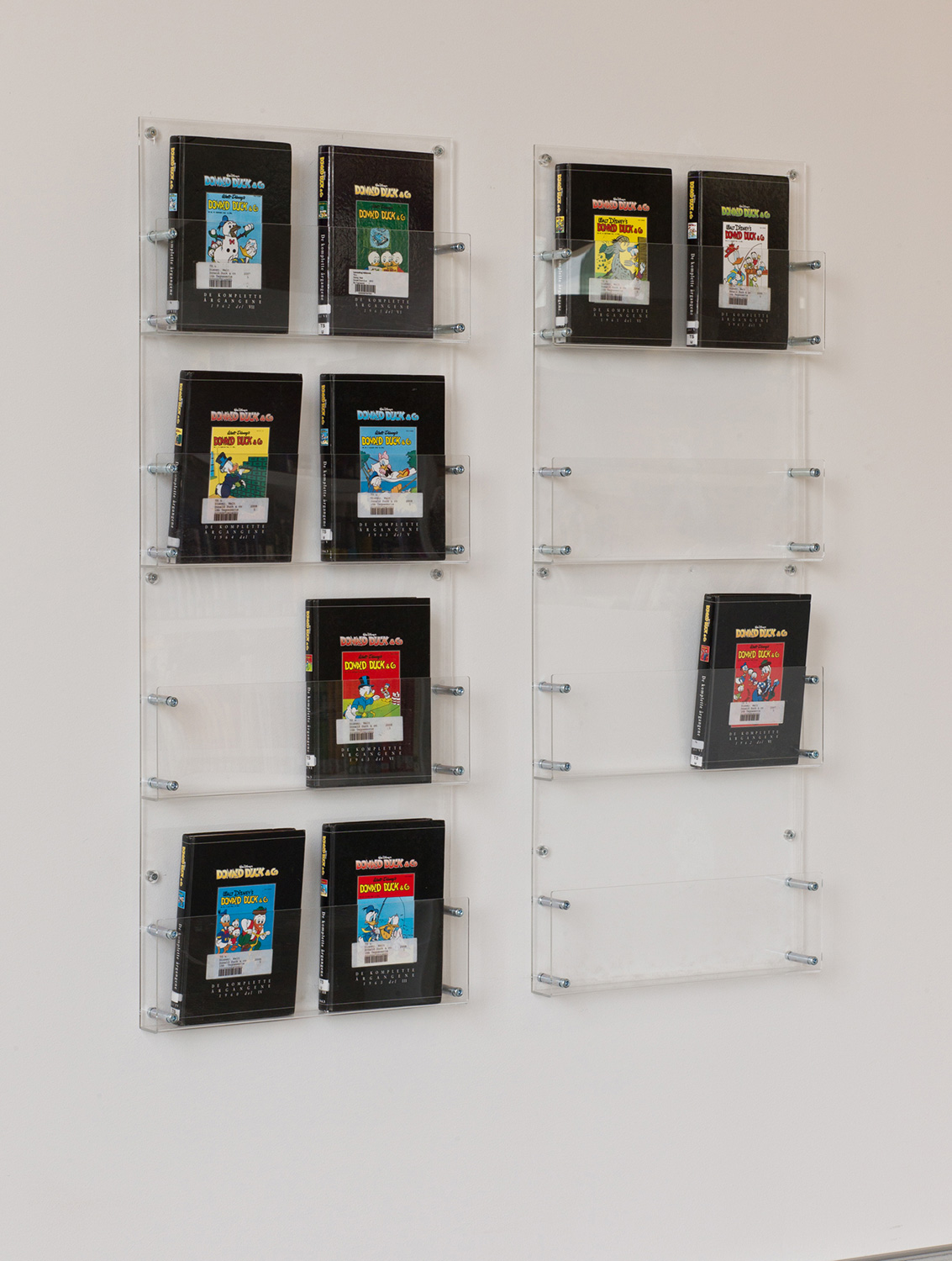 In addition to the shelves tilting, each shelf from first level and upward, is placed a few centimeters deeper than the previous. The combination – plus the LED lighting – makes it easy to browse the books. The visual effect is quite noticeable.