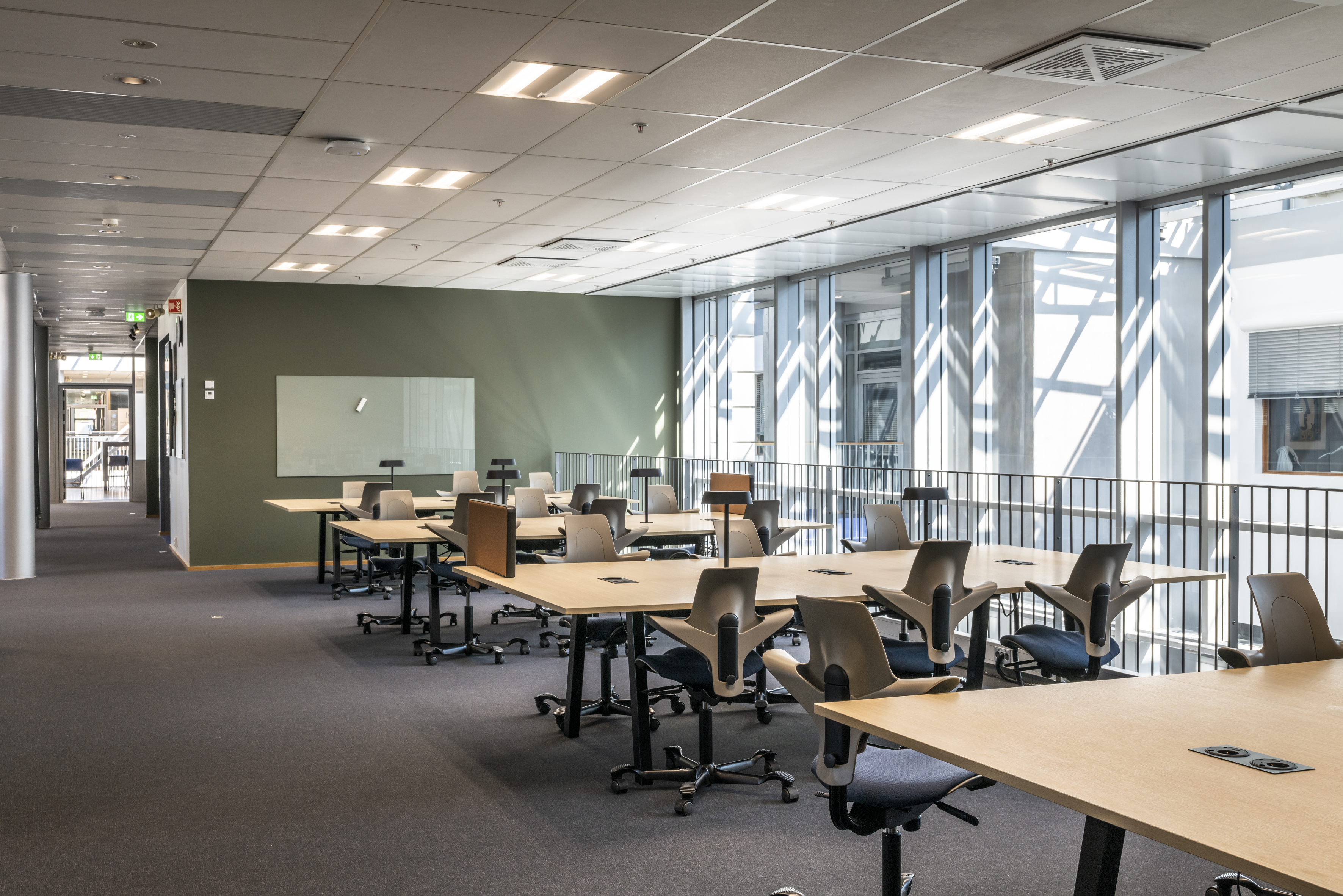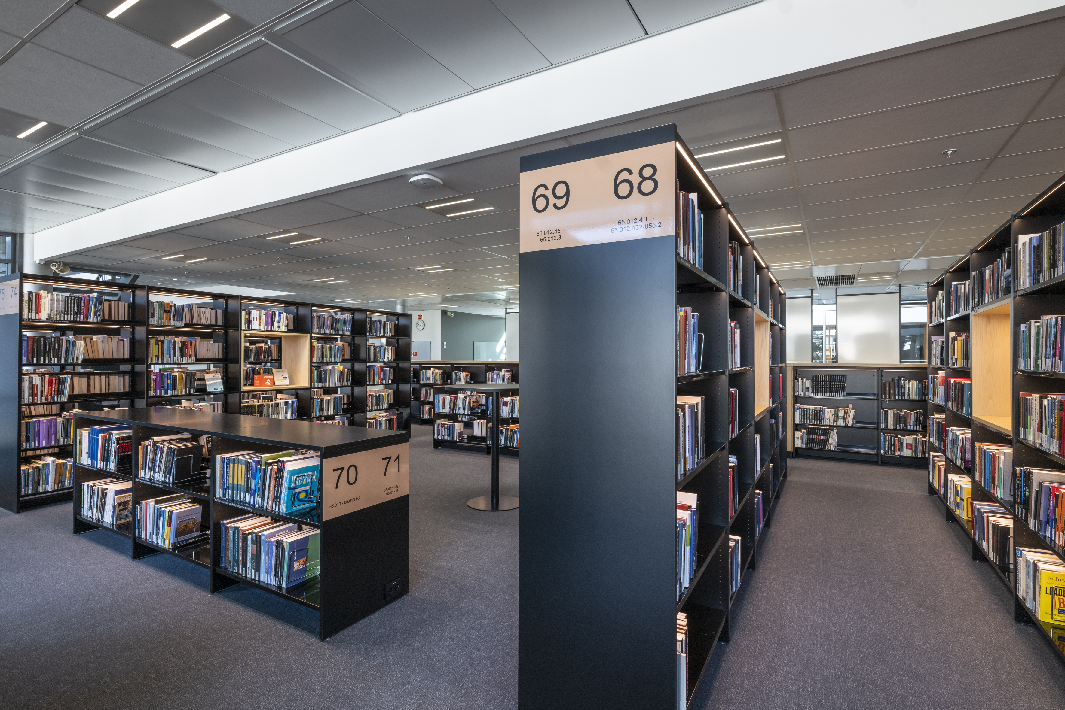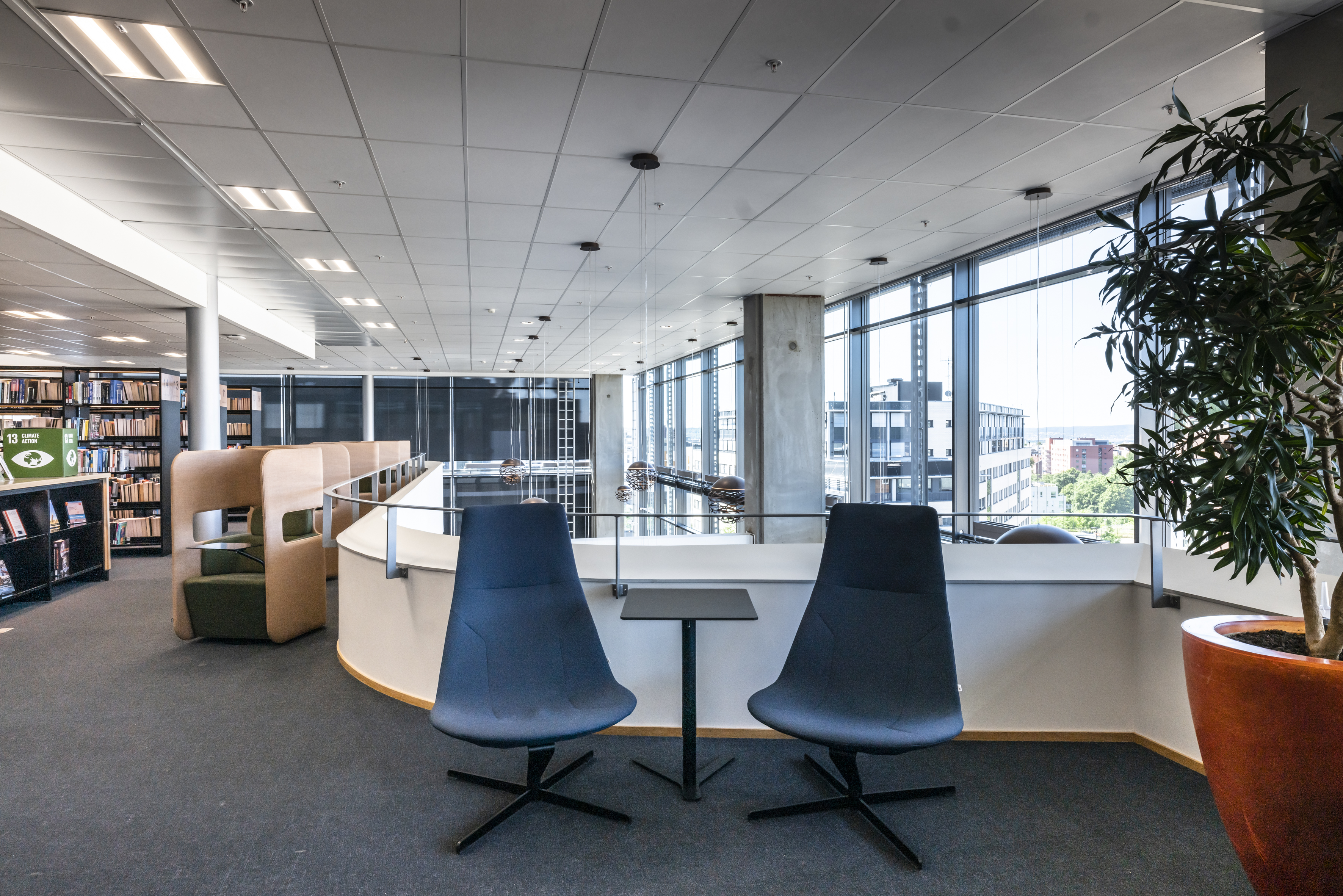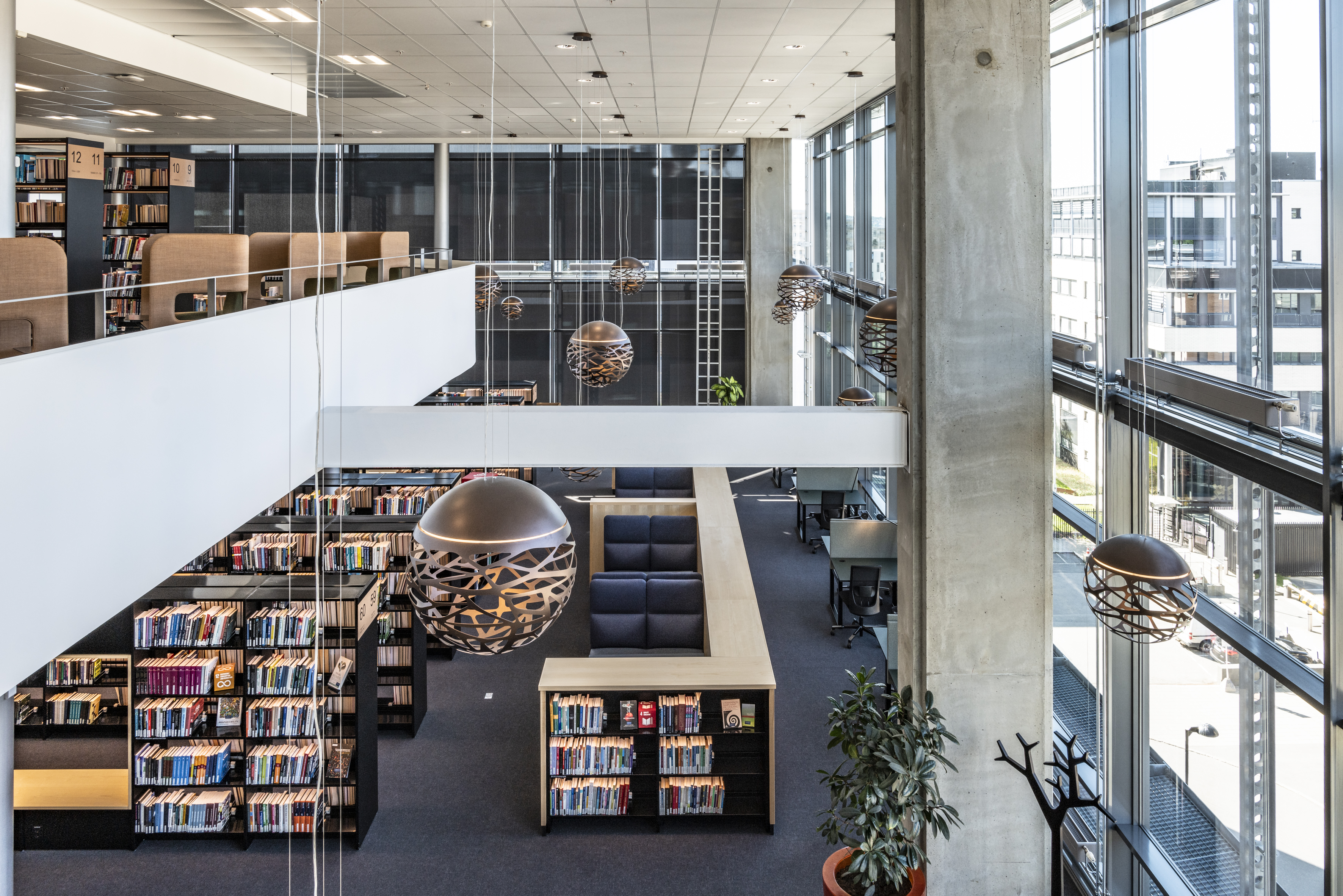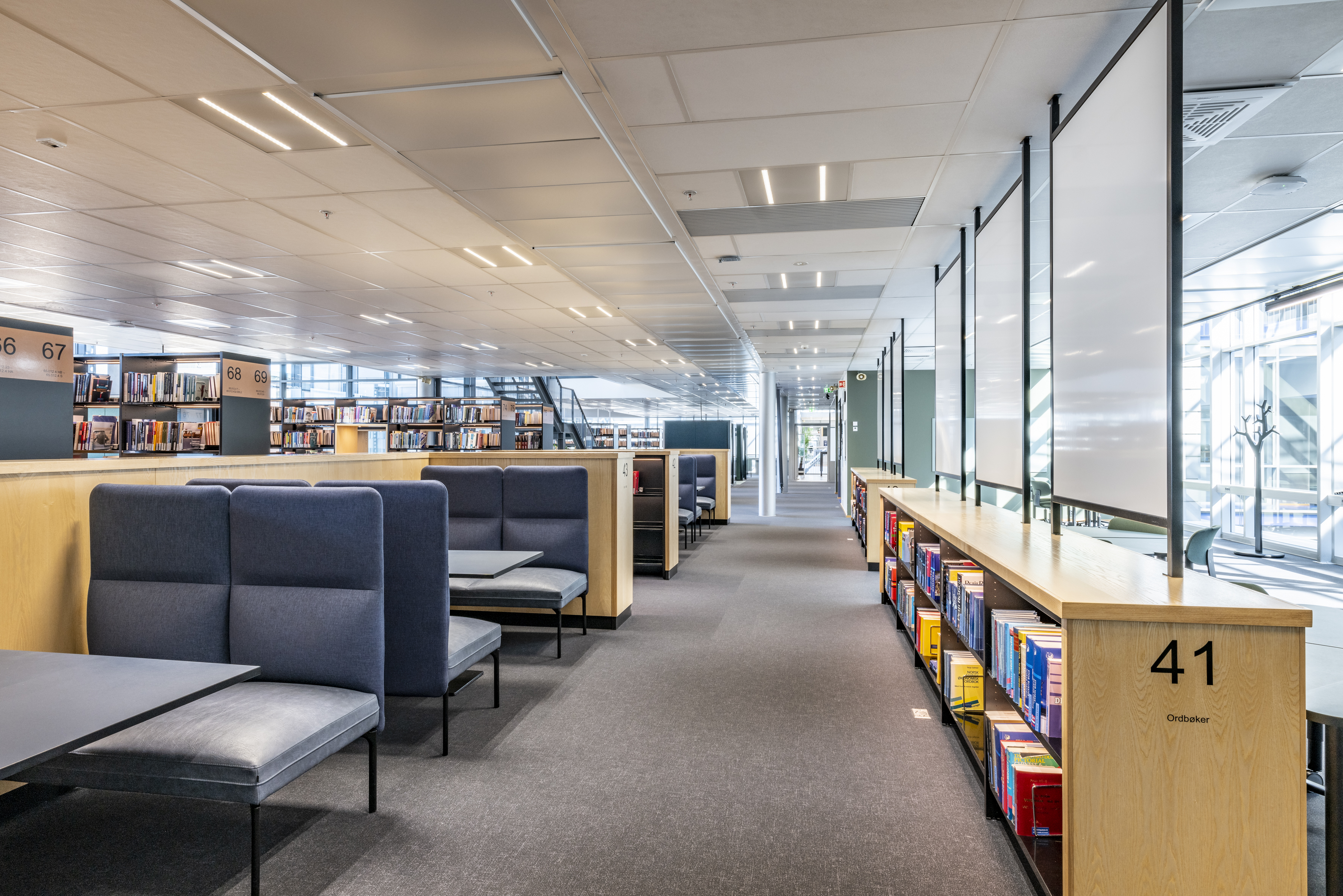 The library at BI Norwegian Business School is one of Europe's most modern research and study libraries. The library envisions itself as an inspiring learning space, which has led to meaningful dialogues and relationships between students and staff, inspiring one another. The students themselves have played a significant role in designing the space, focusing on noise reduction, collaboration, and concentration.