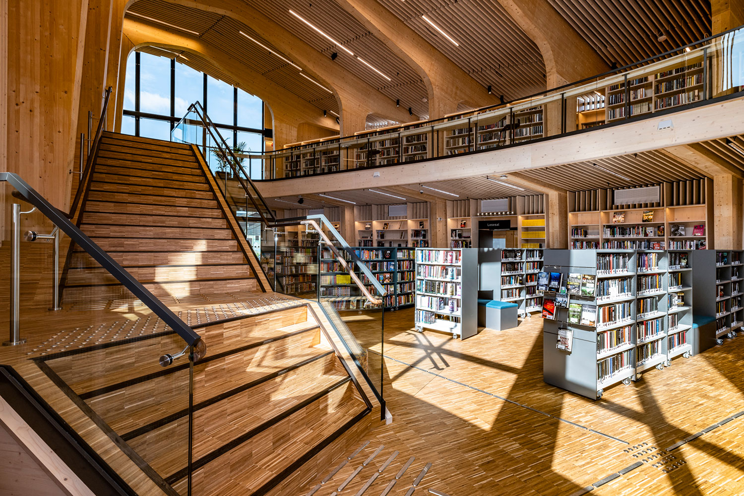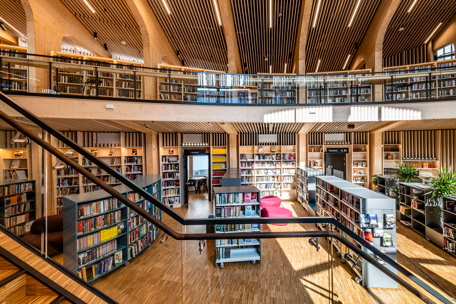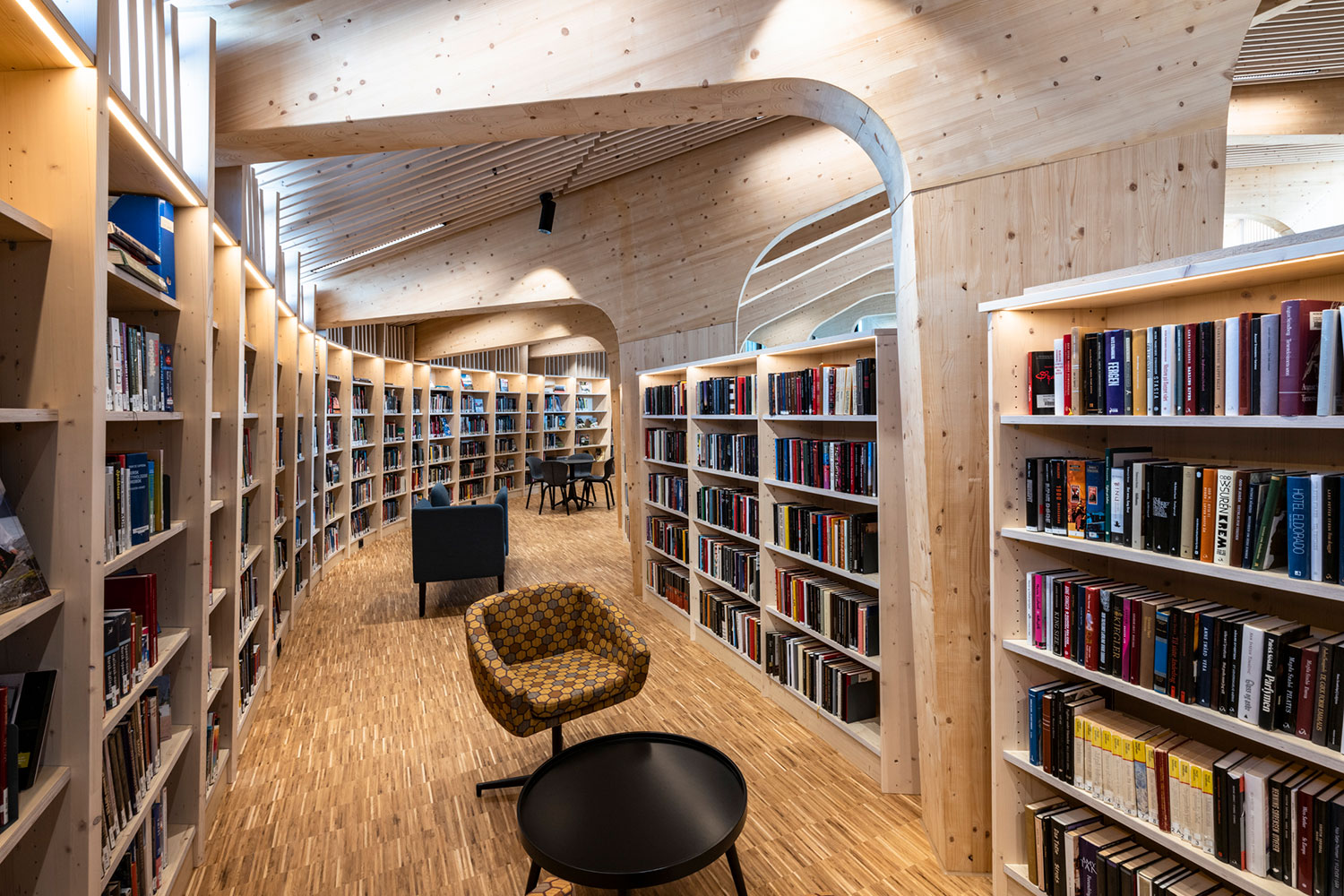 The organically shaped and spectacular building has become a magnet for both literary and architectural enthusiasts. The structure of the building is made of solid wood with an open atrium in the centre.