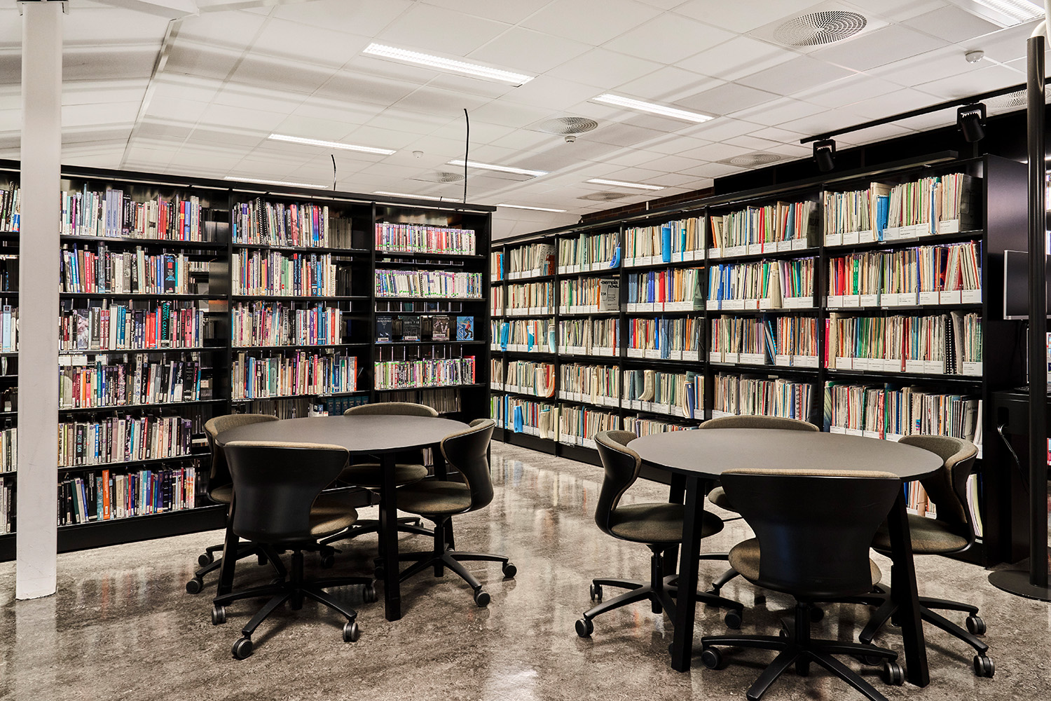 After several months of intensive renovation work, the library reopened in November 2020 in modern and open spaces, adapted to an active and flexible study environment. There is a particular emphasis on social zones, group workspaces and special rooms. BS Eurobib in Norway has been responsible for supplying the shelving systems, which in 2022 were supplemented with even more furniture and shelves with tiltable magazine racks with space for storing magazines.