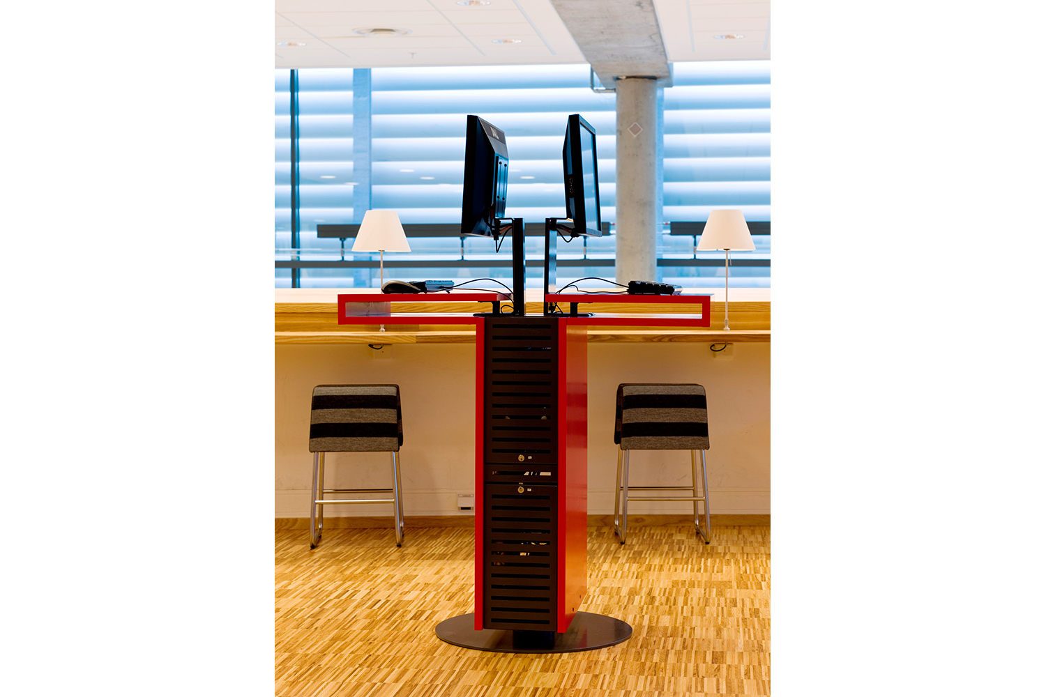 The library is essentially designed for learning. The result includes access to the latest information resources, professional guidance and service. The two-storey building offers attractive architecture and different kinds of learning environments and workstations for inspiring studies.