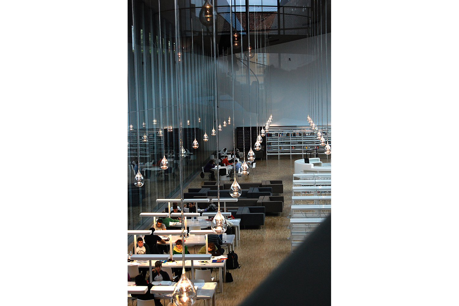 The library features the Opal Shelving System in white and without end panels to promote a light expression.
