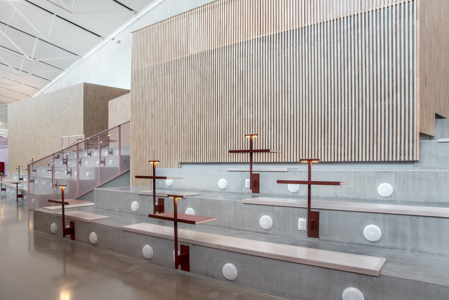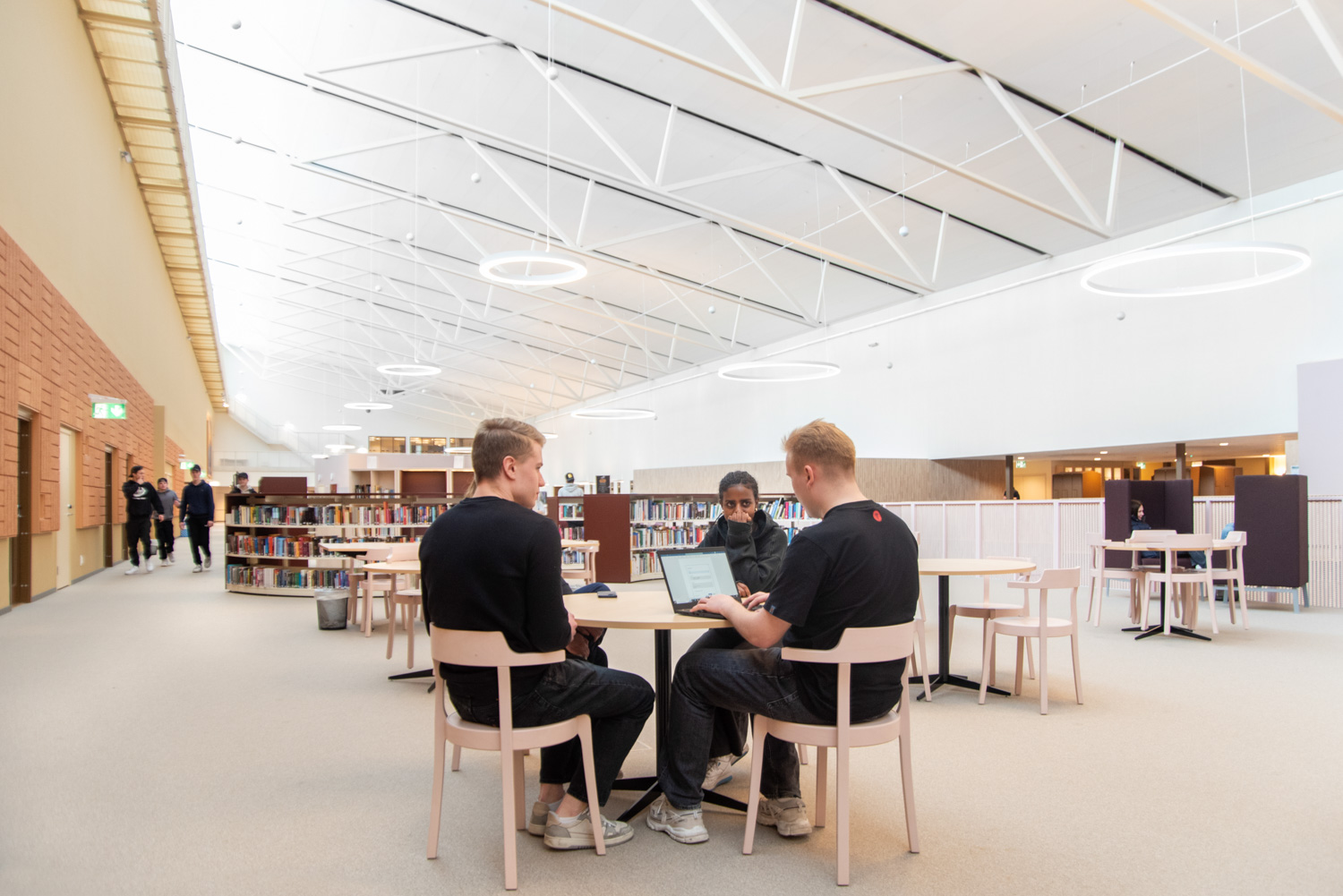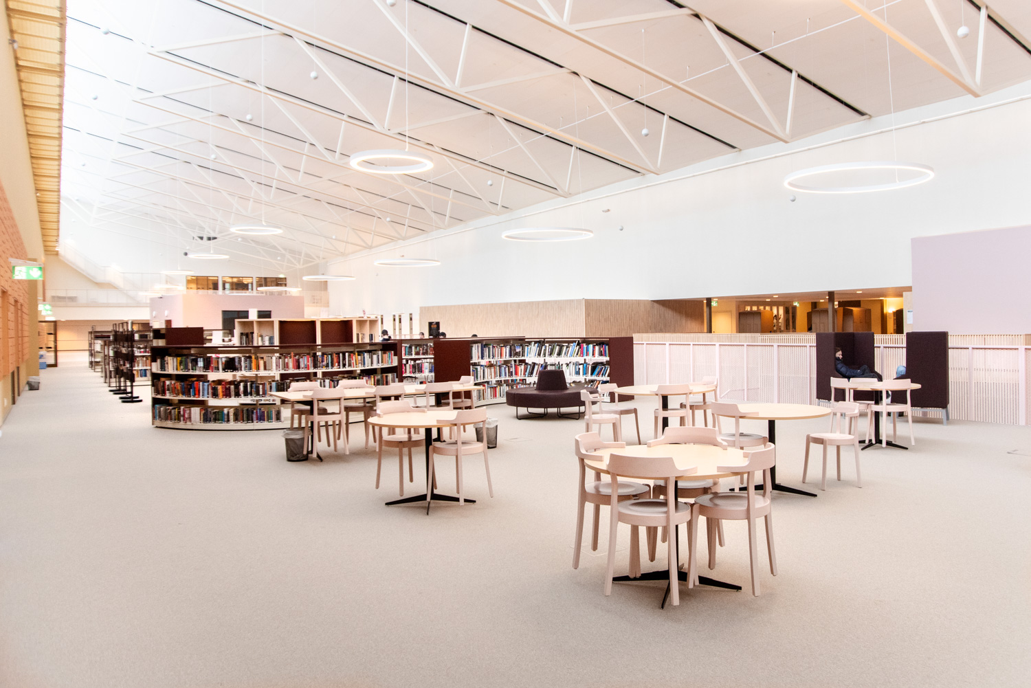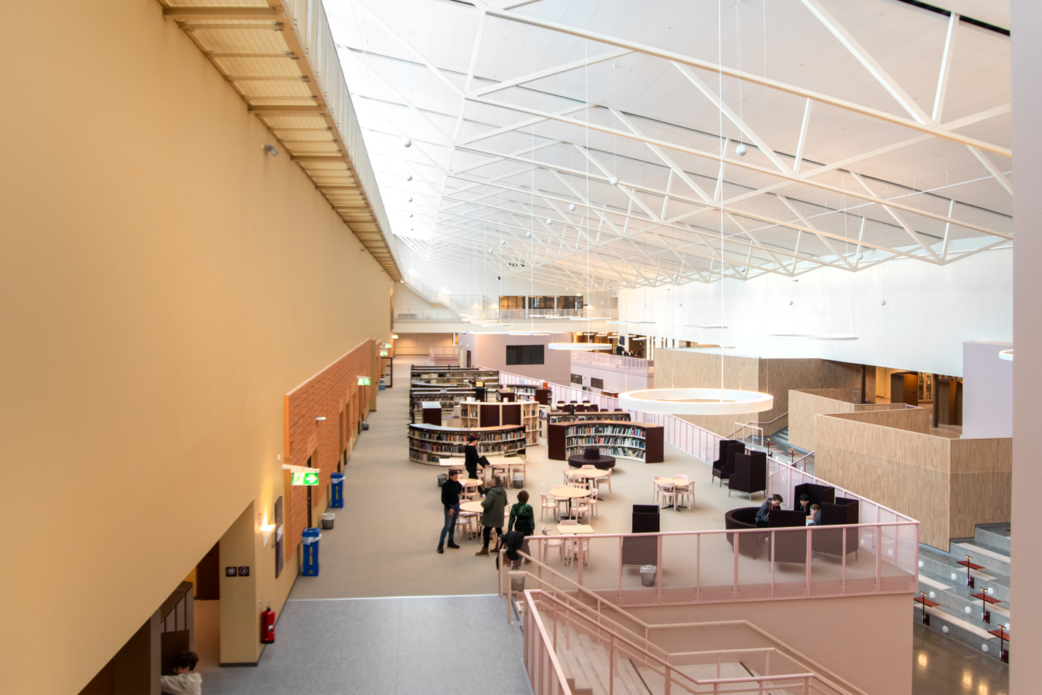 The core of the building is a central square that forms a link between the city of knowledge and the rest of the city centre. From here, the visitor is led into a spacious atrium, where the activities of the city and the school meet in a common and public space. The library is also located here, where a generous amount of daylight comes from large glass sections near the roof, which invite visitors to look up at the sky and follow the different characteristics of the seasons.