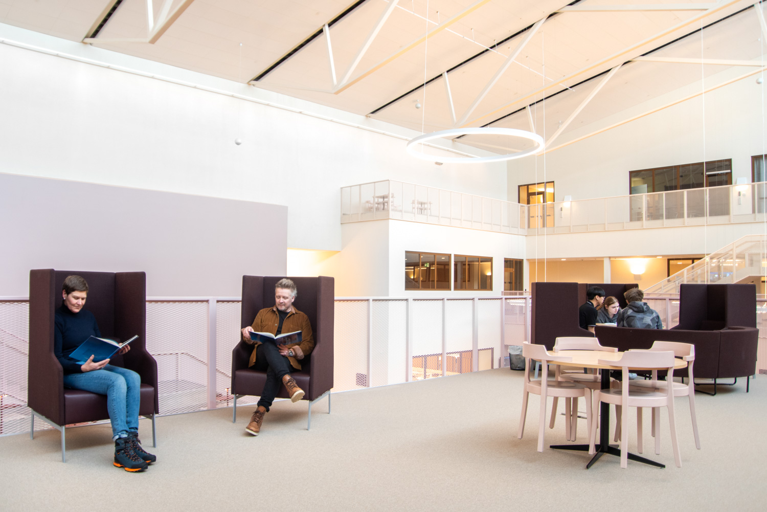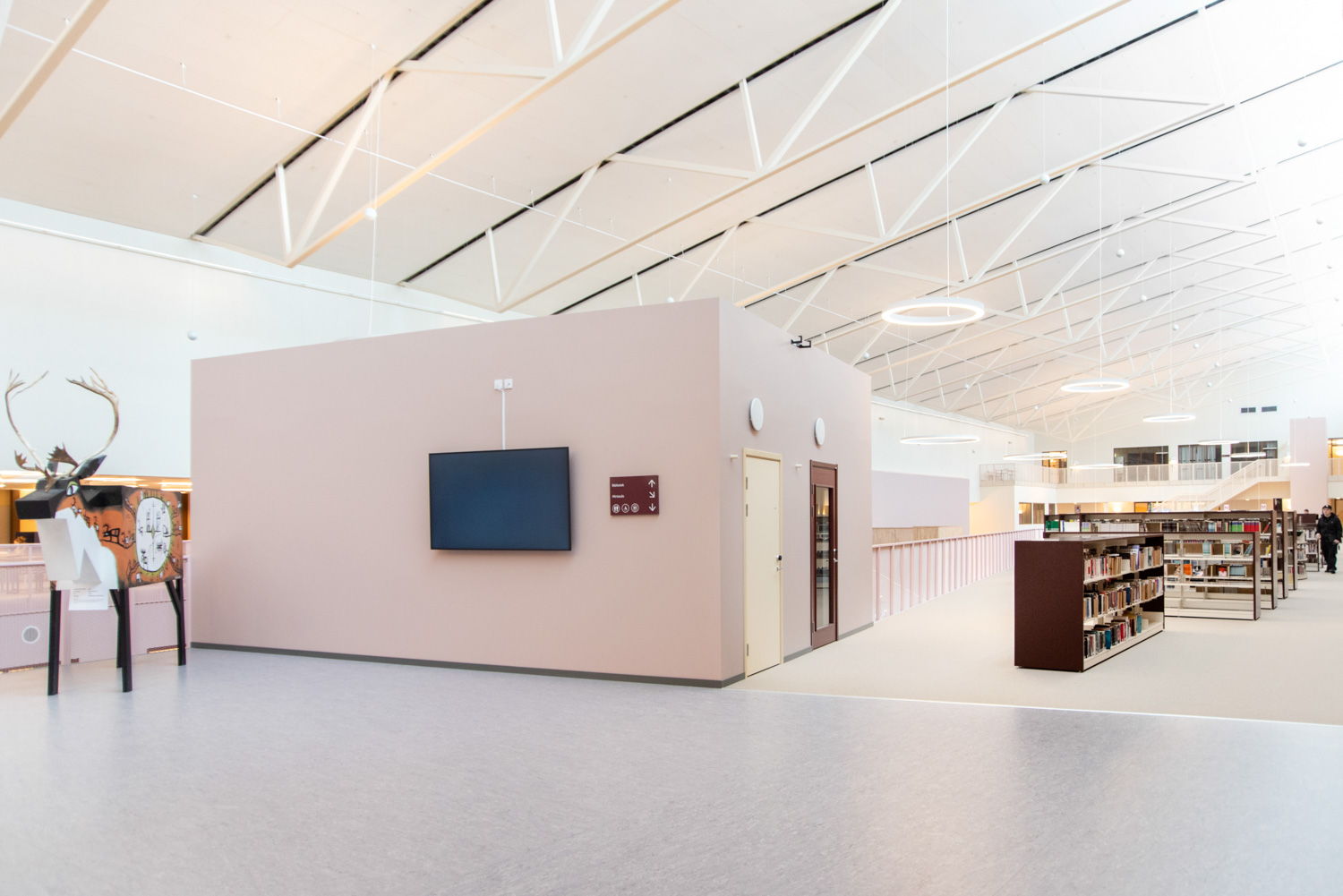 In Kiruna a 40,000 m2 education centre is located in extension of the city park, where several educational facilities work together; a culture school, a high school with theoretical and practical fields of study and a university with adult studies. The building also contains a sports hall, library and exhibition areas as well as a café and restaurant open to the public.
