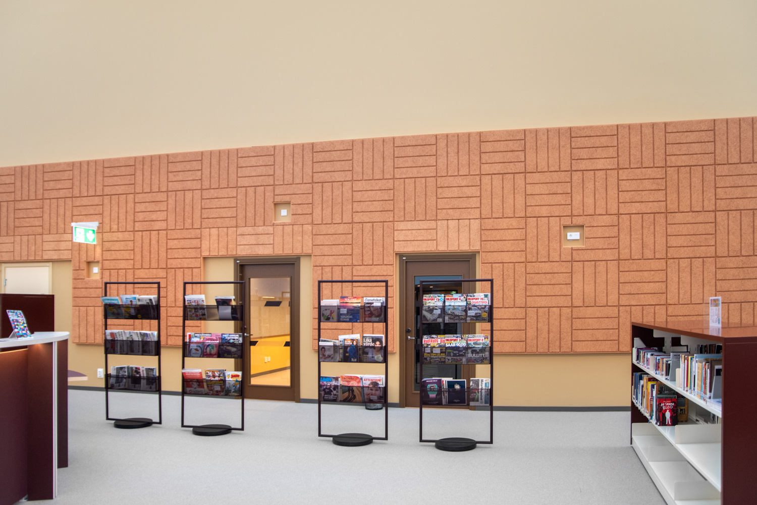 In the interior design, great emphasis has been placed on creating inviting environments that highlight the elements of nature. The inspiration is taken from the annual changes of the polar sky, with natural and untreated materials in interaction with contrasting materials and colours.