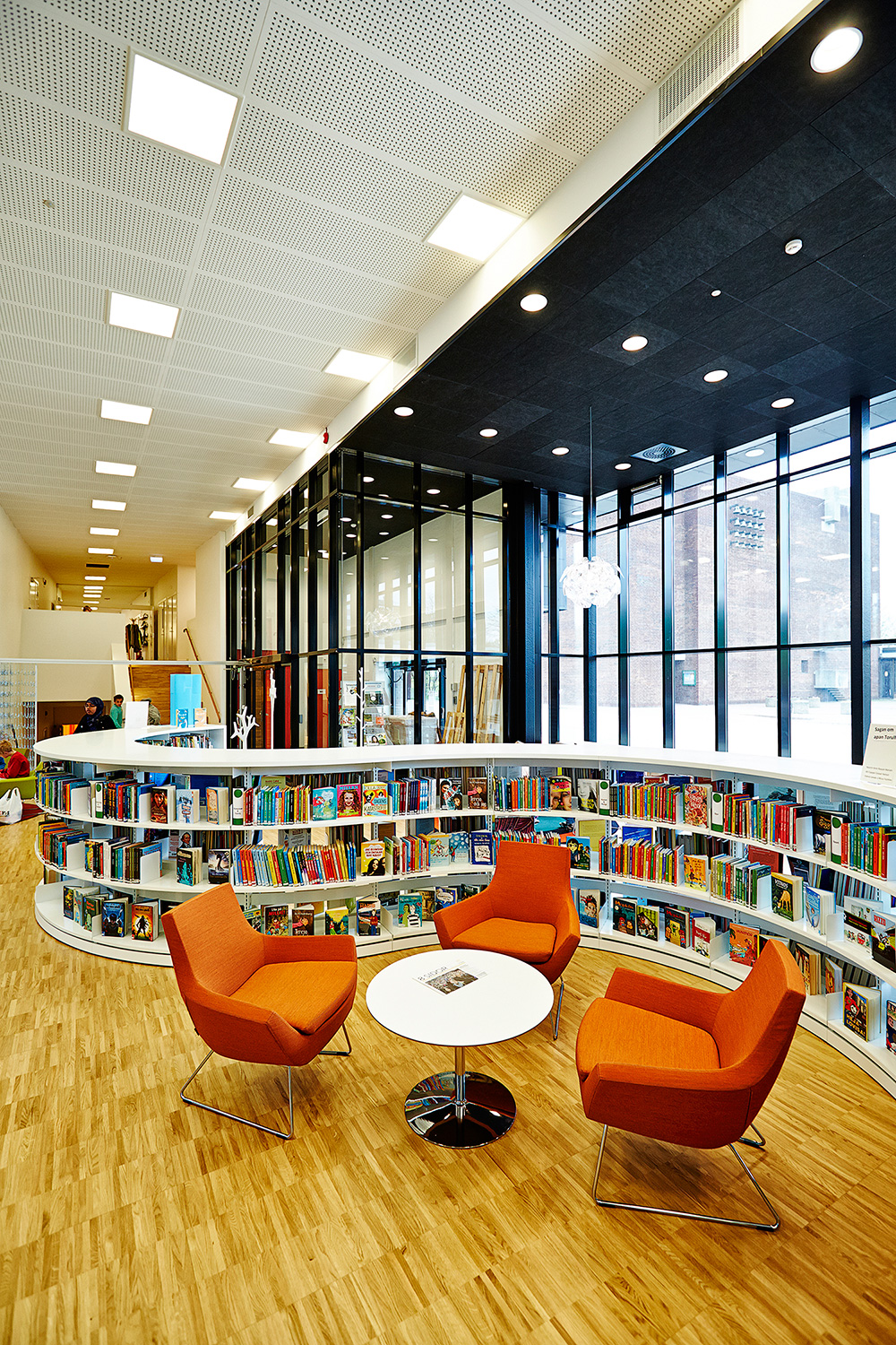 When the City of Lund’s new branch library in Klostergården was on the drawing board, the library director Karin Bergendorff provided the planners with some useful guidelines to work with in order to realize her strong vision for the library outcome: