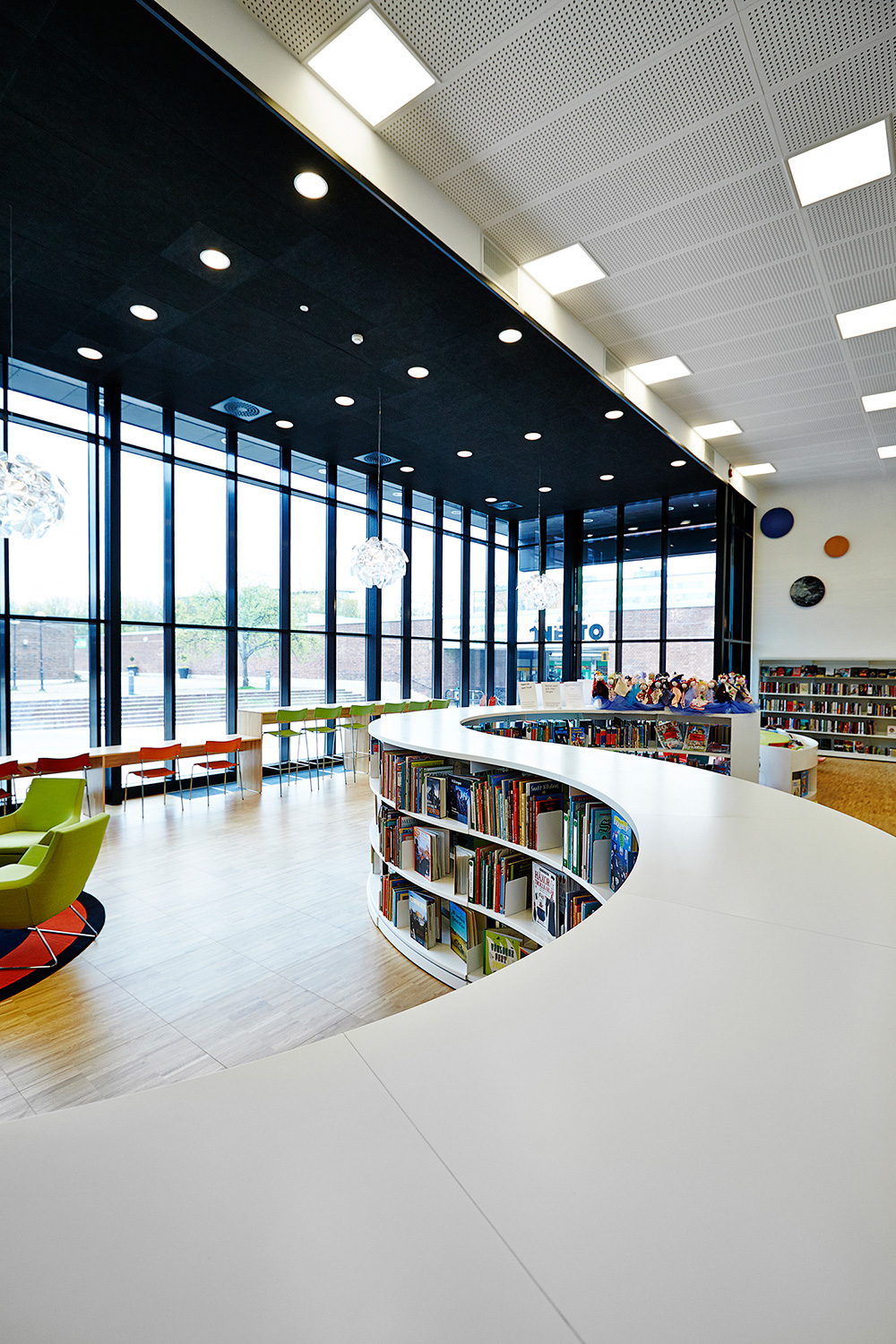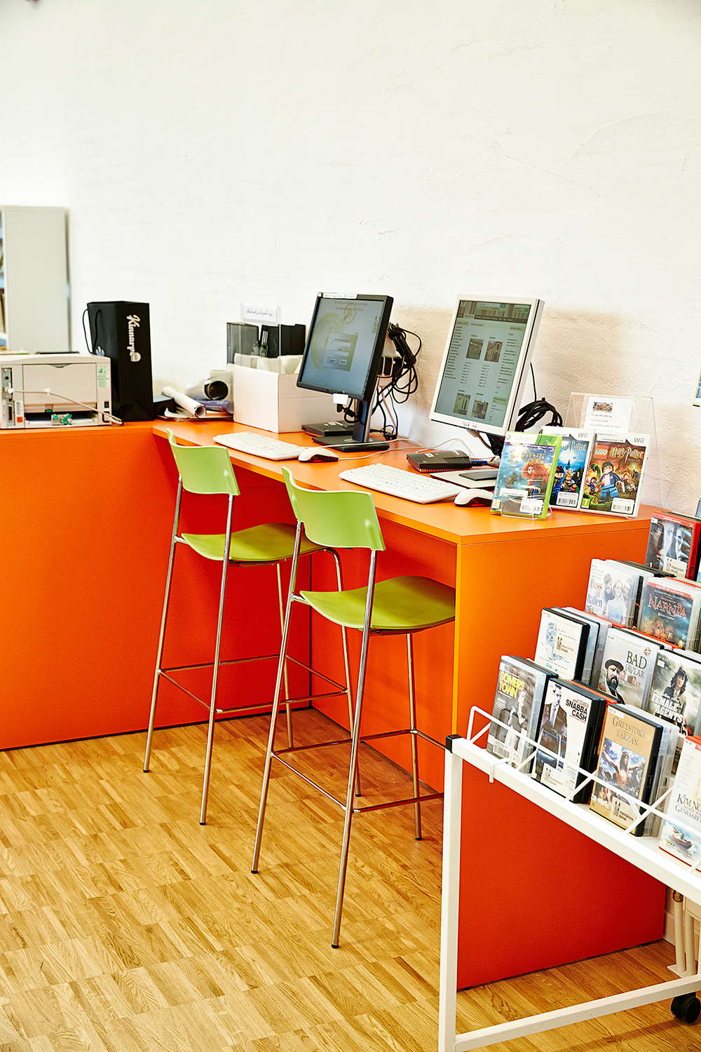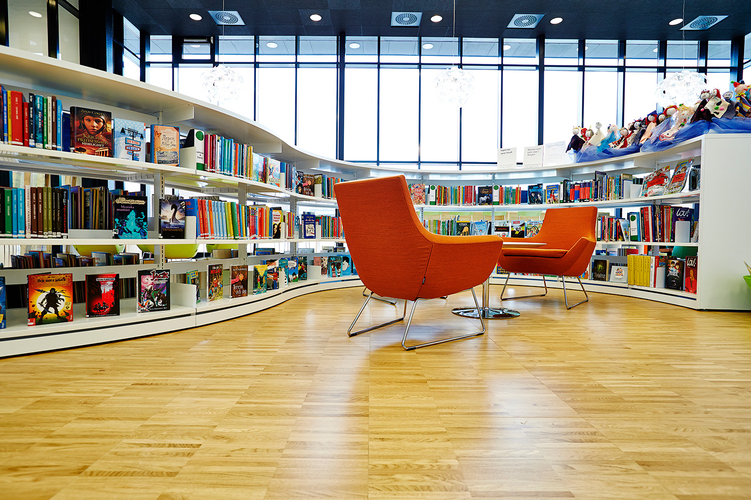 The new library was to become much more than “just” a library – tight cooperation and collaboration needed to be established with the local after school day care service. This new feeling of belonging together had to be clearly reflected in the interior design.